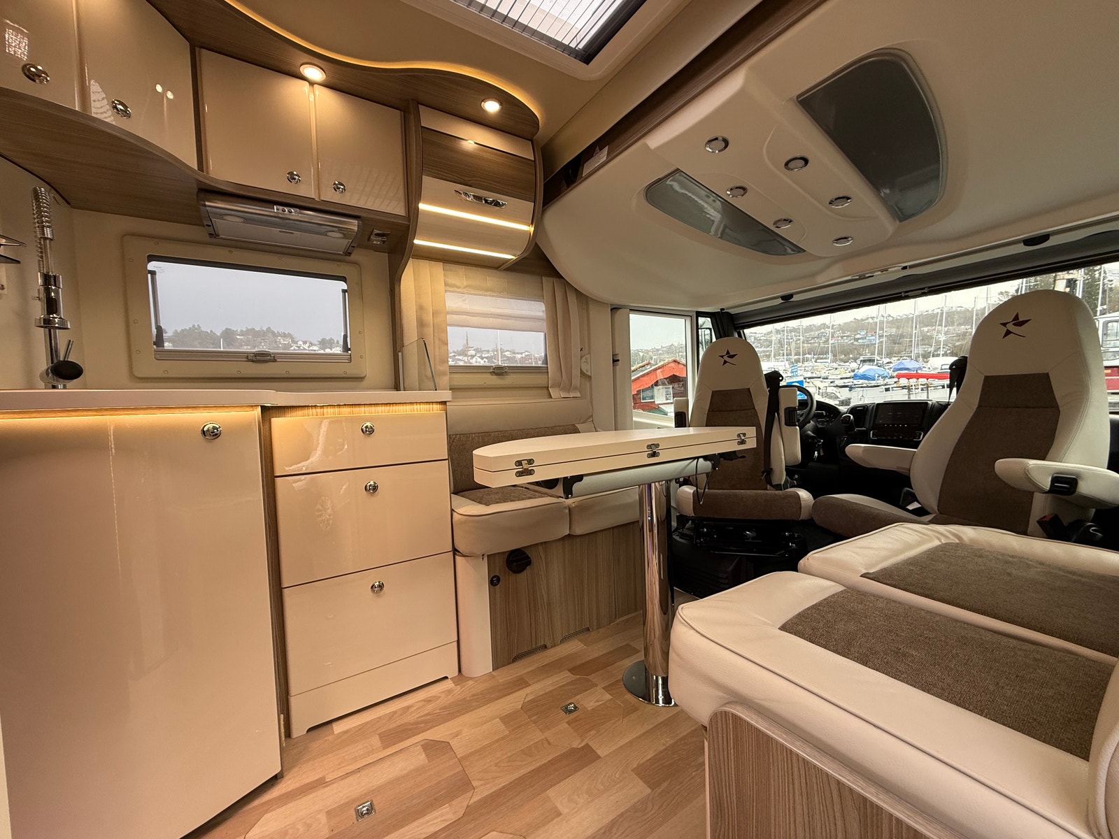 Automagir (9-trinns) – Solcellepanel – Alde matte i førerhus (vannbåren varme også i førerhus) – ALKO chassis, høy nyttelast – Tåkelys – Alde vannbåren varme (gass/strøm) – 180HK – Markise – Isolasjonsmatte i frontvindu – Navigasjon – 360 graders kamera – Automatisk klimaanlegg i bildel – 90 Liter tank – Solcellepanel 150W – Duo Kobling på gass – Heavy chassi (alko) – Lekkasjegaranti i 7 år!