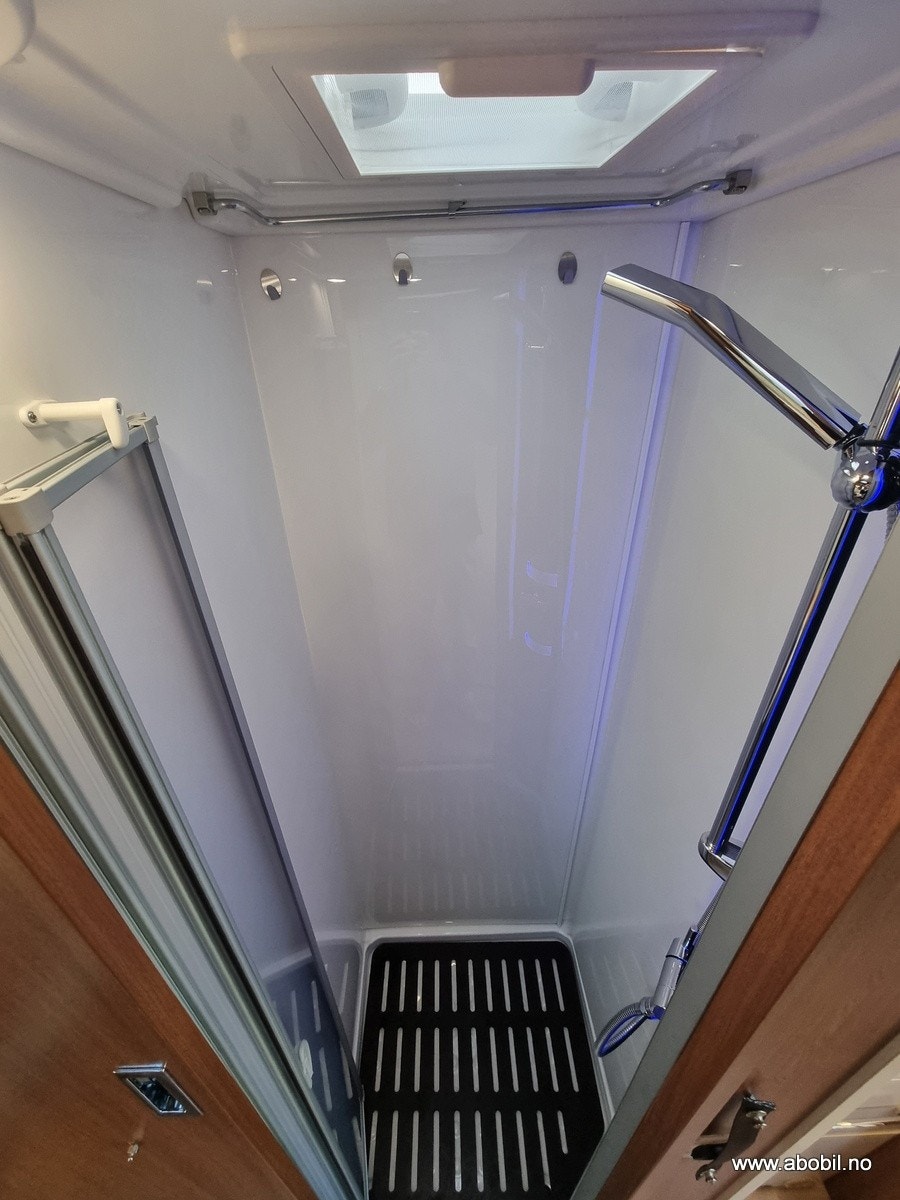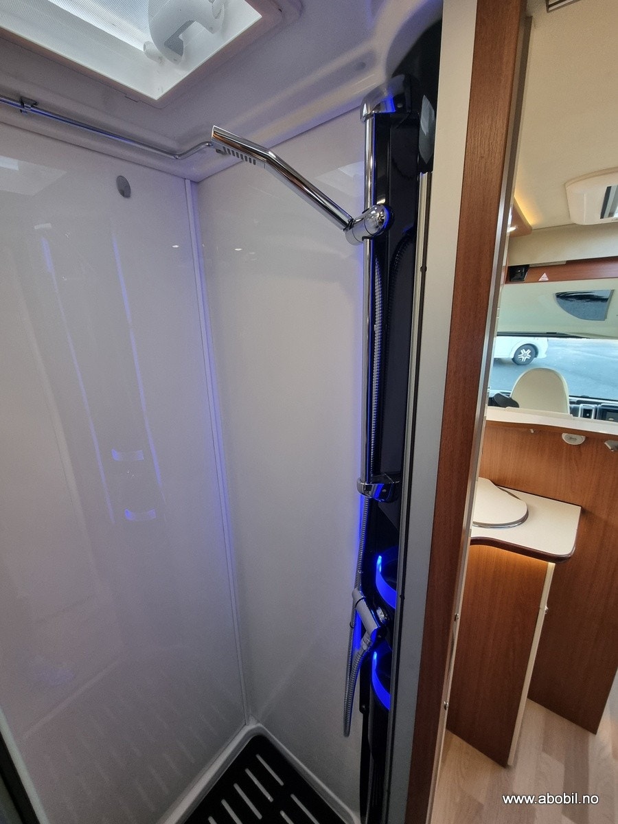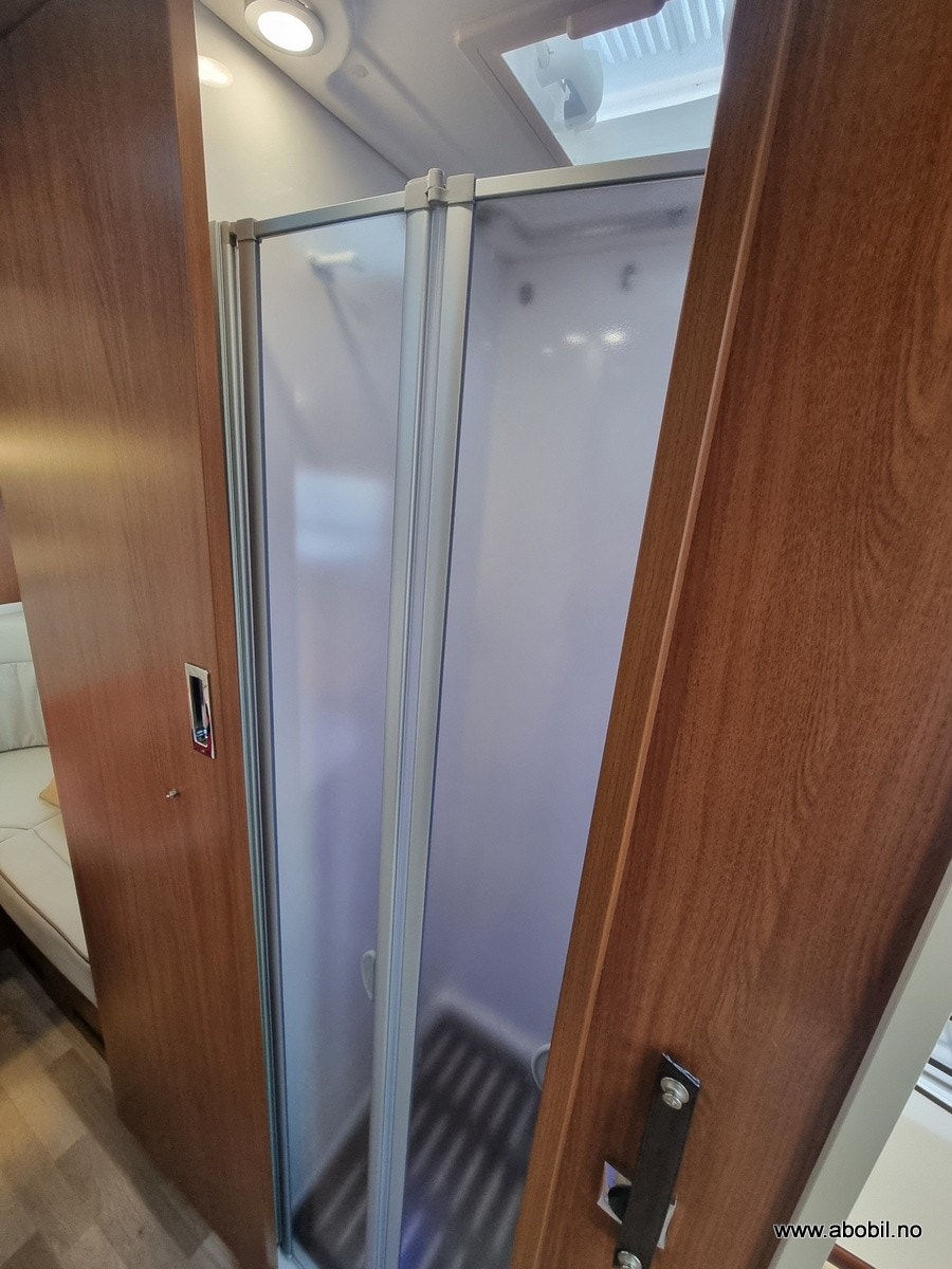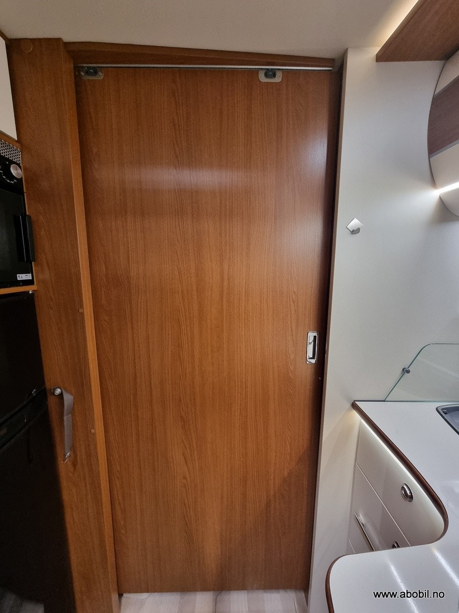 Det er mulig å skille av mellom baderom/dusj og kjøkken/førerdel for et omkledningsrom og privatliv.