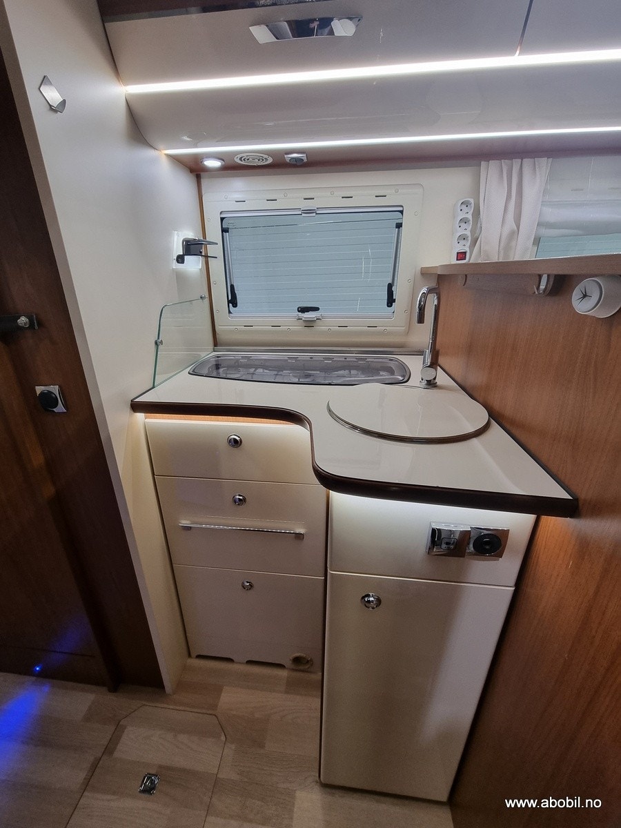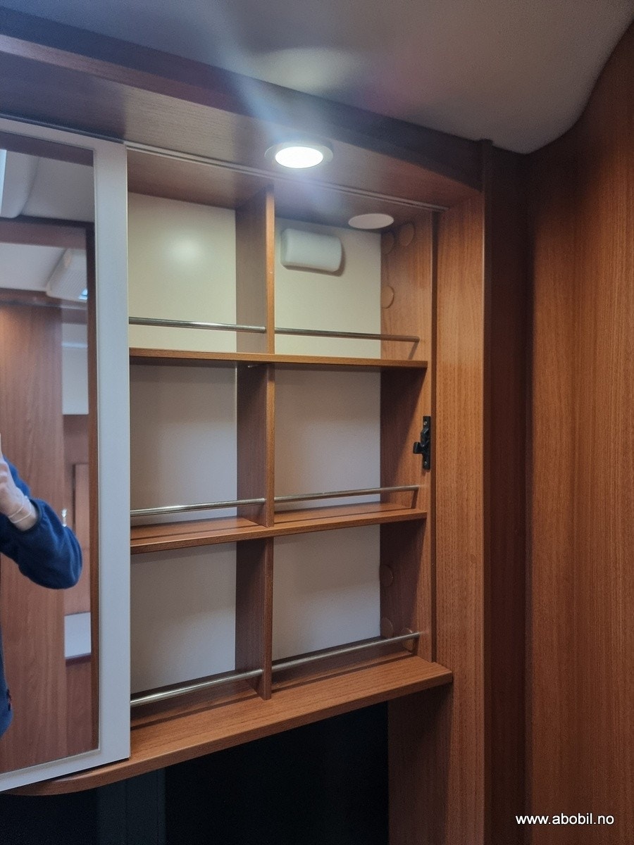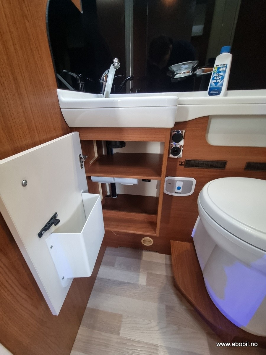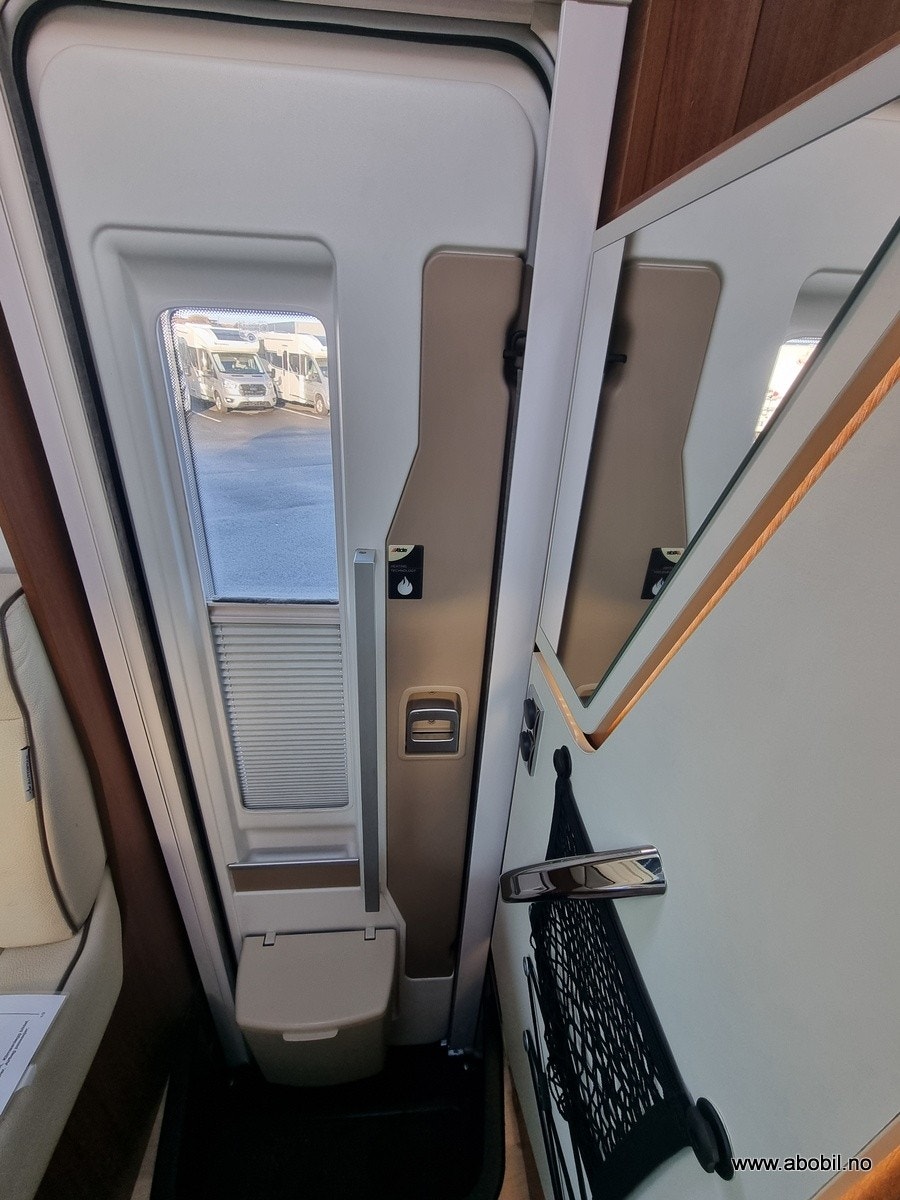 Det er mulig å skille av mellom baderom/dusj og kjøkken/førerdel for et omkledningsrom og privatliv.