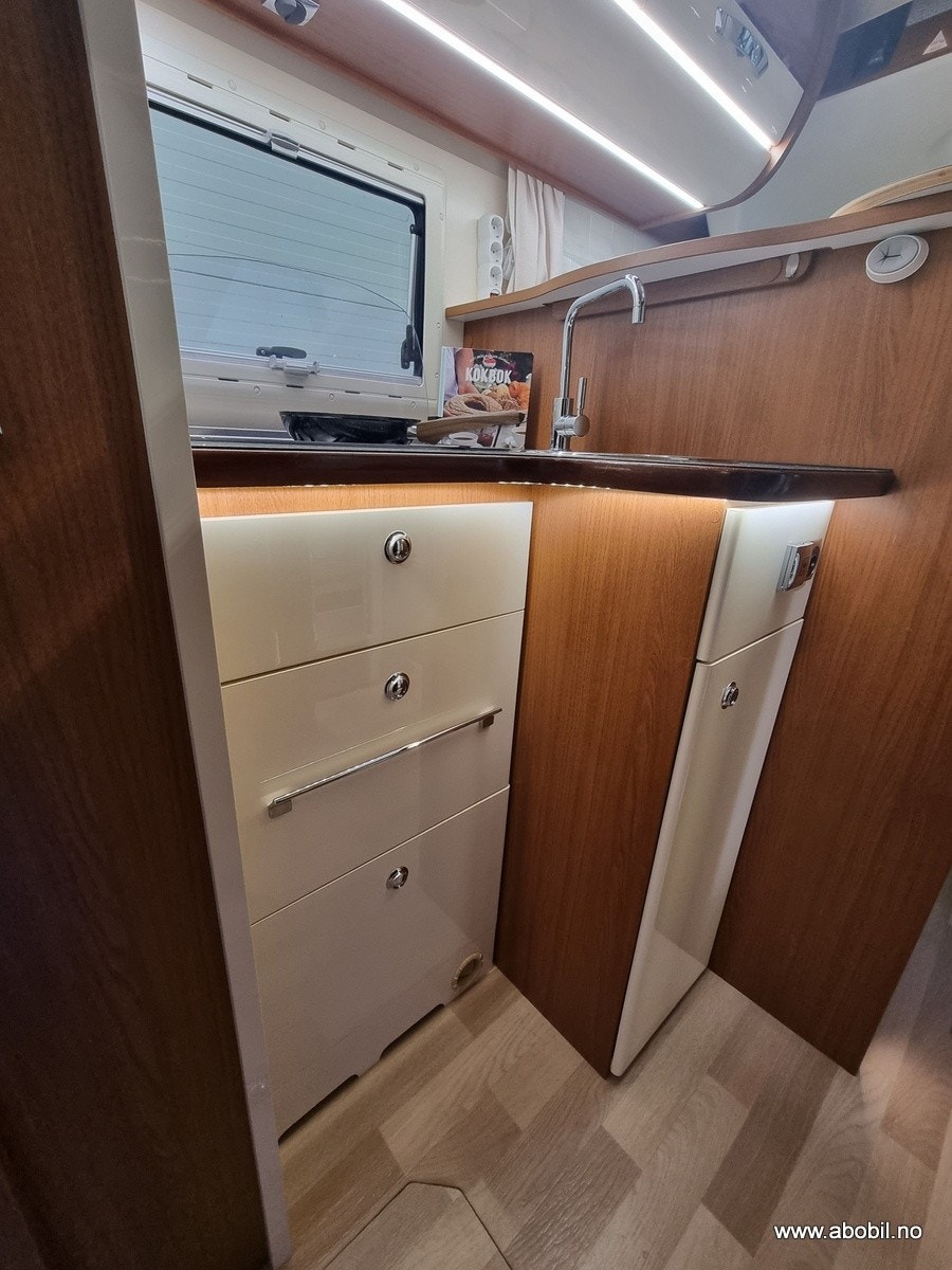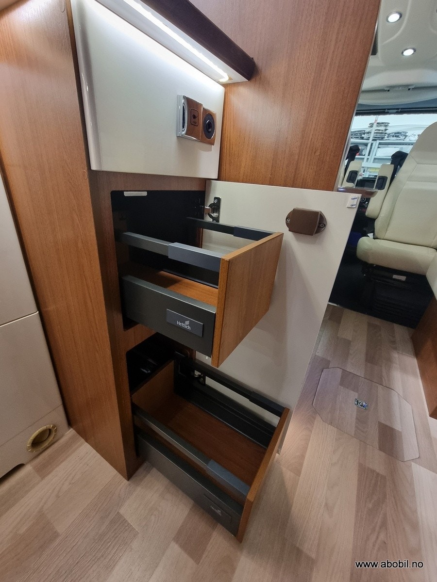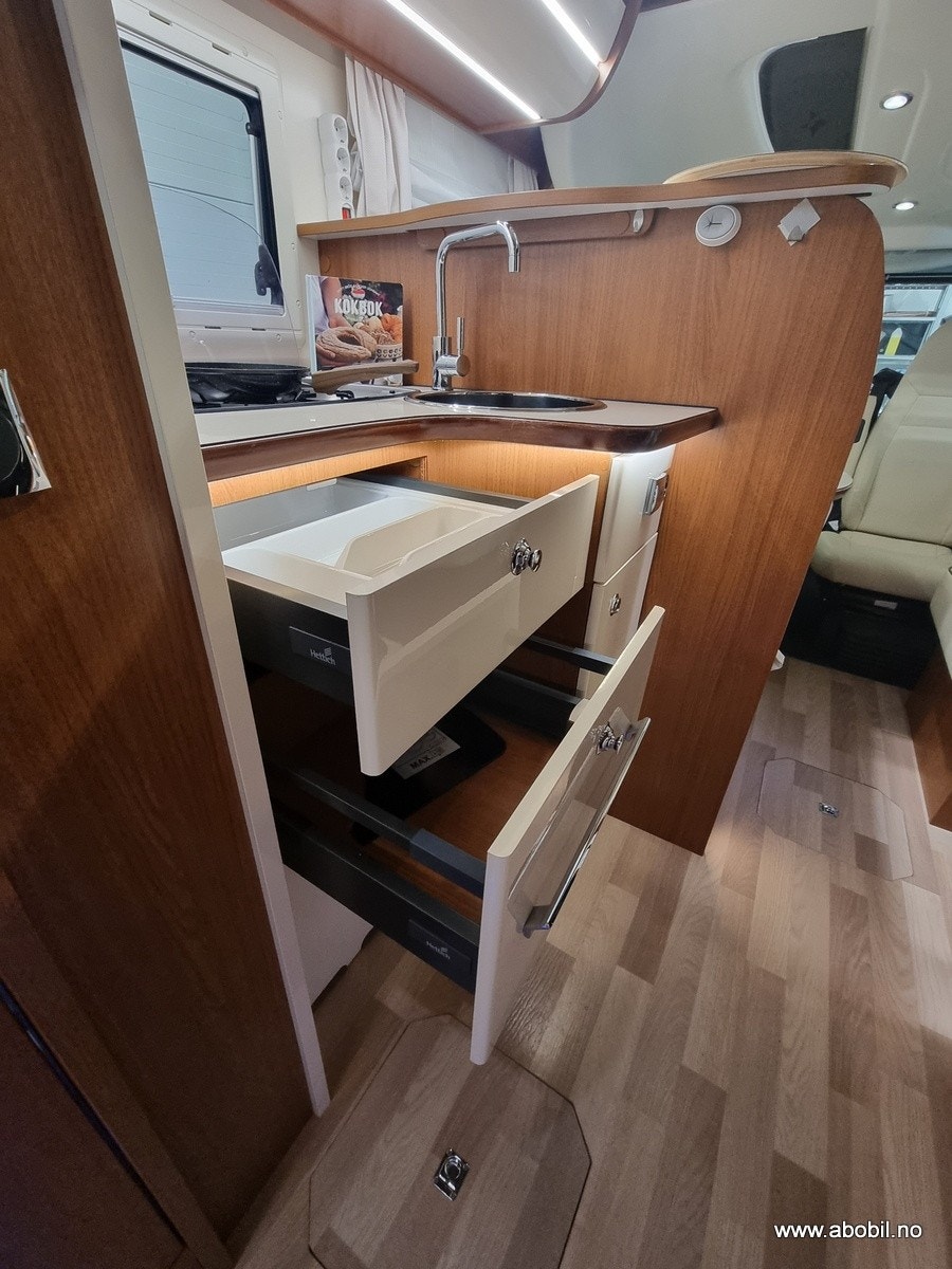 ALKO chassis tilfører bobilen dobbelt gulv med oppbevaringsplass på tvers av bilen i hele bredden.