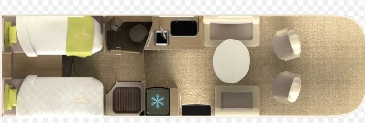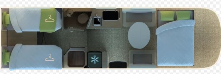 En meget lekker bobil. I790LC har to enkle senger bak + takseng fremme + face 2 face salong. En populær løsning!