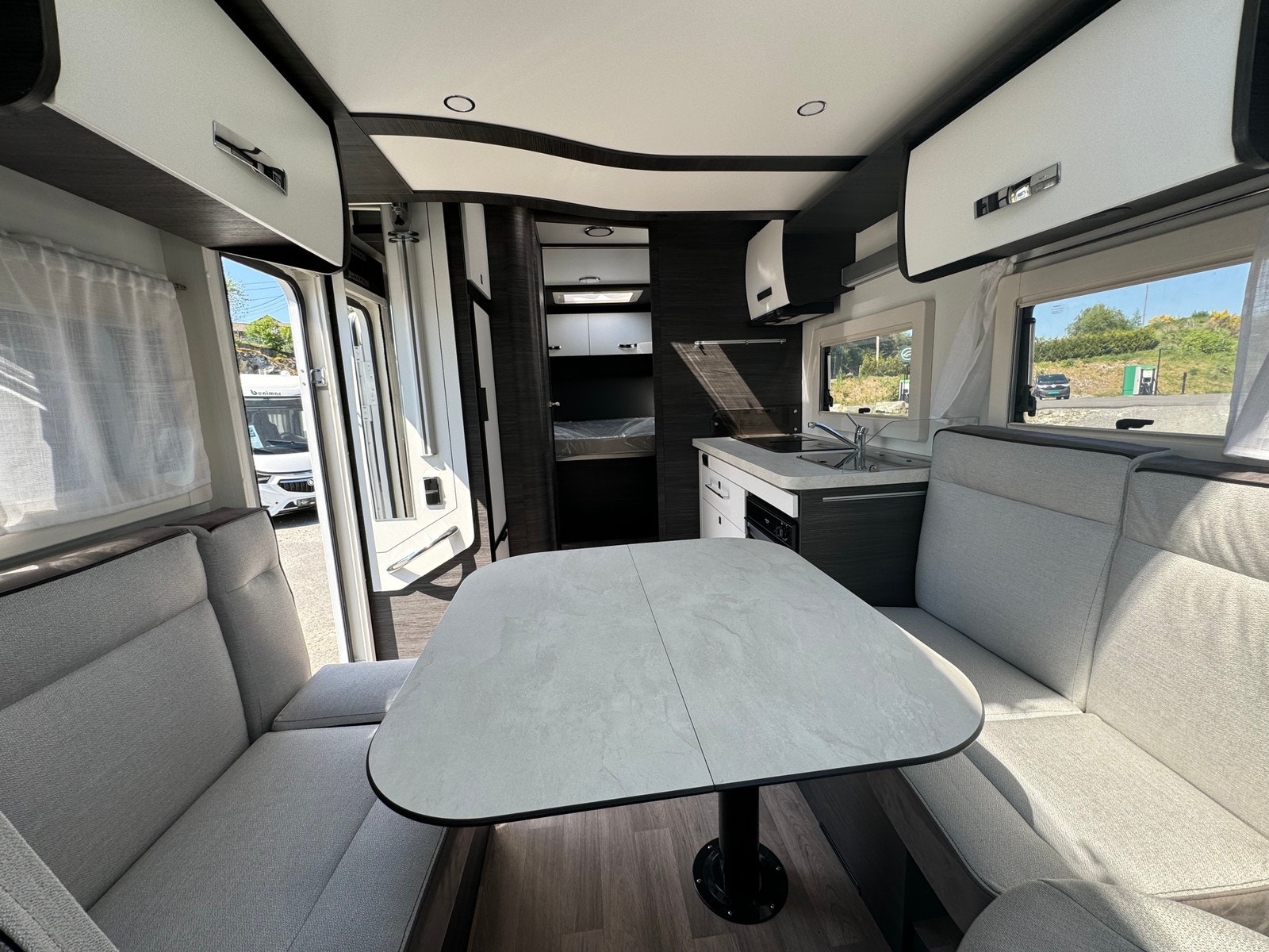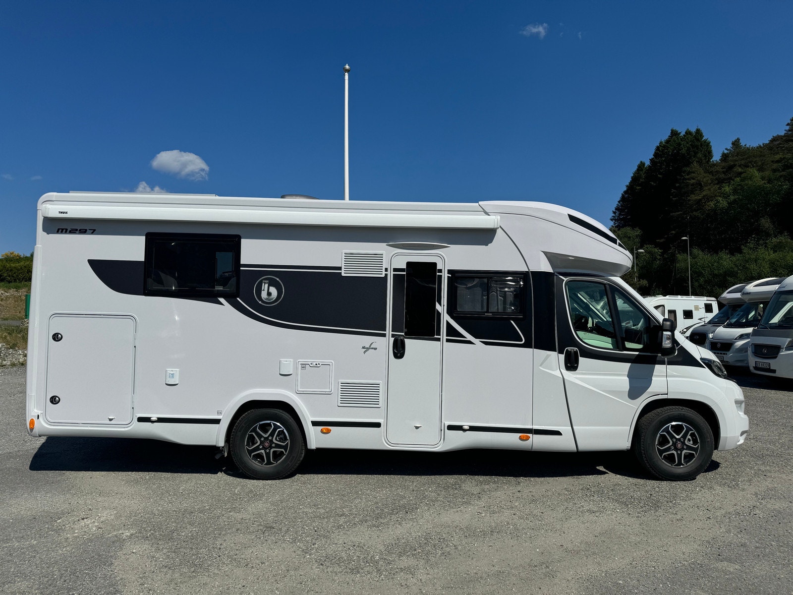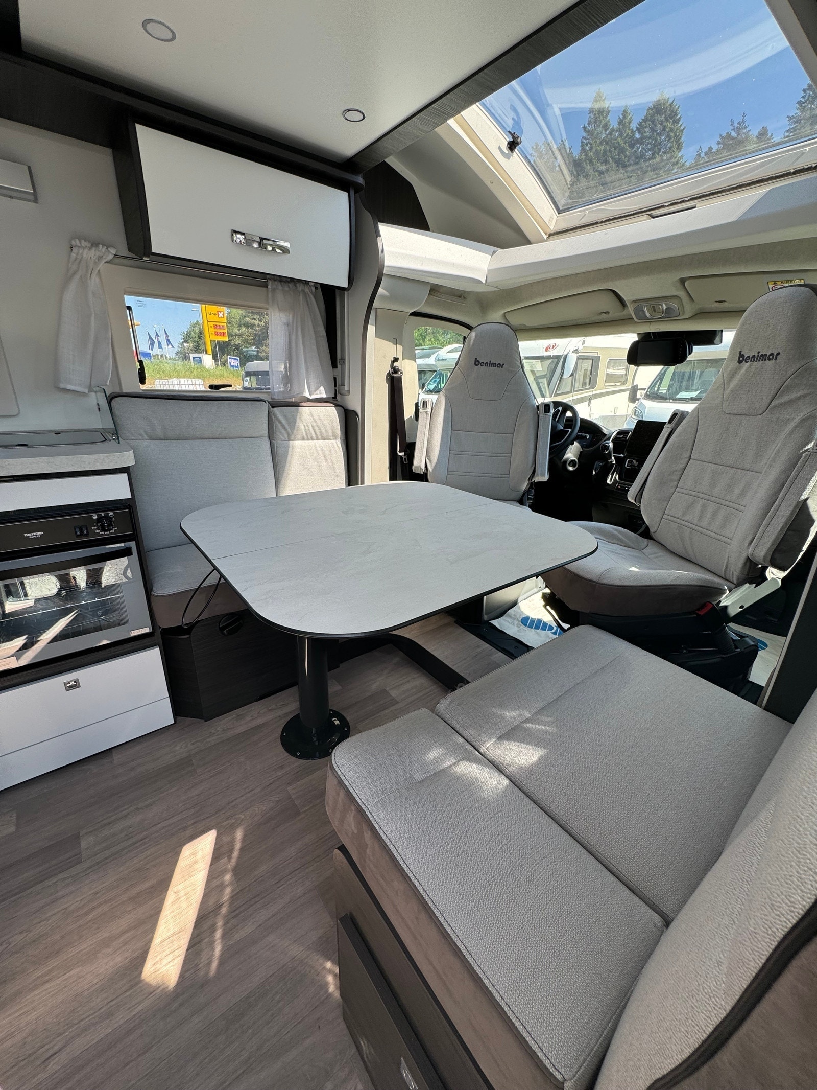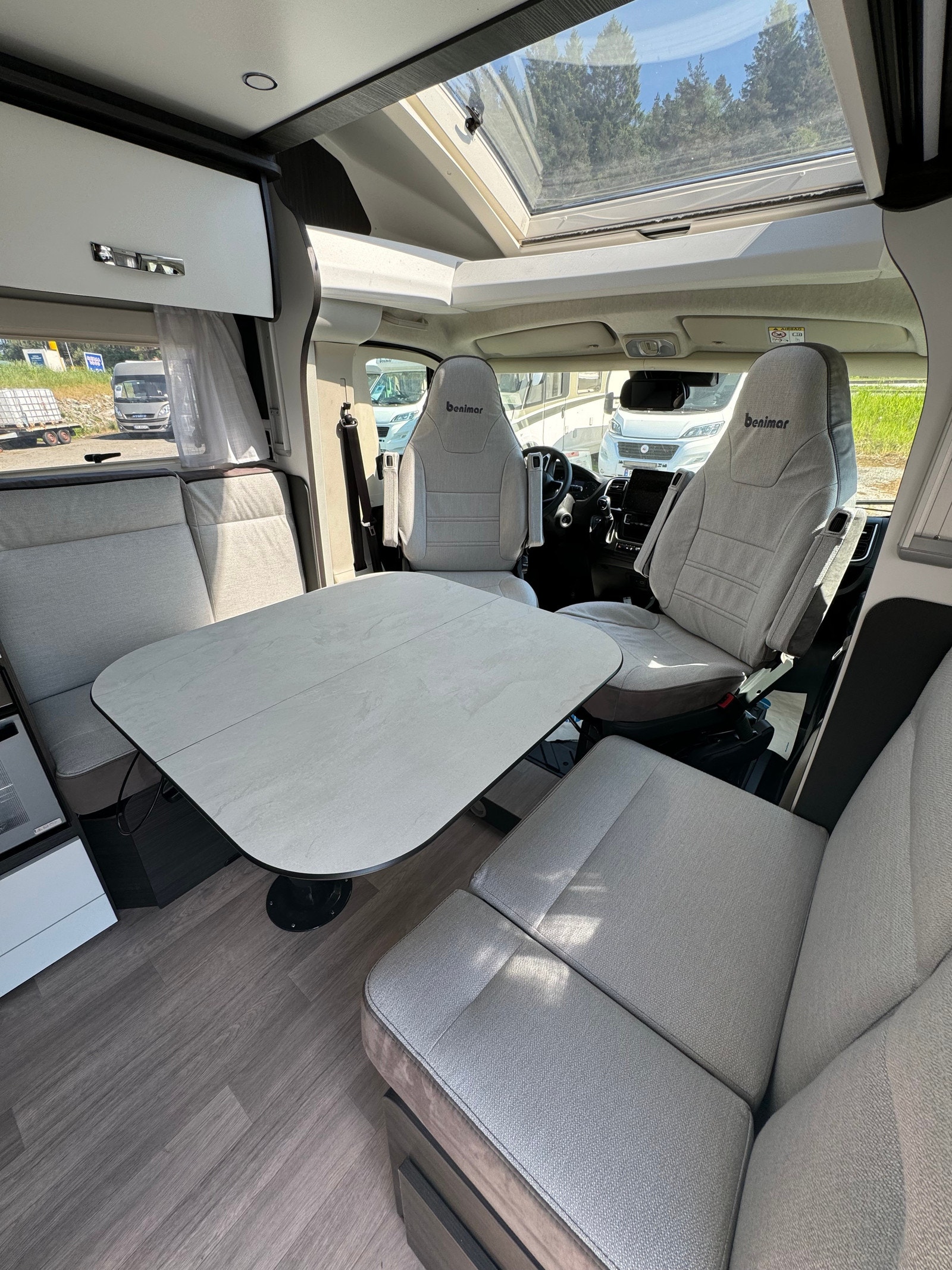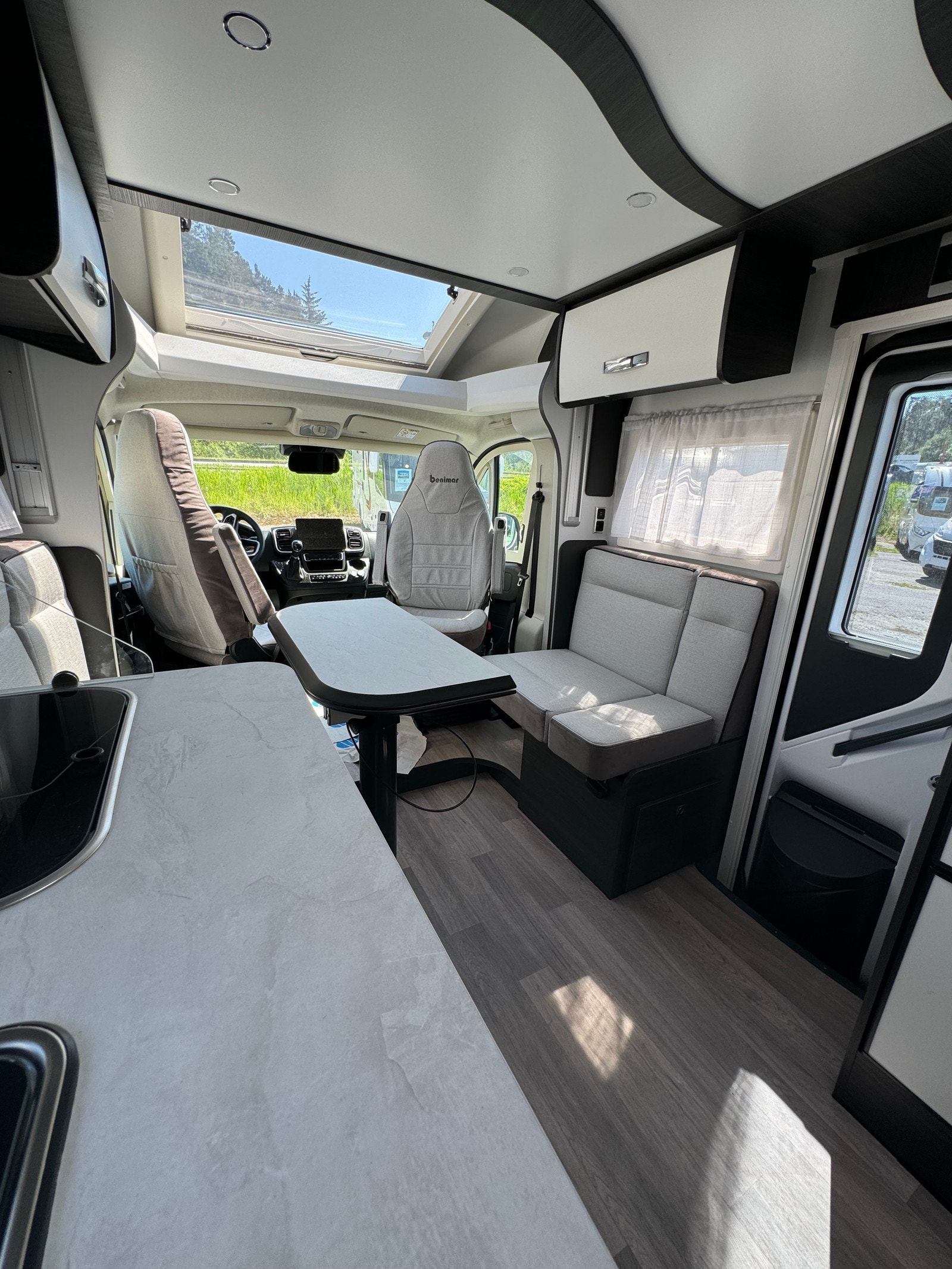 Nå kan du booke utleiebilen vår Benimar, Mileo 297! Helt ny bil, og flott planløsning med dobbelseng bak + elektrisk takseng. Bobilen er registrert for 4 personer.