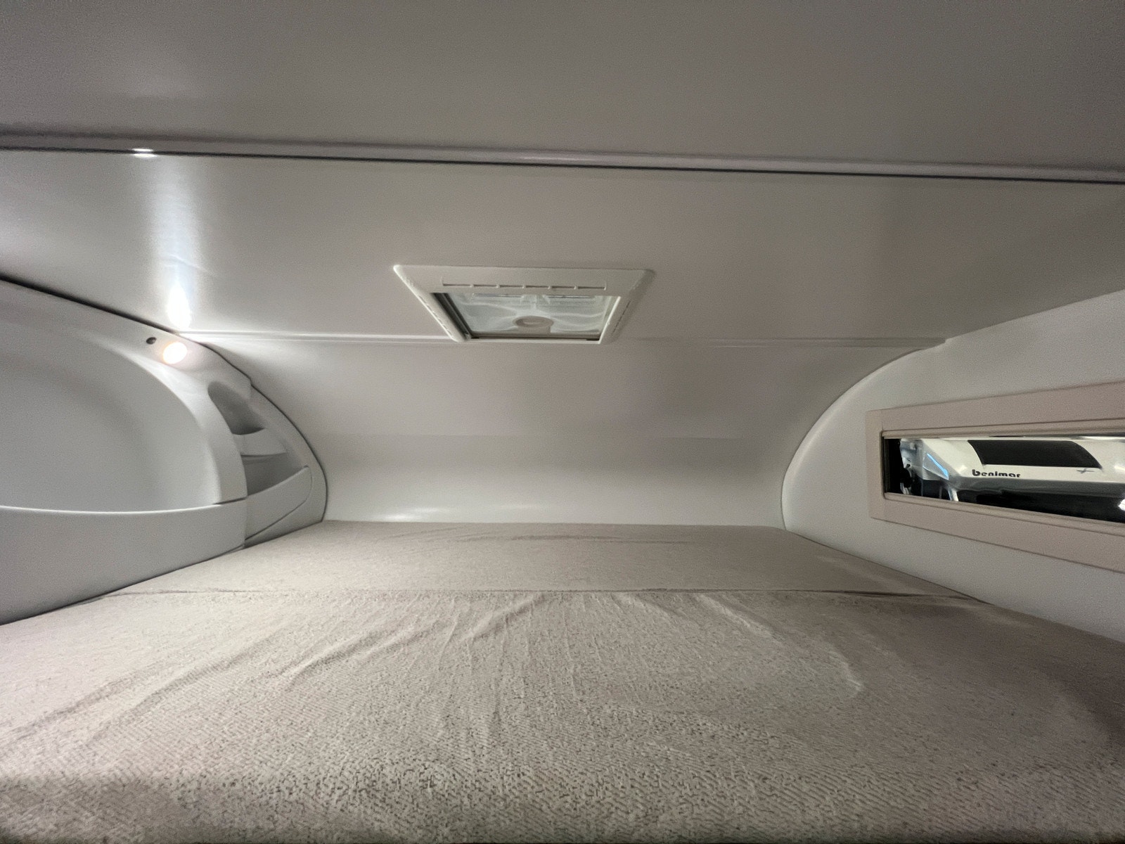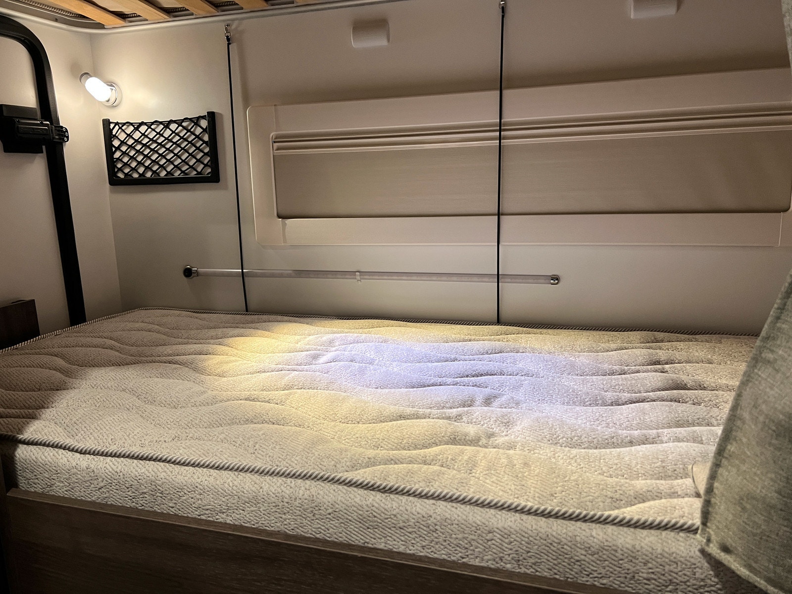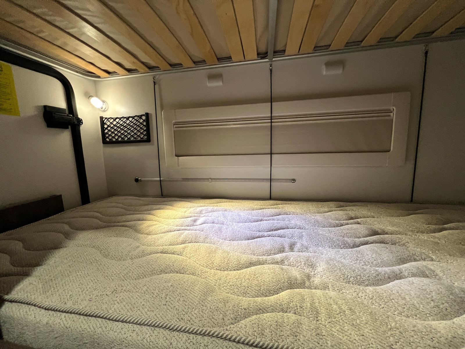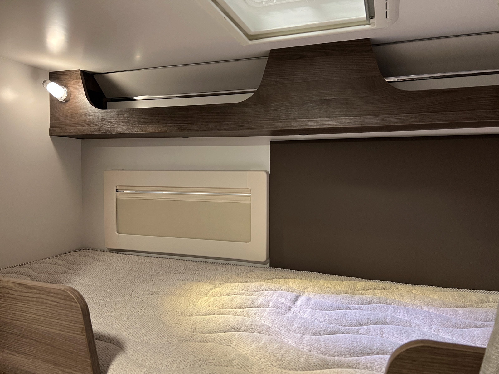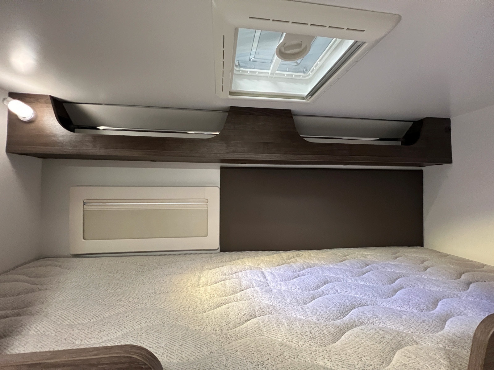Alkove med stor dobbeltseng, som kan brukes til lagringsplass dagtid.