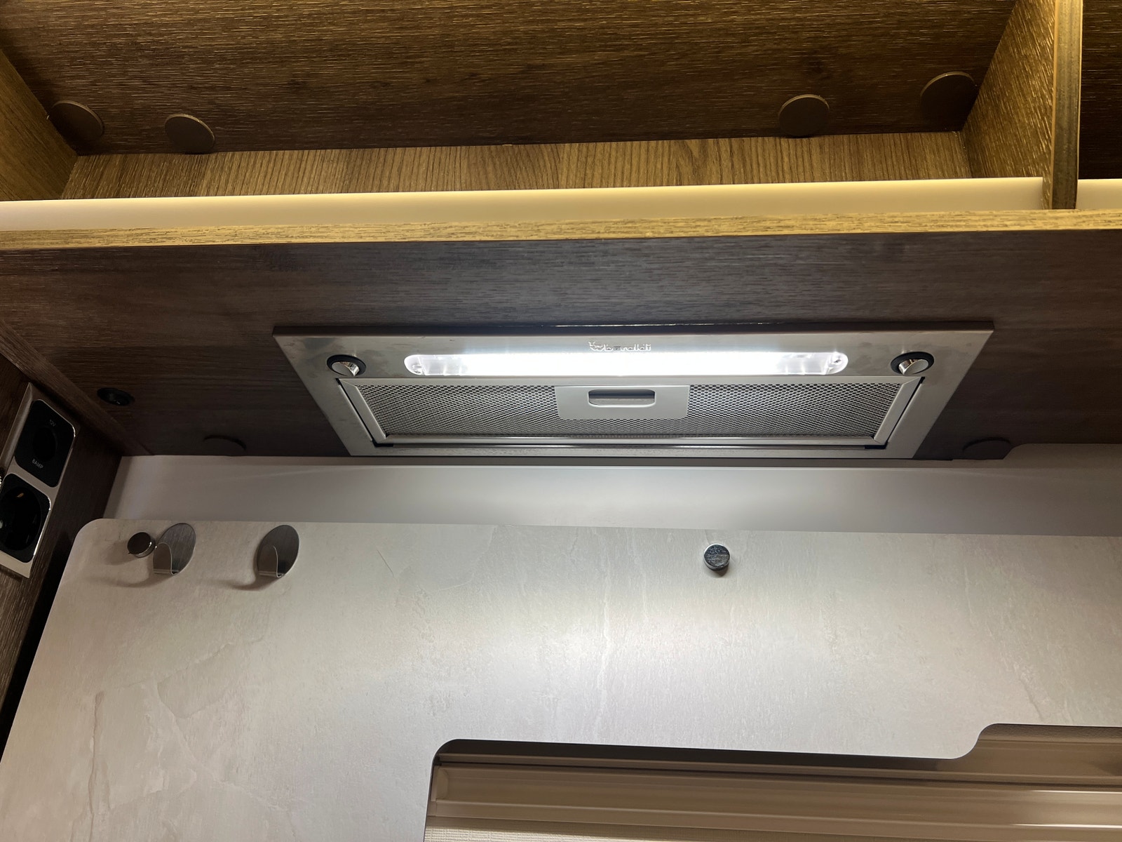 – Kjøkken med vindu, stor panneskuff, avtrekksvifte og opplyst krydder hylle