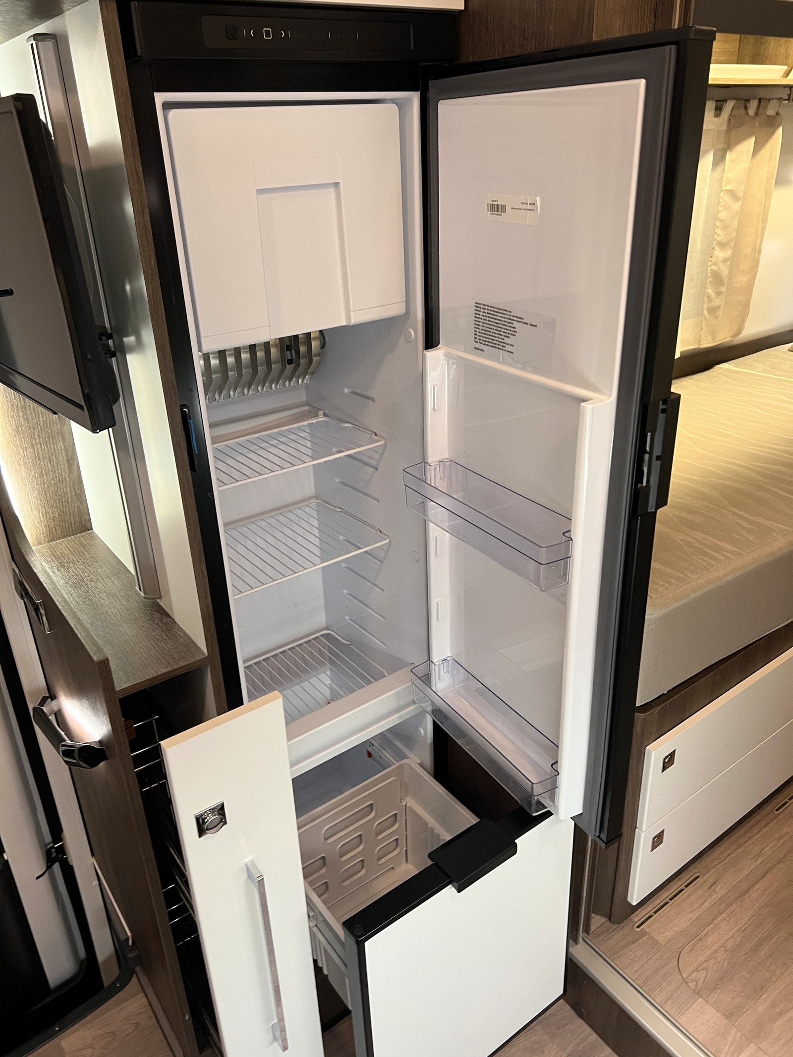 – Stort kjøleskap på 140 l med separat del til 9×1,5 l flasker