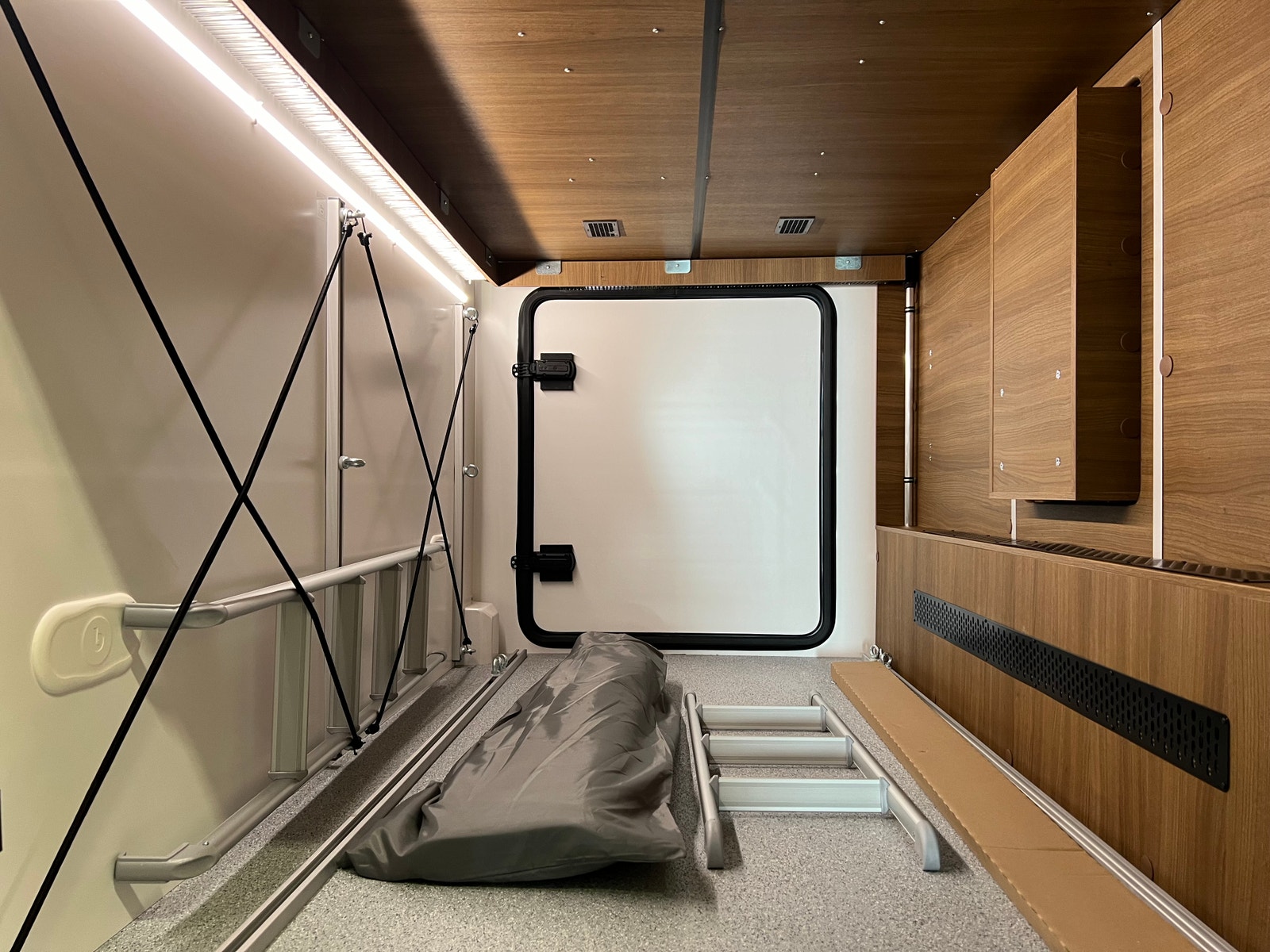 MEGET ROMSELIG GARASJE / LASTEROM BAK UNDER SENGER MED STOR DØR PÅ BEGGE SIDER