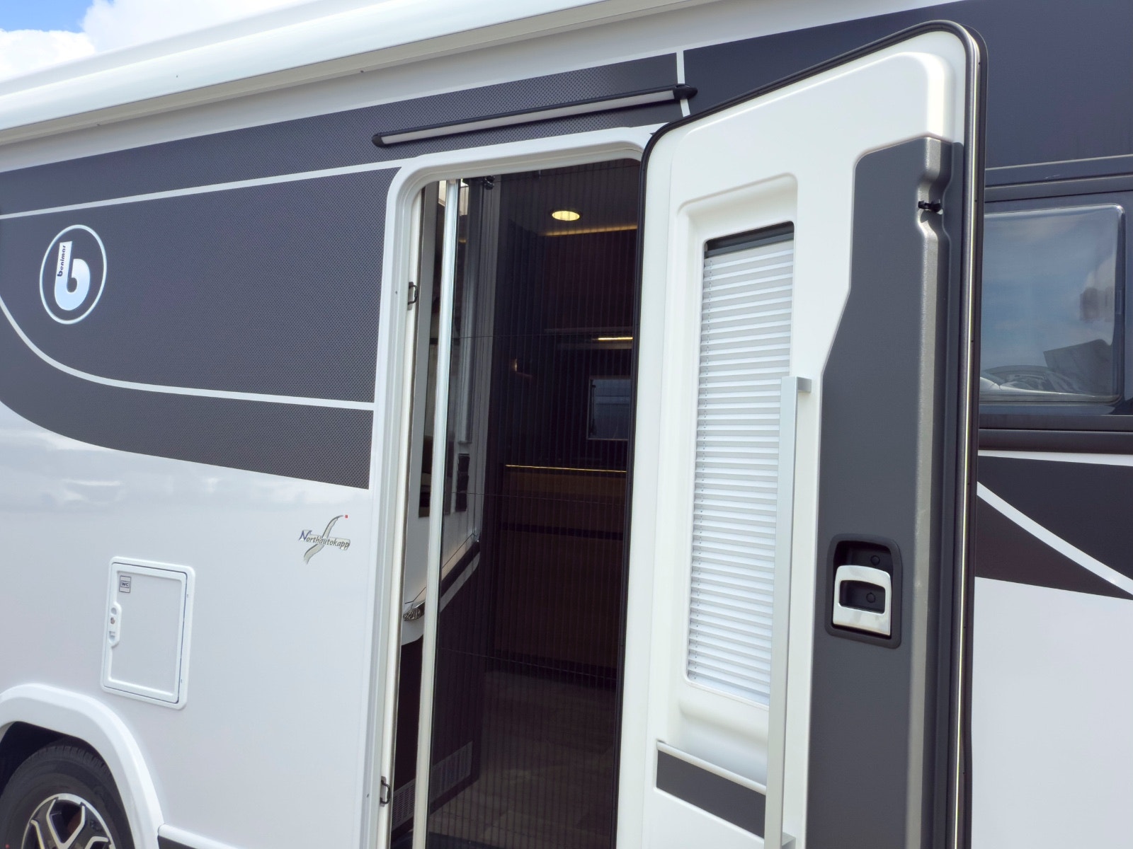 Benimar Amphitryon 998 har en stor garasje med tilgang fra begge sider. Den er utstyrt med lys, varme og solide surrefester – perfekt for sykler, grill, bord og turutstyr. Elektrisk stigtrinn for enkel inn-/utstigning og isolert innsteg sørger for komfort året rundt.