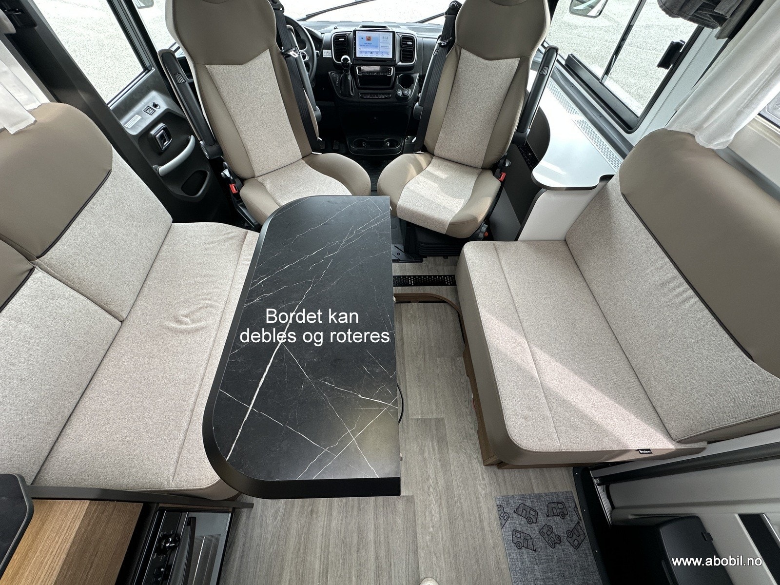 I førerdel finner du Aircondition, koppholdere, USB, DAB+ stereoanlegg med høyttalere også bak, ryggekamera og multifunksjonsratt. Svingbare og regulerbare pilotstoler med armlener og regulerbart ratt sørger for førsteklasses komfort. Sentrallås (inkludert bodelsdør).