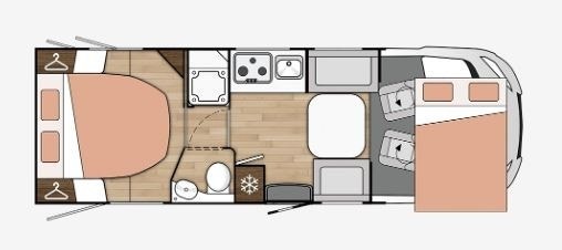 Mer detaljert info: Full poliester karosseri Sidevegger og tak uten treverk, ikke mulighet for å råtne Vindu med dobbelt glass Dometic D-Lux Bakspoiler Dørlåser I “bilstil” på bodelsluker Inngangsdør med 2 låser, sentrallås, vindu, myggnett og søppelbøtte Garasje skinner for feste av last Parkeringssensor bak Soft close skuffer Avtagbare putetrekk Skilledør mellom soverom og sittegruppe Høyderegulerbar seng bak (Manuell) TV feste 1 kjøkkensett LED lys Qeensbed (150 cm) – Midtstilt seng Skuffer under bakre seng USB port ved sengegavl Innendørs høytalere Lys i garderoben 3 puter i salong og 2 soveromsputer New flooring cover Foldbare seter med ISOFIX LED panel ved sengegavl Ny PAMPLONA møbler med redesignet top-box Nedfellbar seng ( Manuell – 250 kg max) Bakre seng med 20 cm tykk madrass Bredaksel bak (1980 mm) Akselavstand (mm): 4035 16″ felger Farget frontfanger Kjørelys LED Elektrisk vindu REMIS sammenleggbar formørkning Cruise controll Aircondition Sjåfør + passasjer airbag Dybde regulerbart ratt Multifunskjonsratt med radio styring Setetrekk likt resten av bodelen også framme Elektrisk og oppvarmet speil FIAT Euro 6d med 2,2 l, 180 hk og 9-trinns automatgir ABS + ESP Radio DAB + Bluetooth + USB + Berørings skjerm 6,2″ Liggende svingbare kapteinstoler med 2 armlener