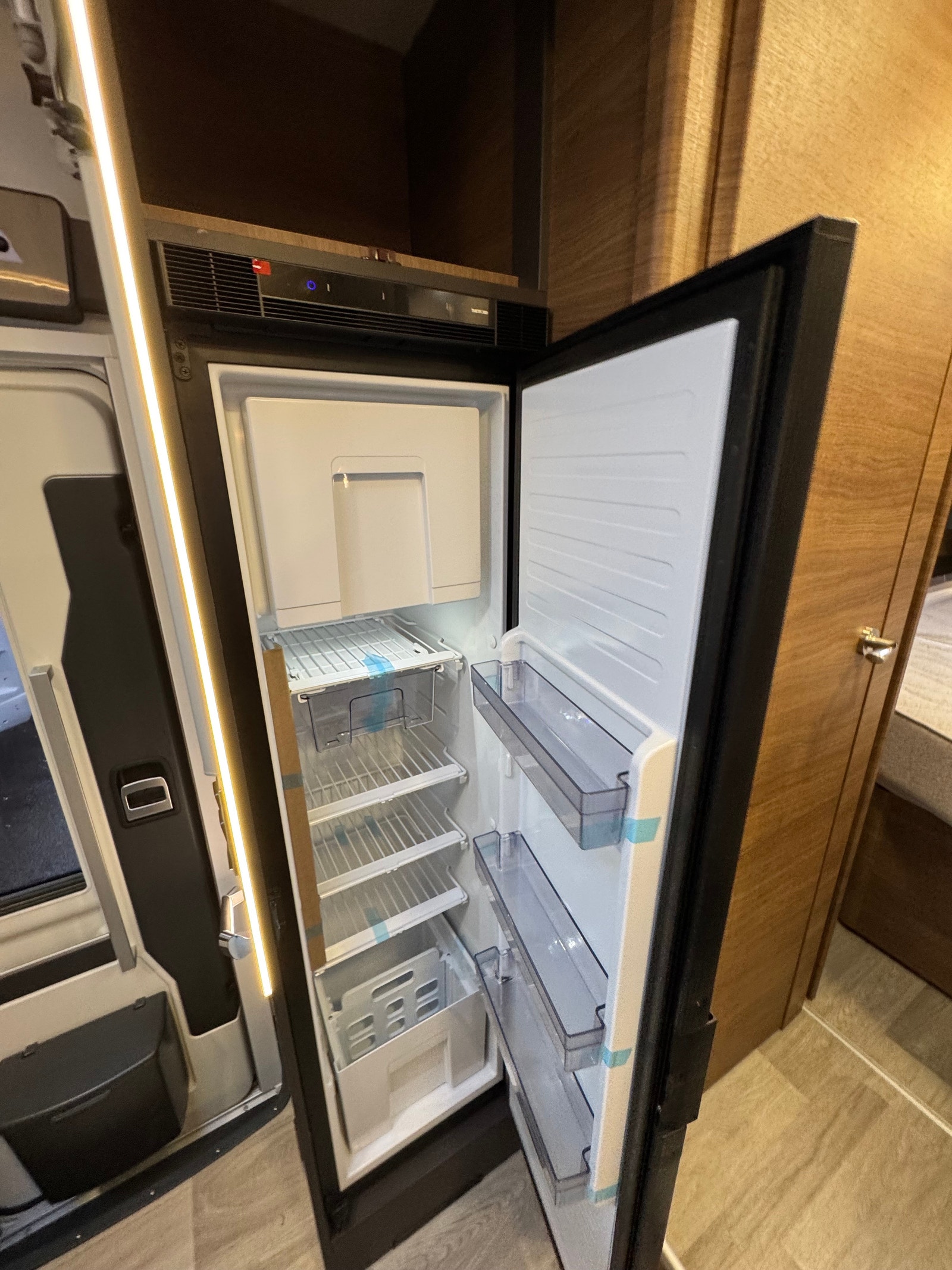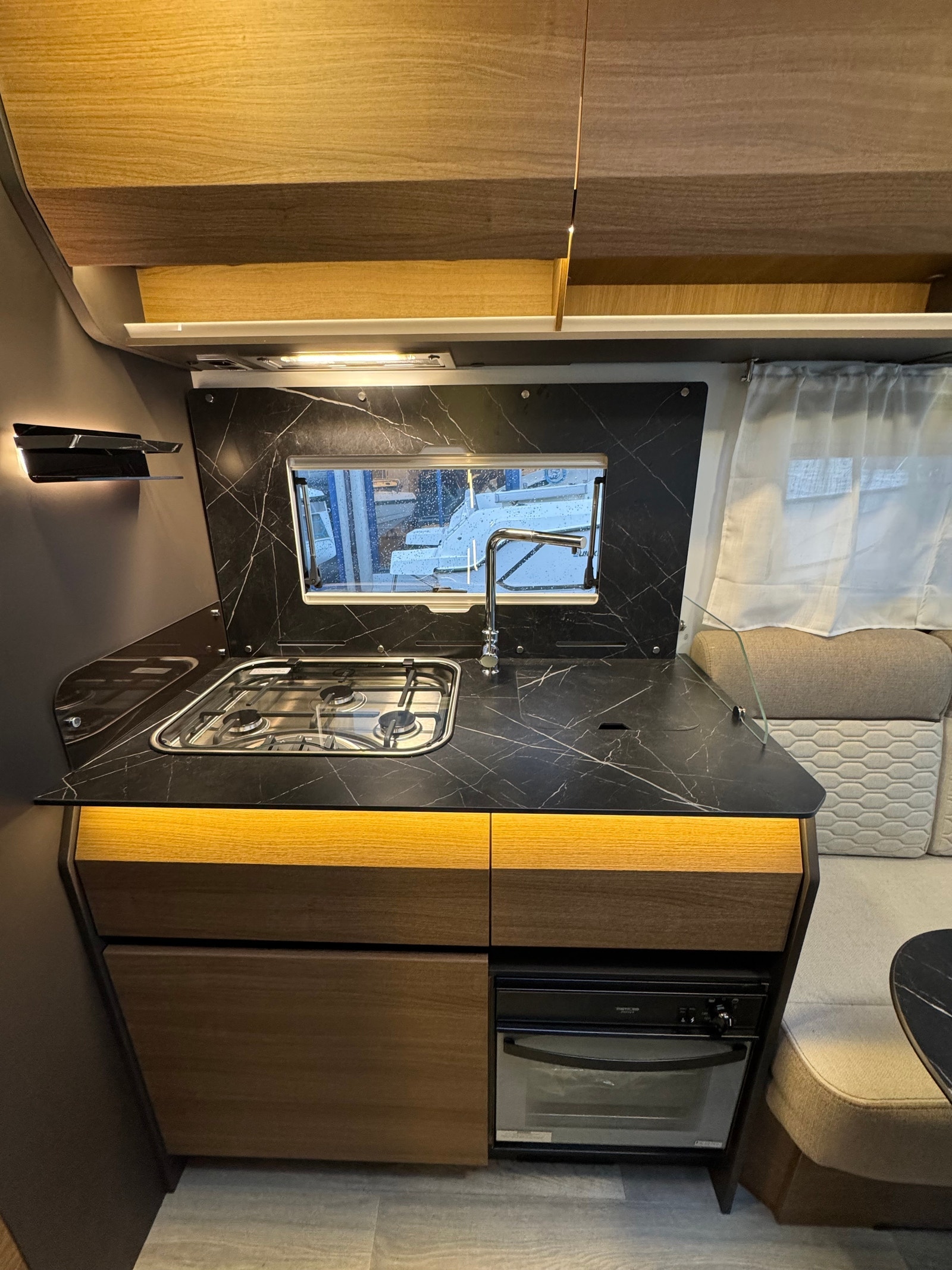 3 gassbluss, med el.tenner, ventilator, godt med benke og skapplass, stekeovn, stort kjøleskap med kjøleskuff og egen frys!