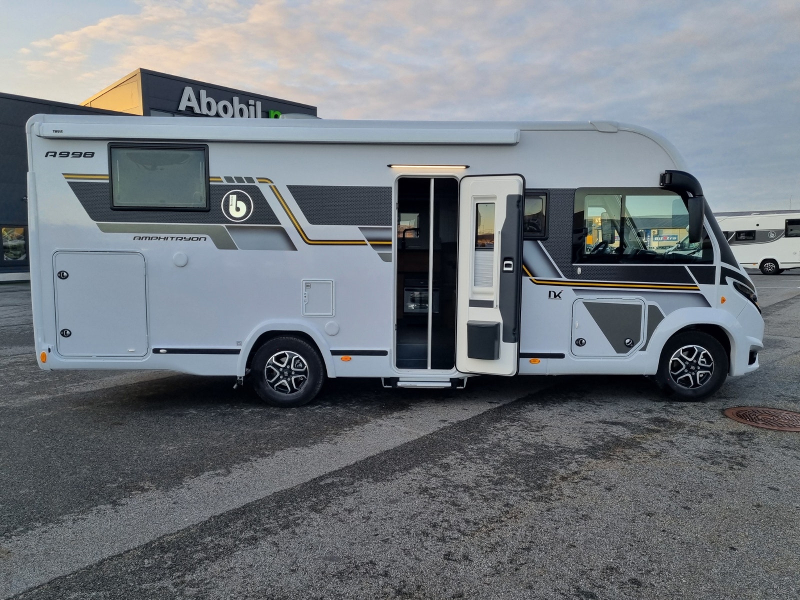 Vi har fått på lager en topputstyrt Benimar Amphitryon 998, 2026-modell – en luksuriøs bobil med gjennomført design, høy komfort og svært populær planløsning! Bygget på Fiat 2,2L 180HK med 8-trinns automatgir, med ALDE vannbåren varme er dette en modell som leverer både kvalitet og fleksibilitet – året rundt.