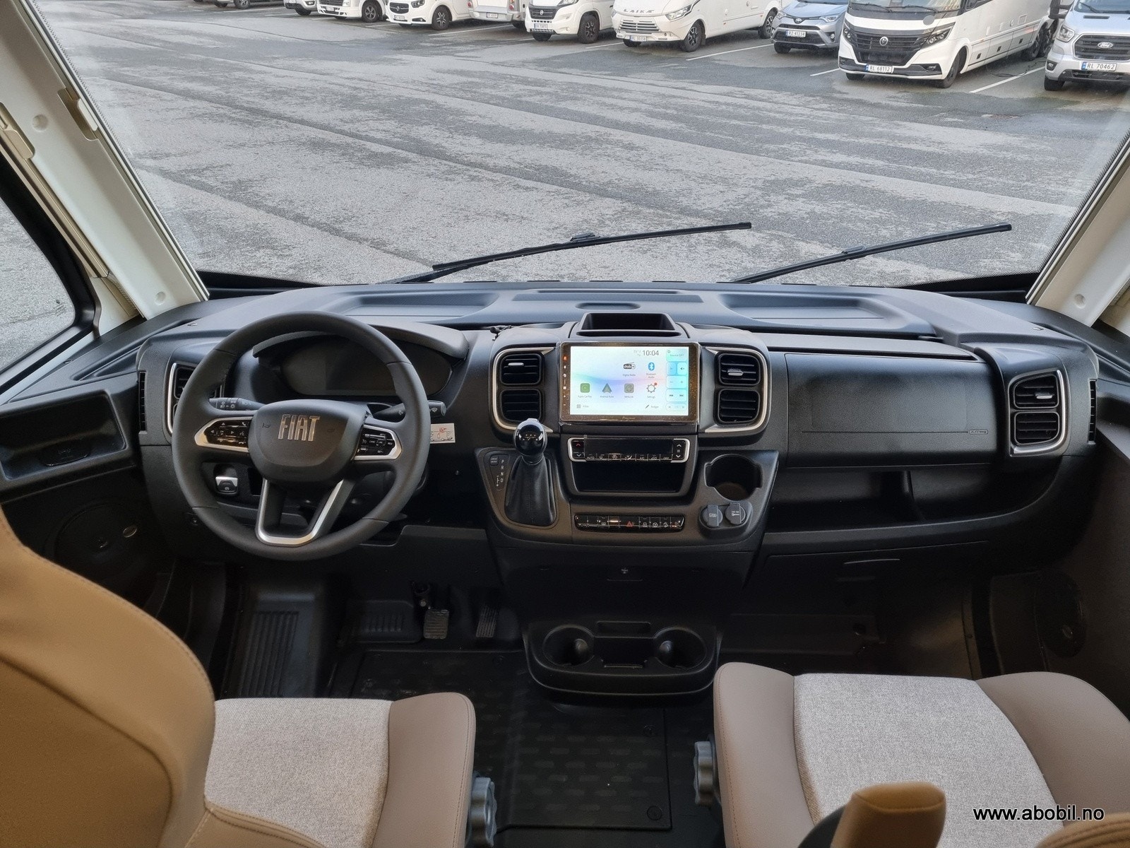 I førerdel finner du Aircondition, koppholdere, USB, DAB+ stereoanlegg med høyttalere også bak, ryggekamera og multifunksjonsratt. Svingbare og regulerbare pilotstoler med armlener og regulerbart ratt sørger for førsteklasses komfort. Sentrallås (inkludert bodelsdør).