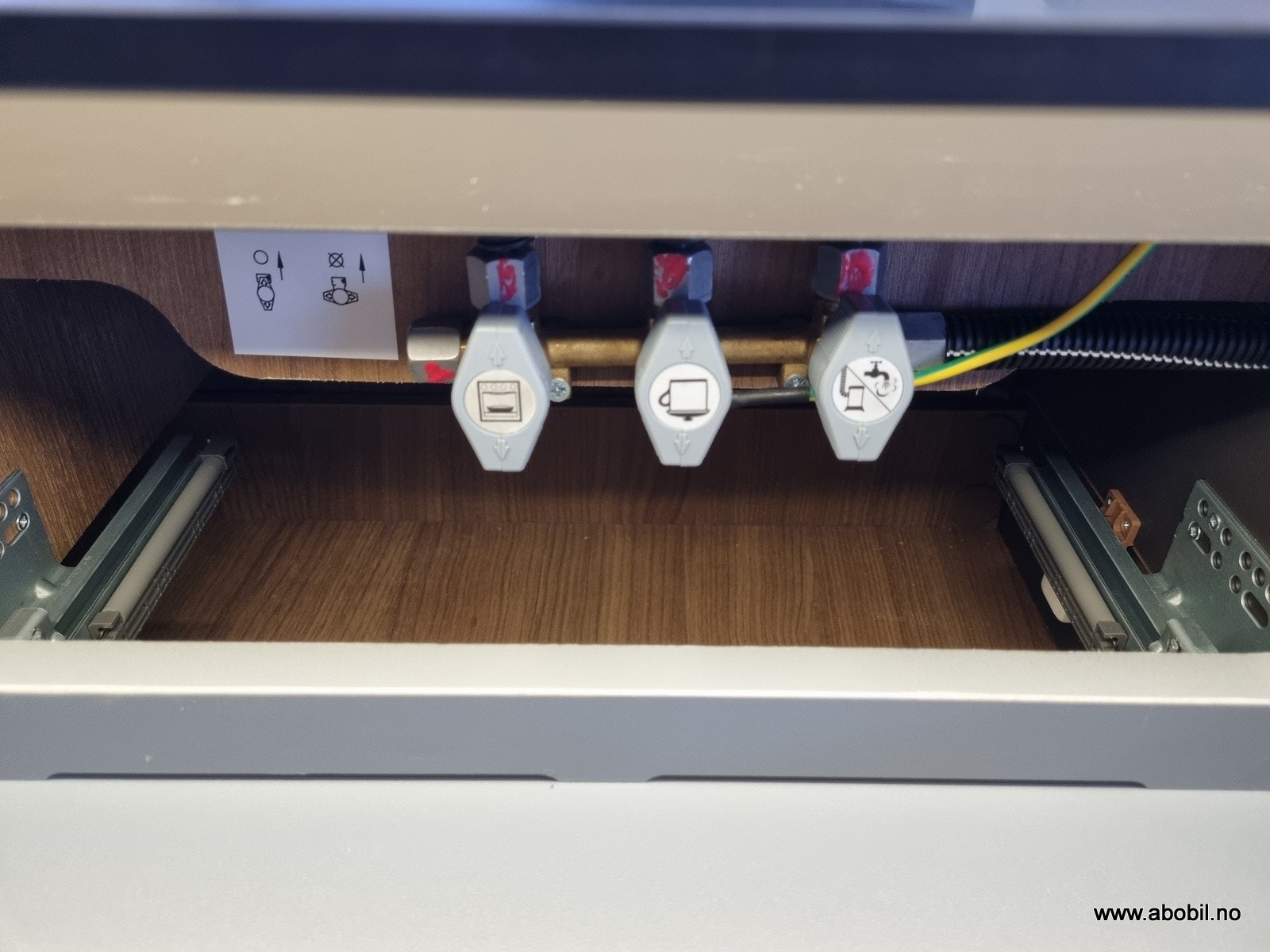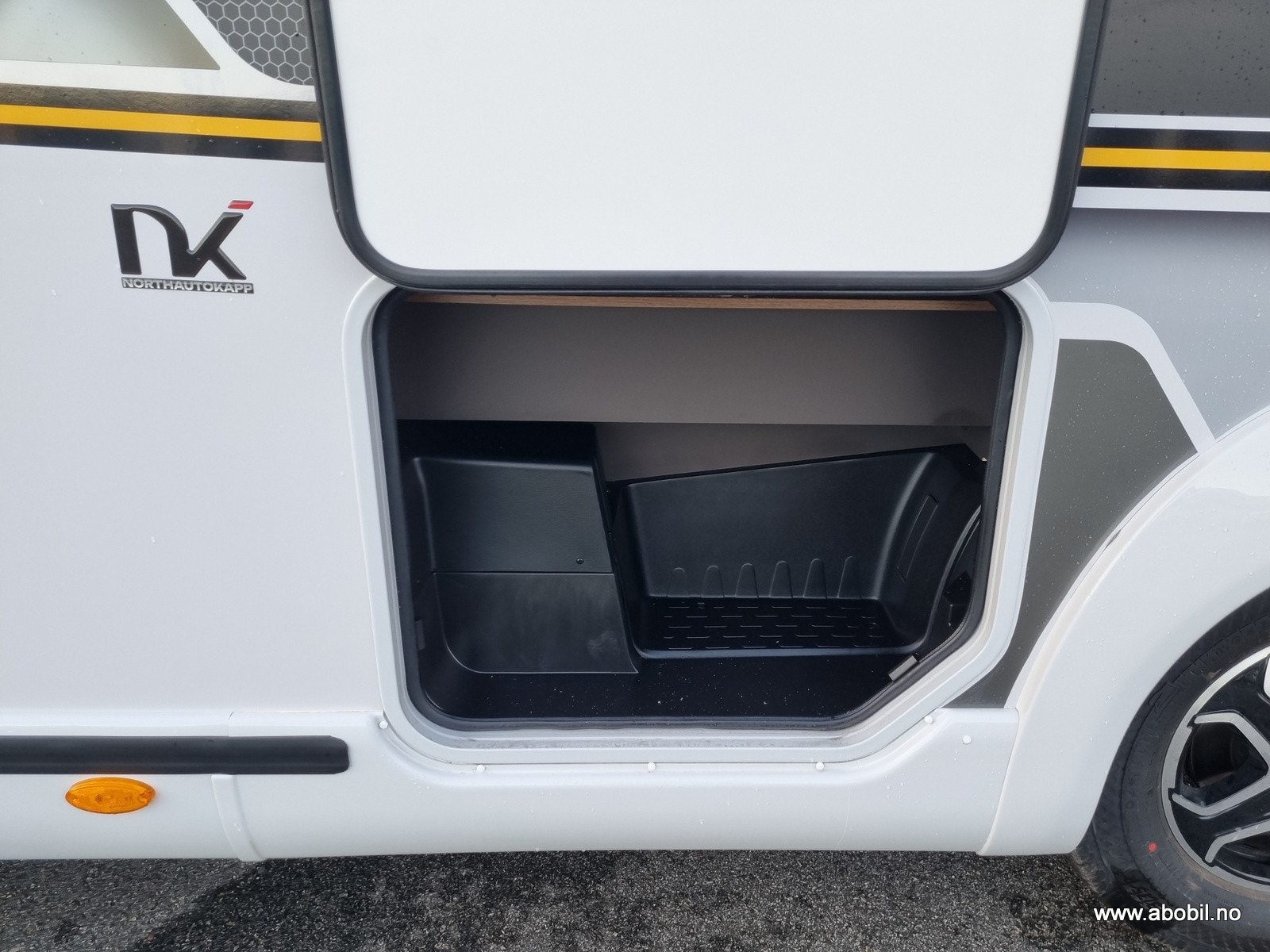 Energieffektiv LED-belysning er installert i hele bodelen – inkludert utvendig og i garasjen. Flere USB- og 230V-uttak gir enkel lading av utstyr og fleksibel bruk.