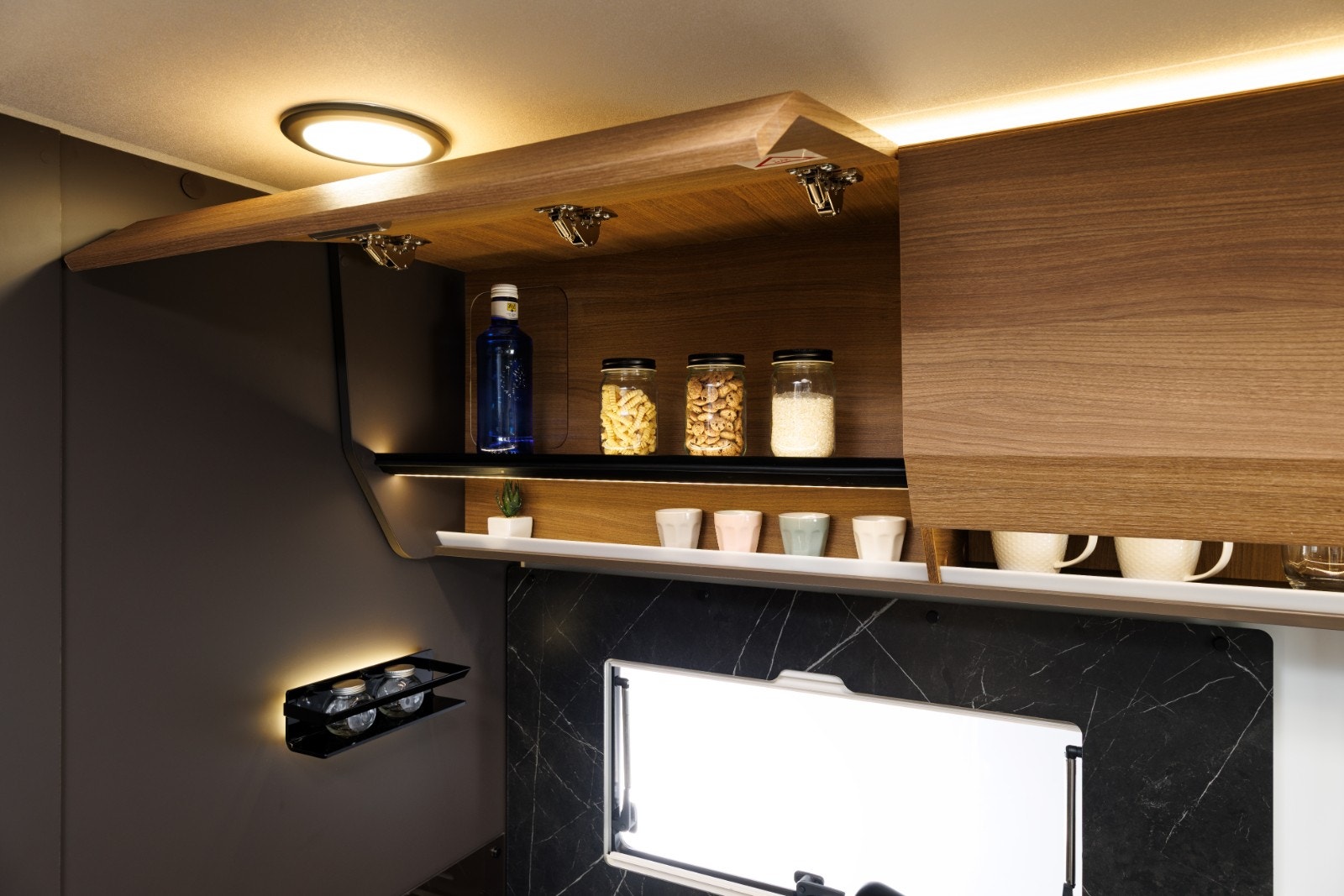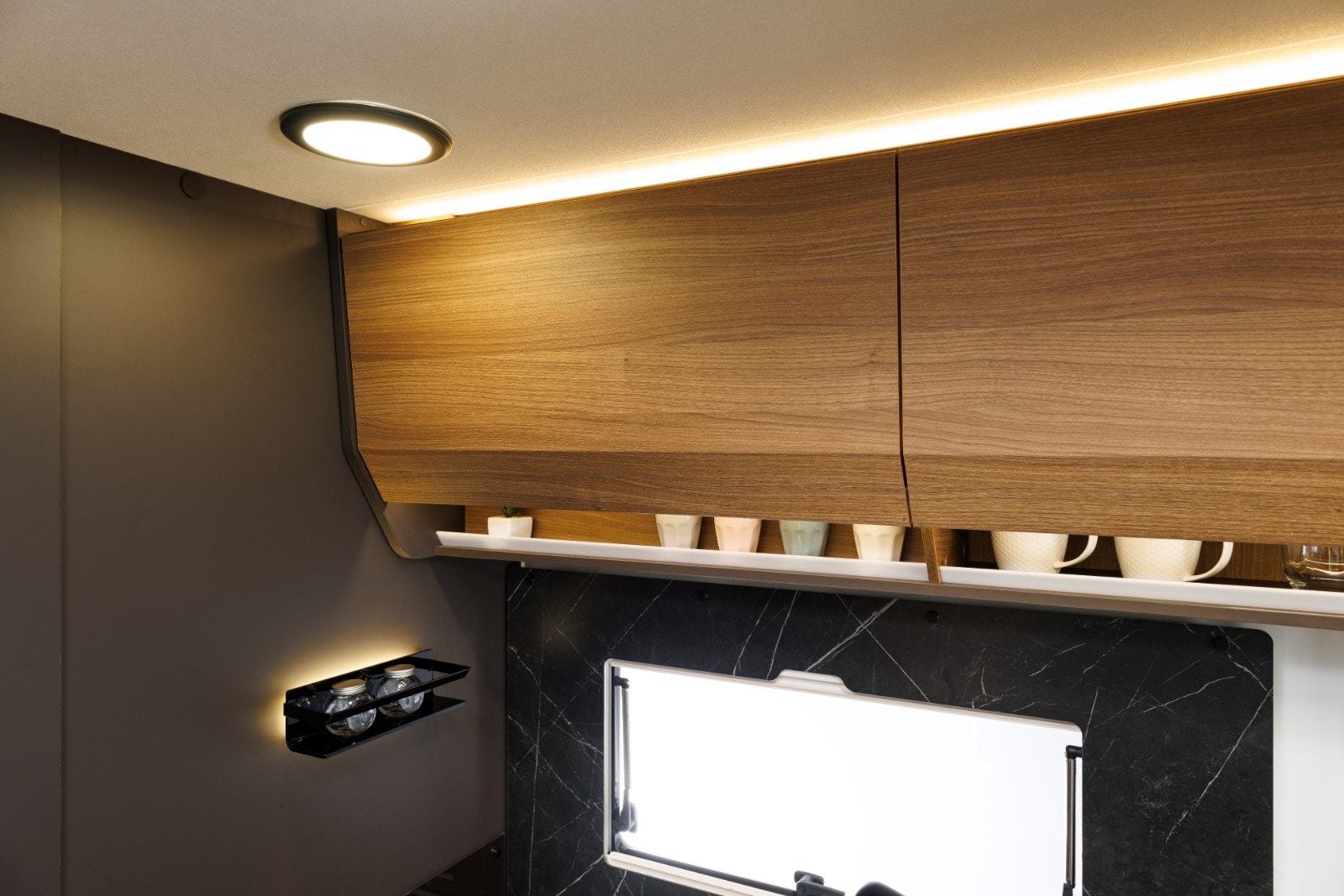 200W solcellepanel lader bodelsbatteriene effektivt – også under overskyet vær. ALDE vannbåren varme med elektriske elementer og full LED-belysning gjør bobilen godt rustet for langvarig fricamping, både sommer og vinter.