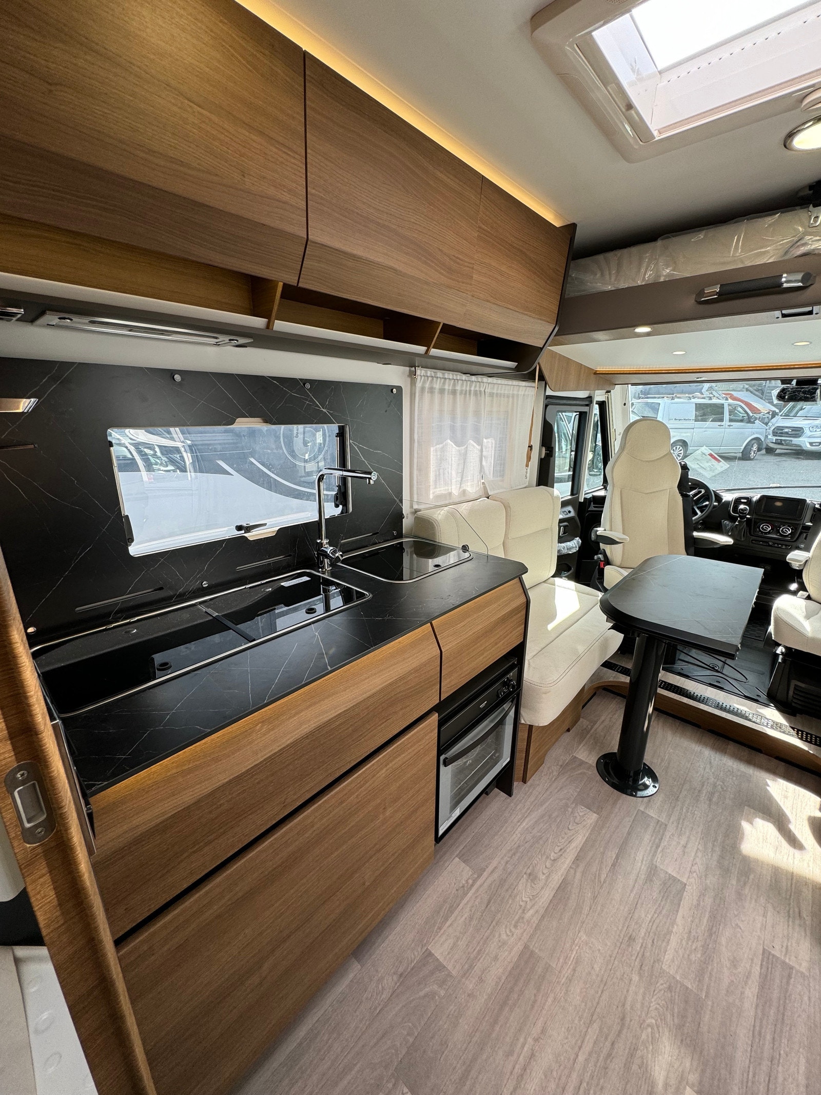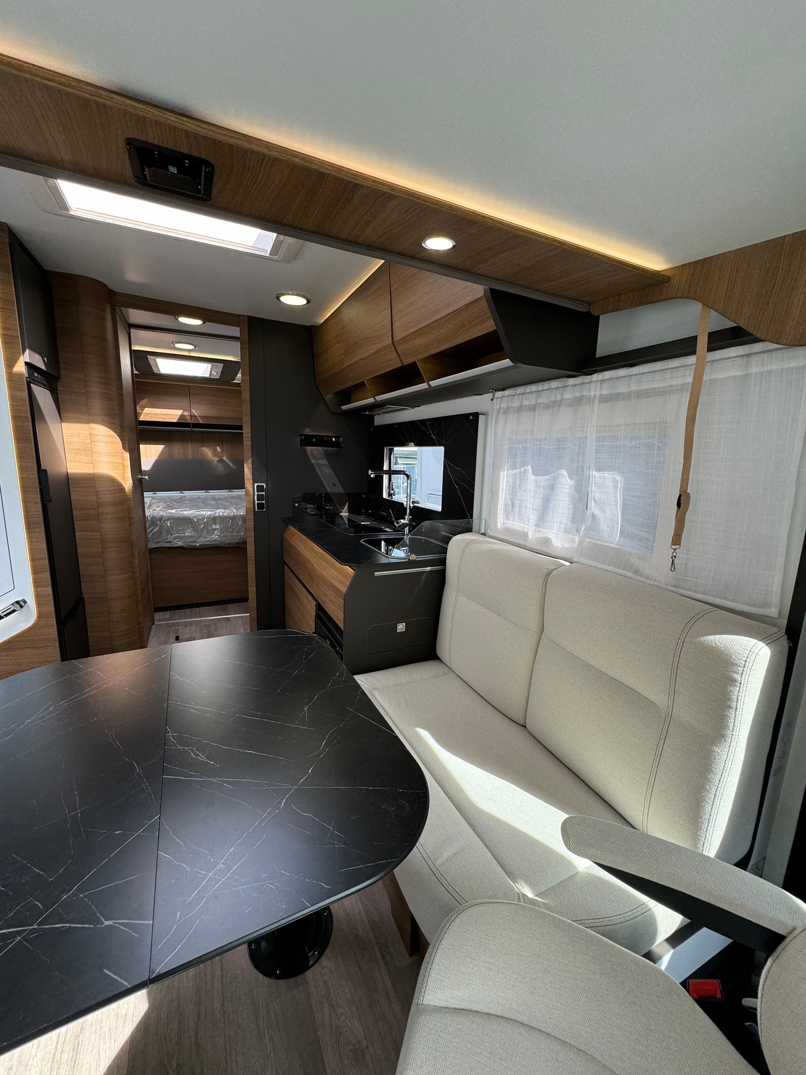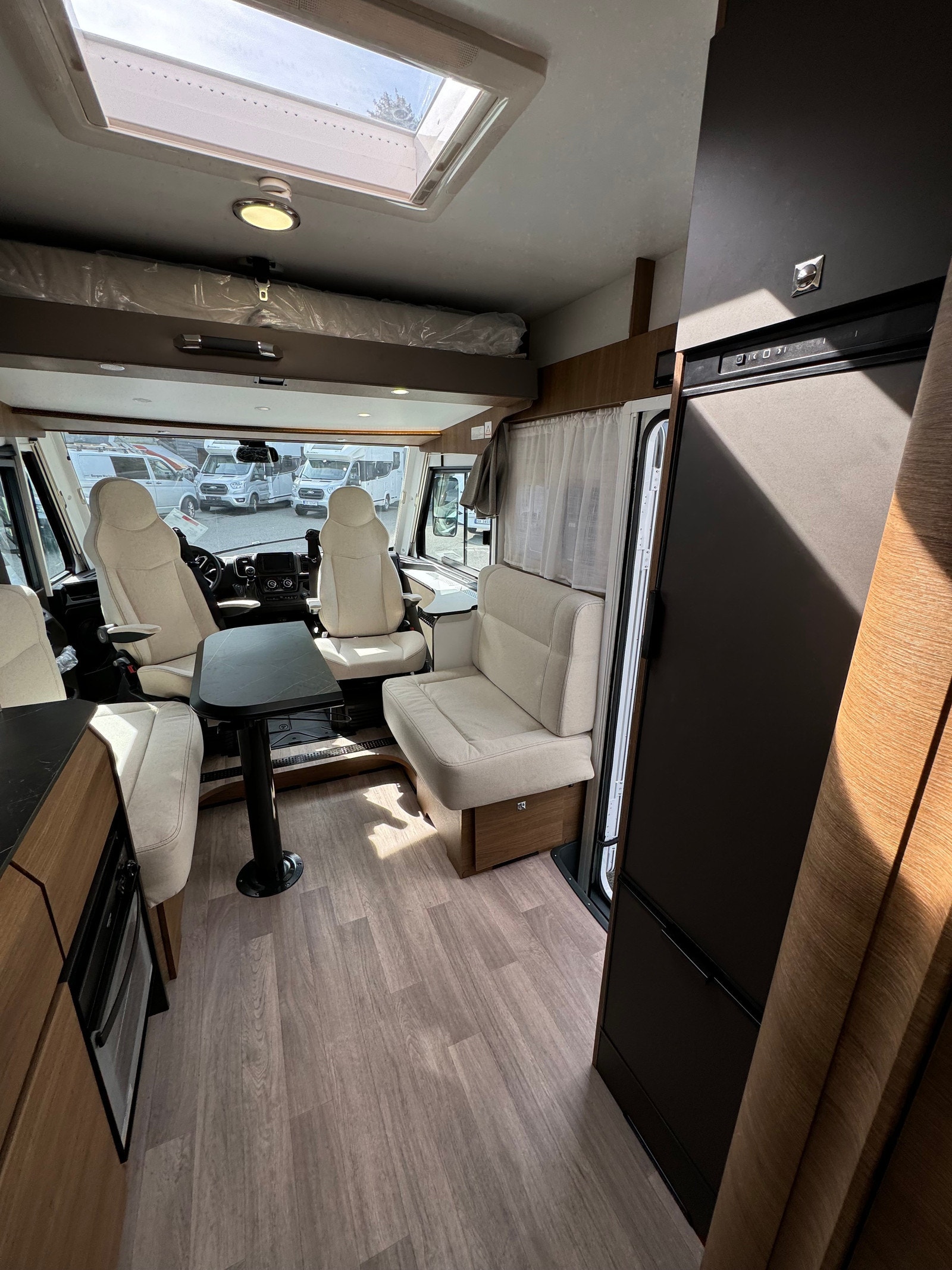 «Face to Face» løsningen ved salong gjør at du får en meget romslig sittegruppe, siden salongbordet er foldbart. Med 2 skjulte passasjerstoler i salongen sitter nr 3 og 4 også svært behagelig under transportetappene.