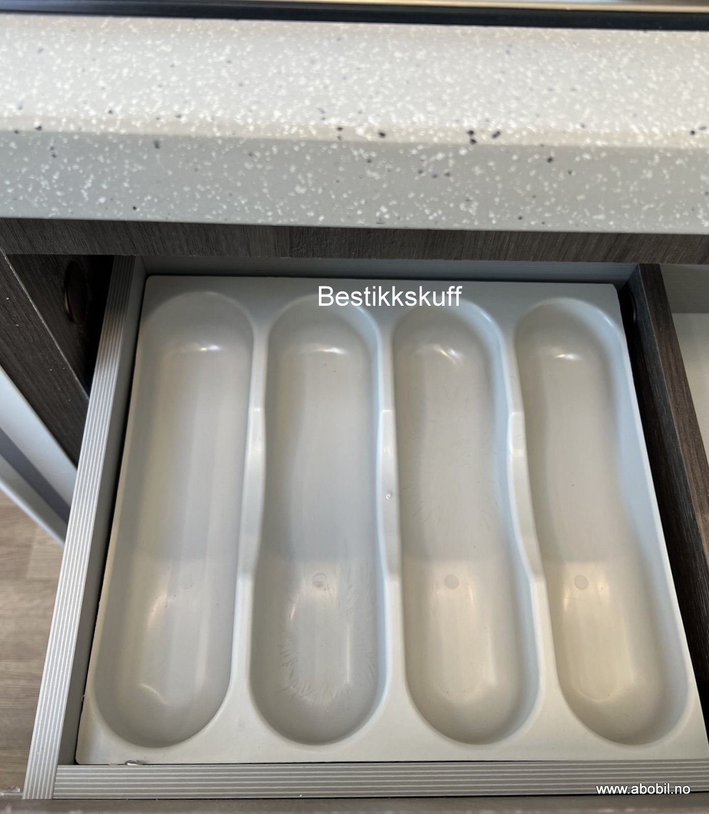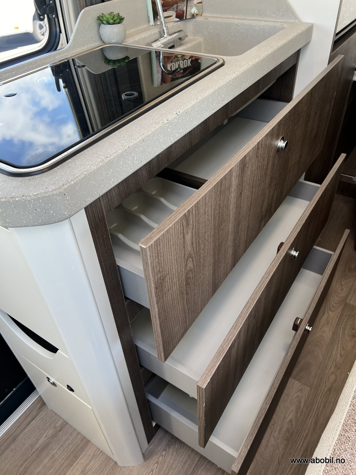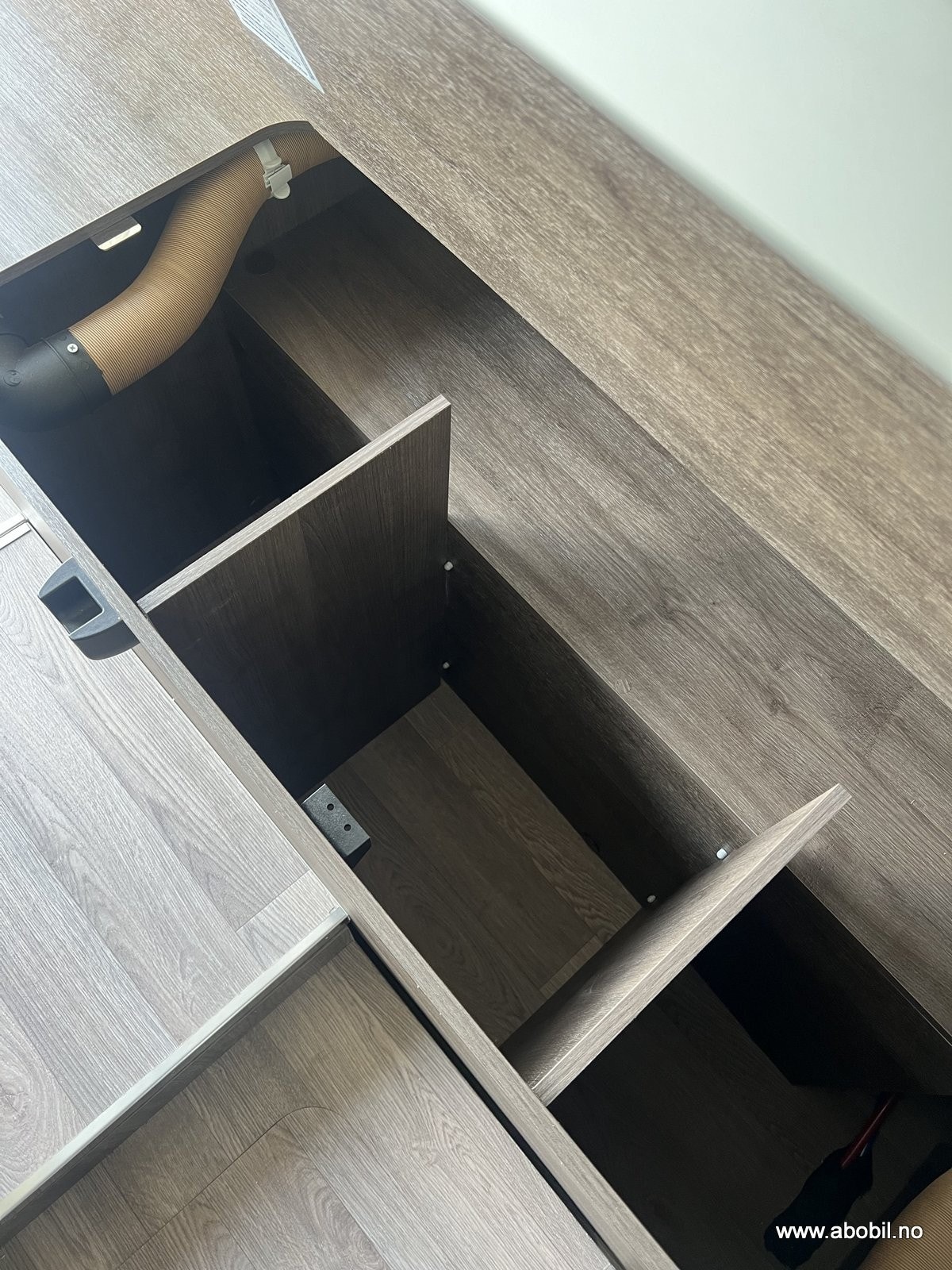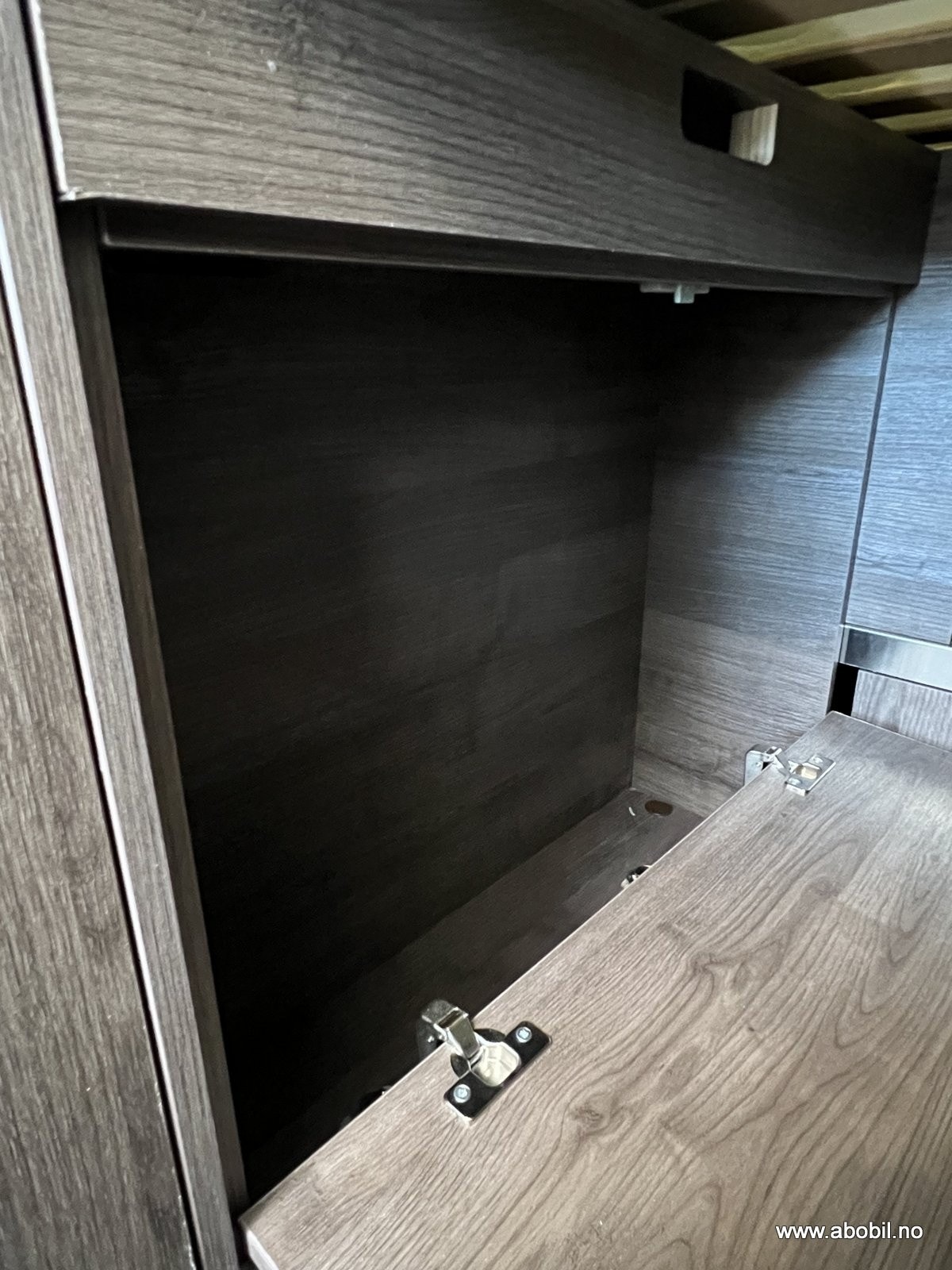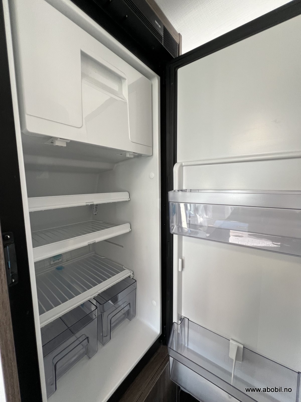 Kjøleskapet er plassert i riktig høyde og har en smart energibesparende kompressor teknologi på 12v strøm.