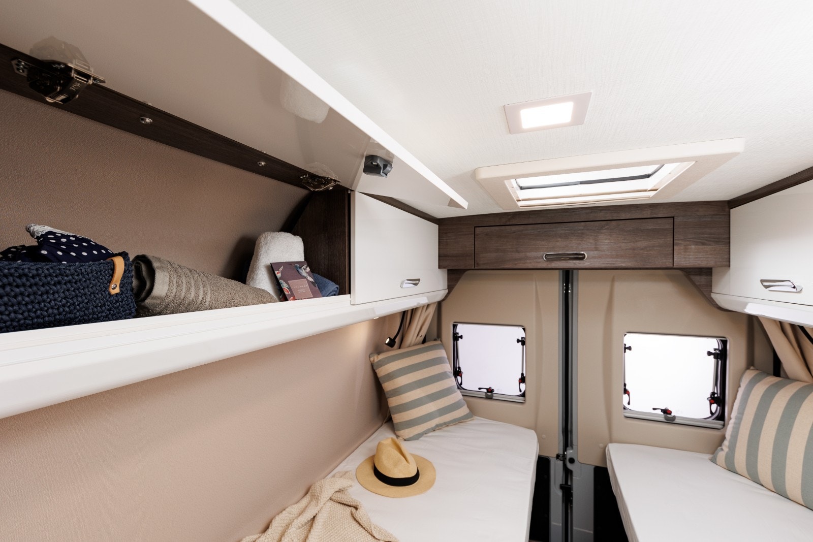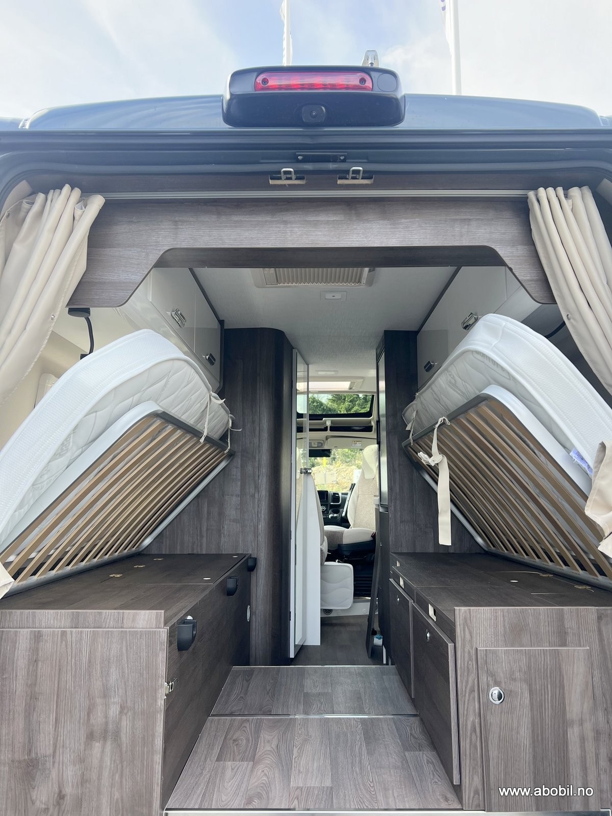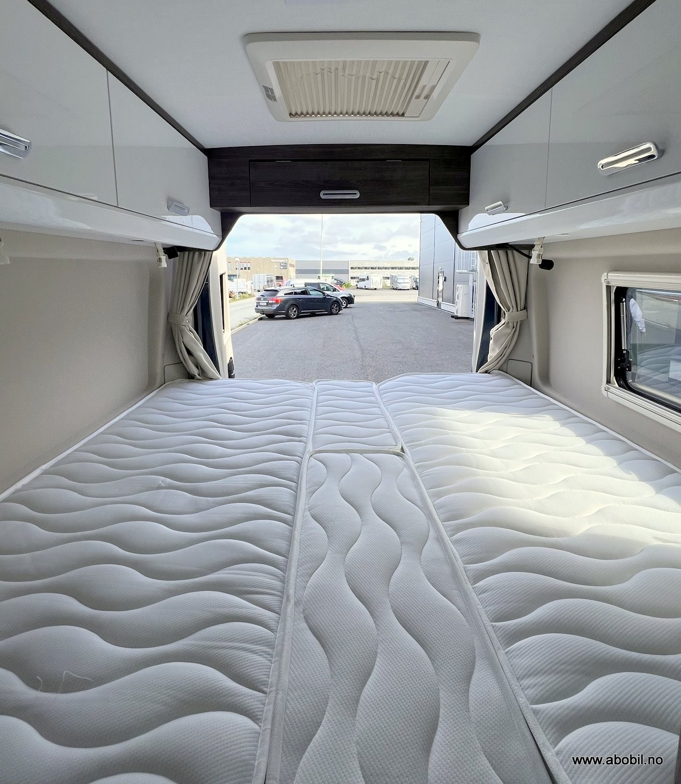 Denne modellen har den mest populære løsningen med 2 Enkeltsenger i bilens lengderetning noe som lar deg gå til og fra sengen uten å forstyrre personen som benytter sengen ved siden.