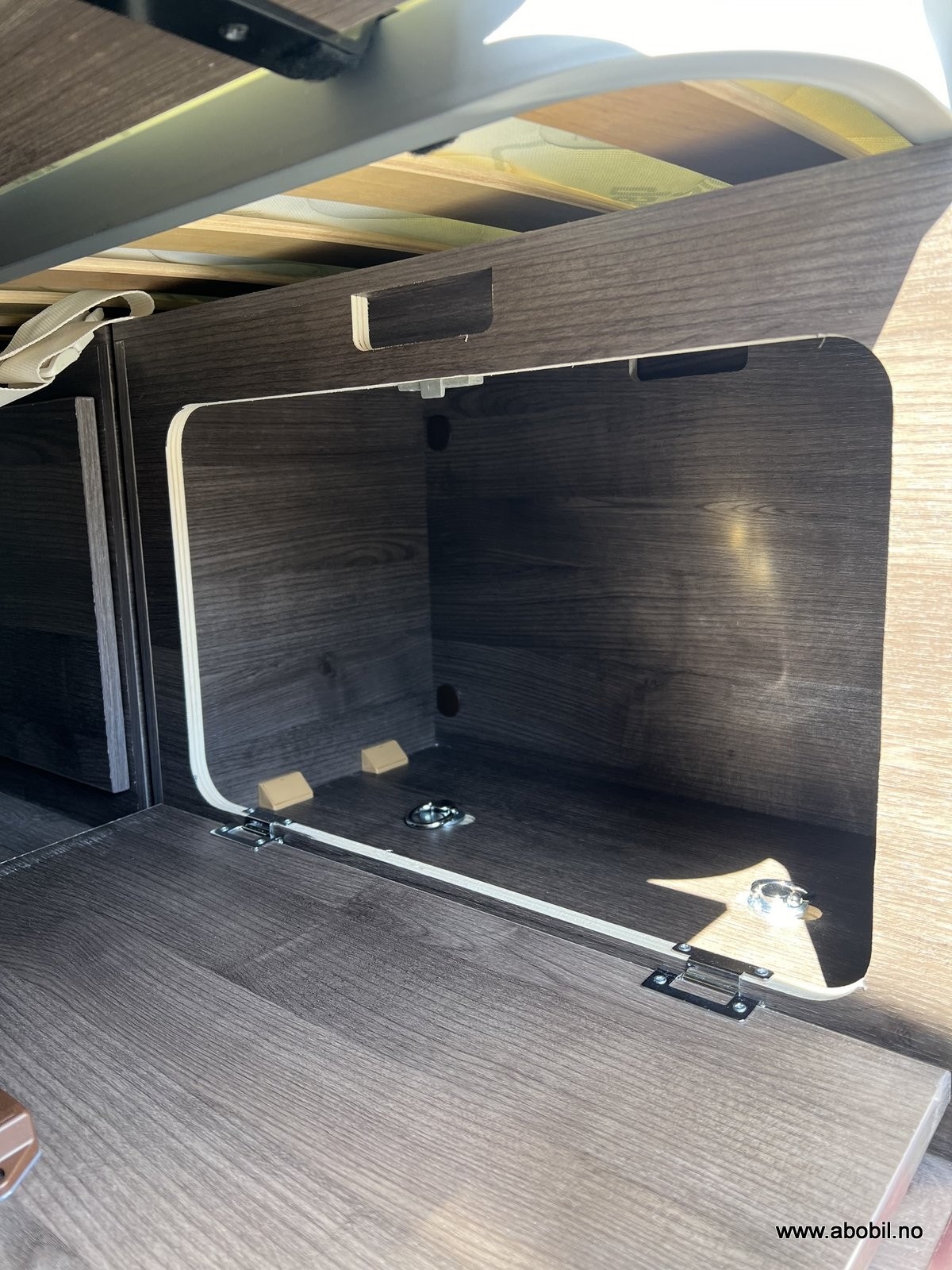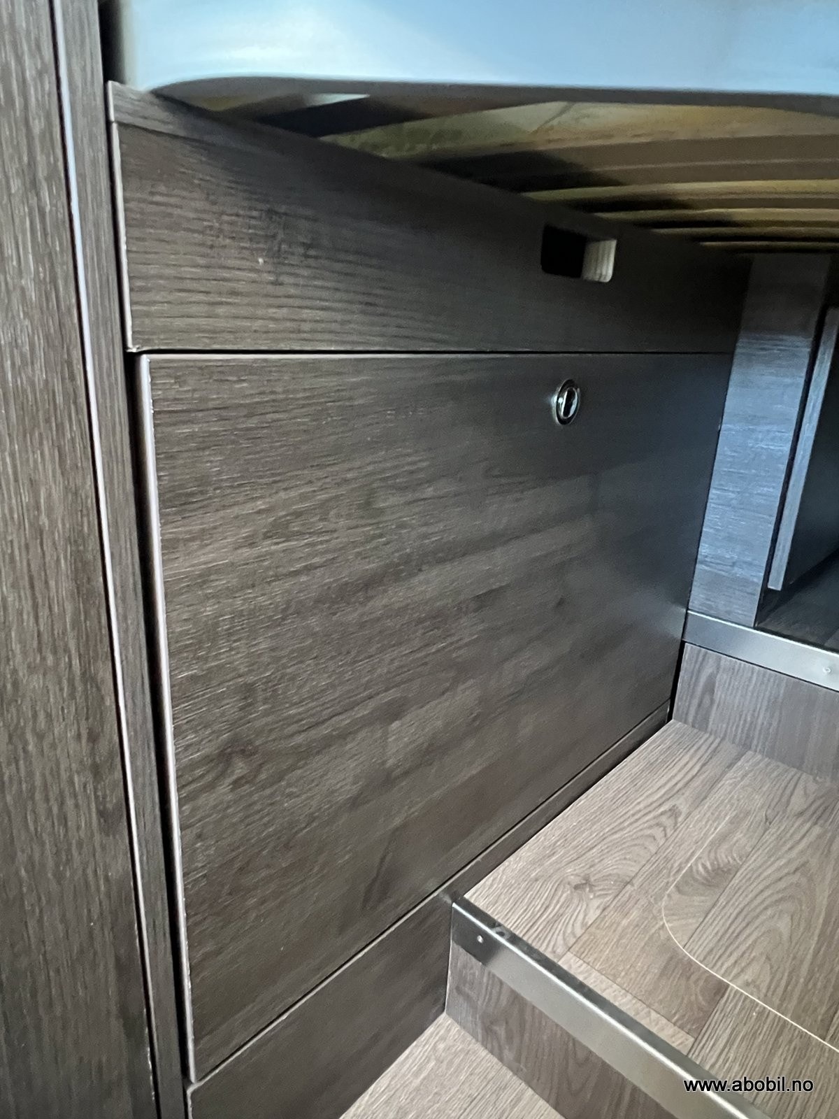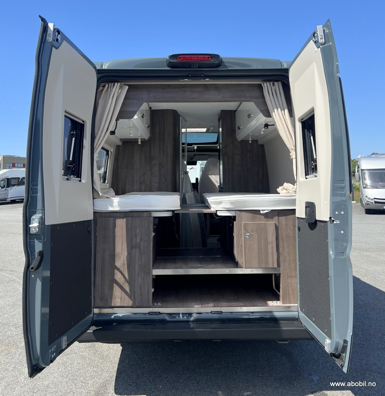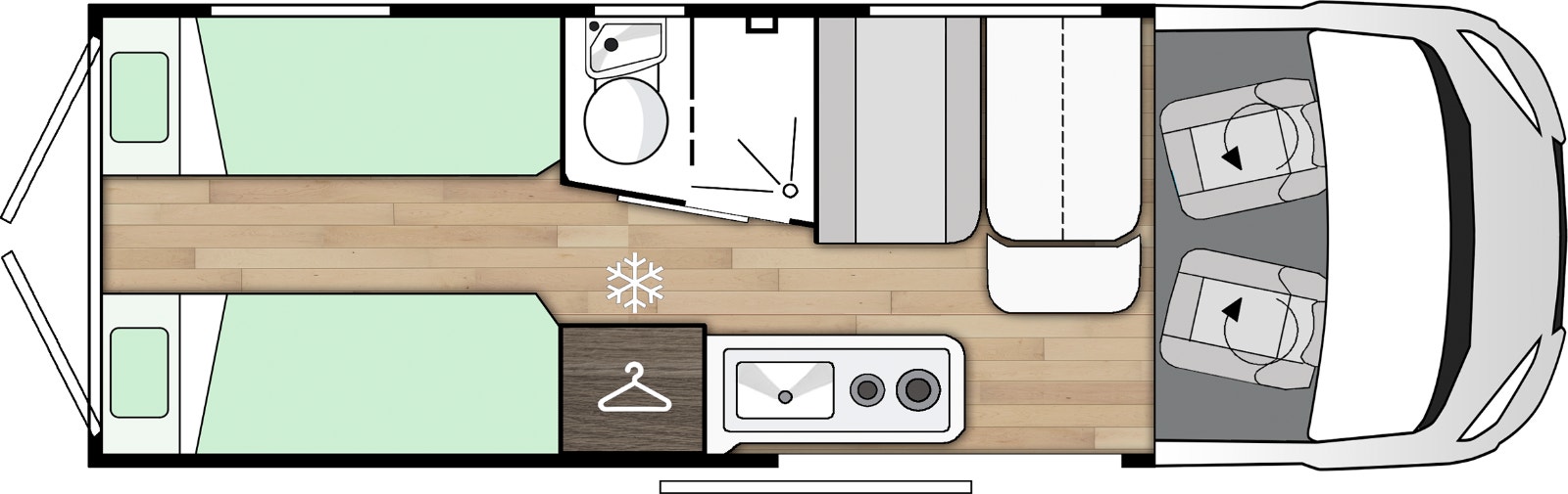 Denne modellen har den mest populære løsningen med 2 Enkeltsenger i bilens lengderetning noe som lar deg gå til og fra sengen uten å forstyrre personen som benytter sengen ved siden.