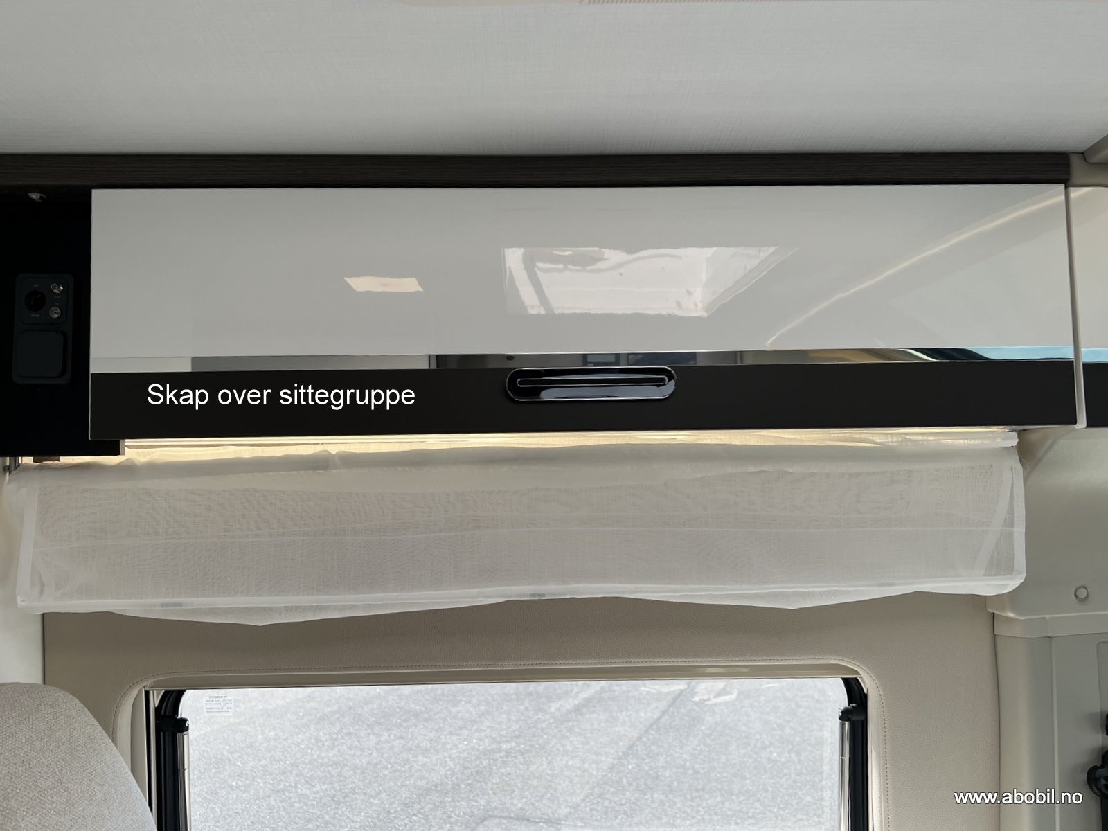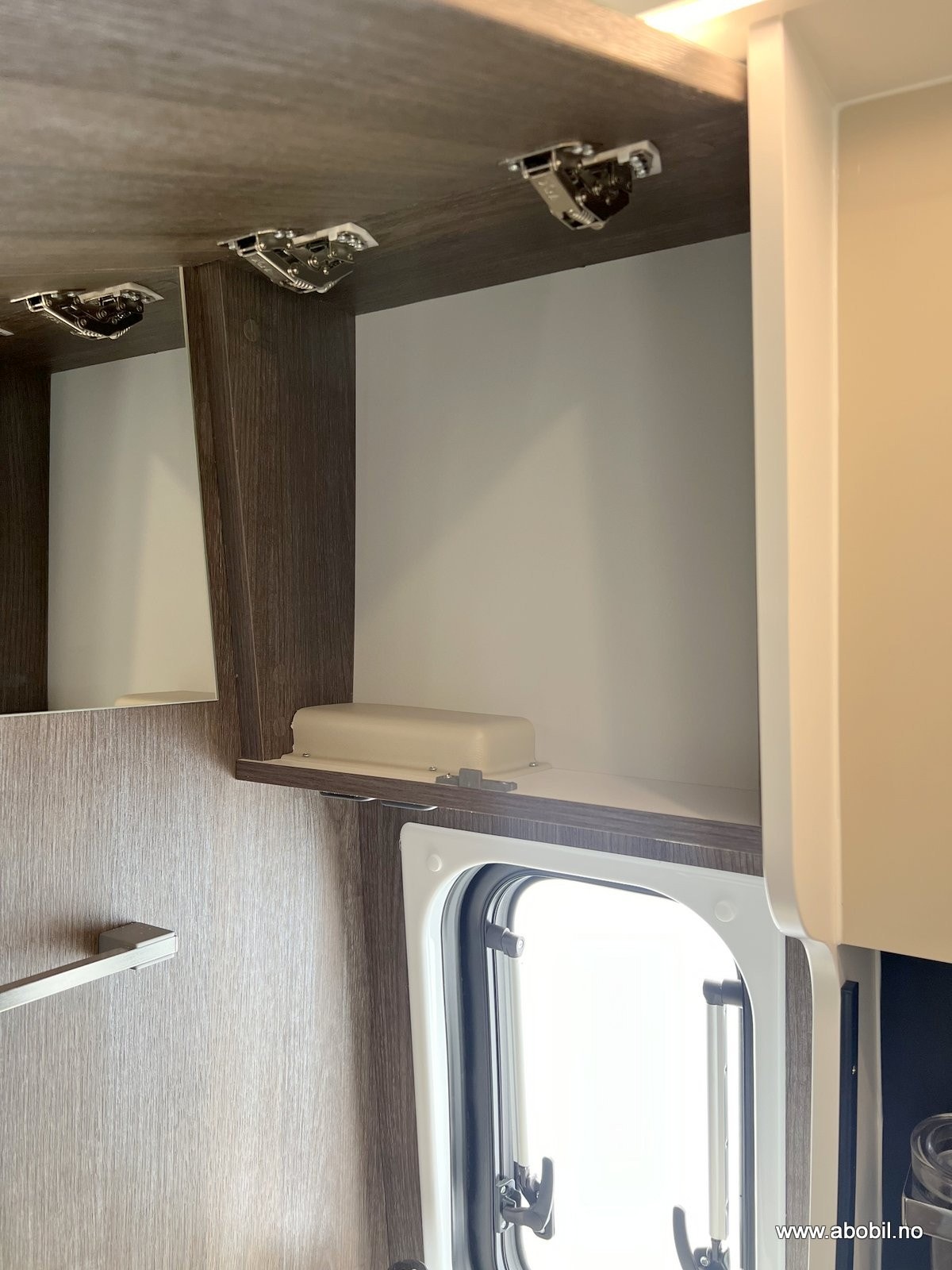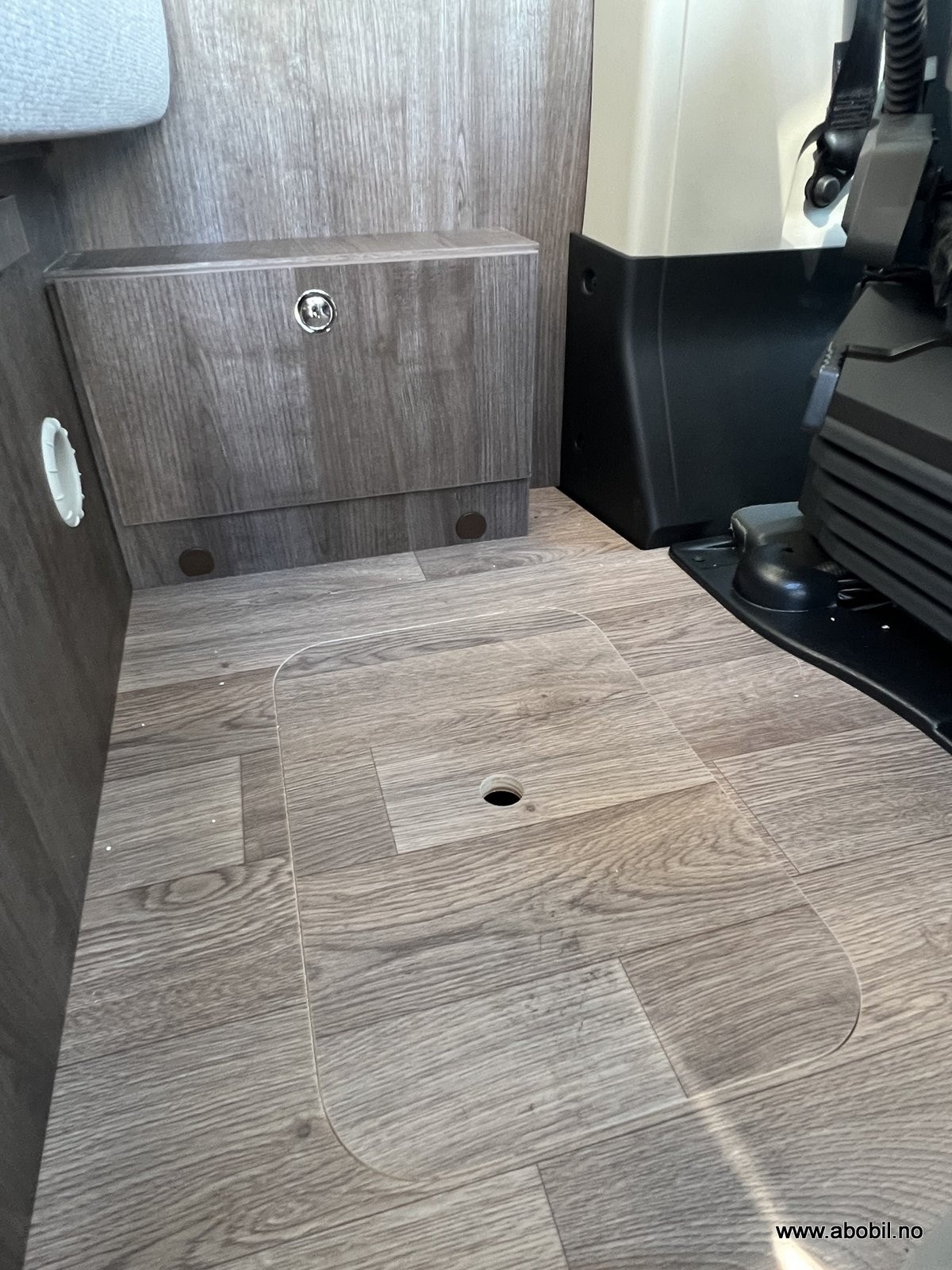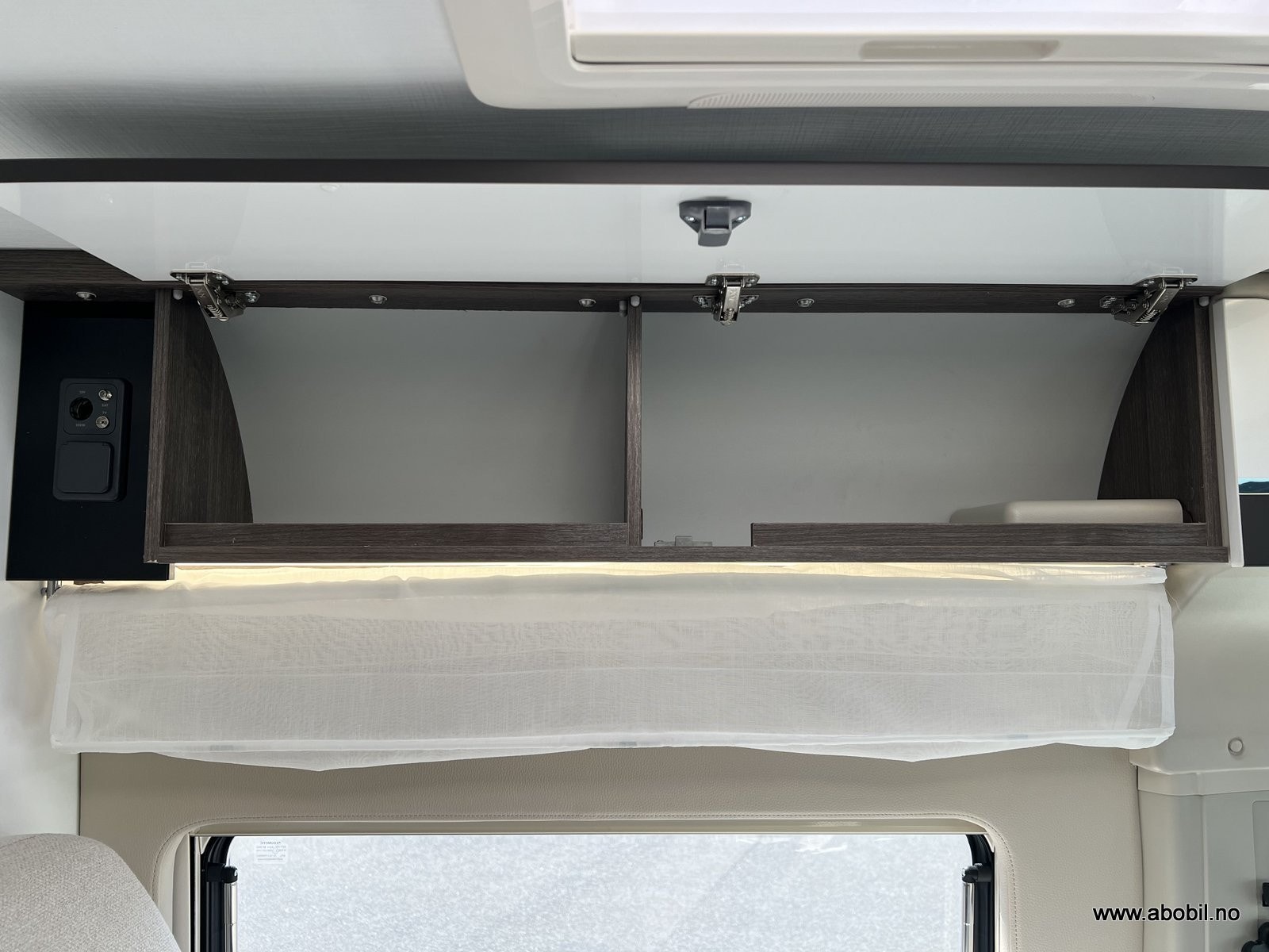 Førerdelen har også ryggekamera, skinnratt, Gardiner til formørkning, Regulerbare pilotstoler med armlene, varme i speil og regulerbart ratt. Denne bobilen oppleves nærmest som en flott personbil både i kjøreegenskaper og størrelse. Nydelig dagslys gjennom soltaket får du også!