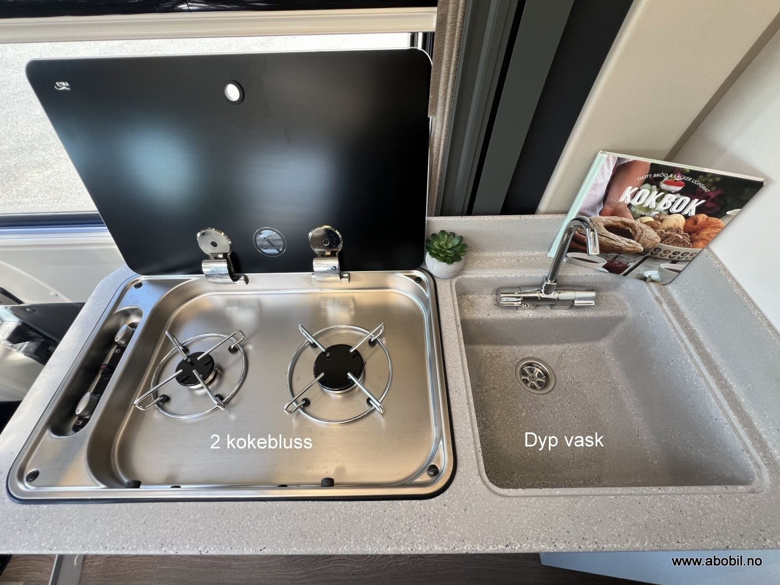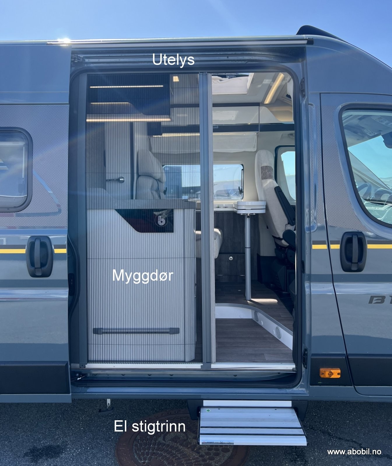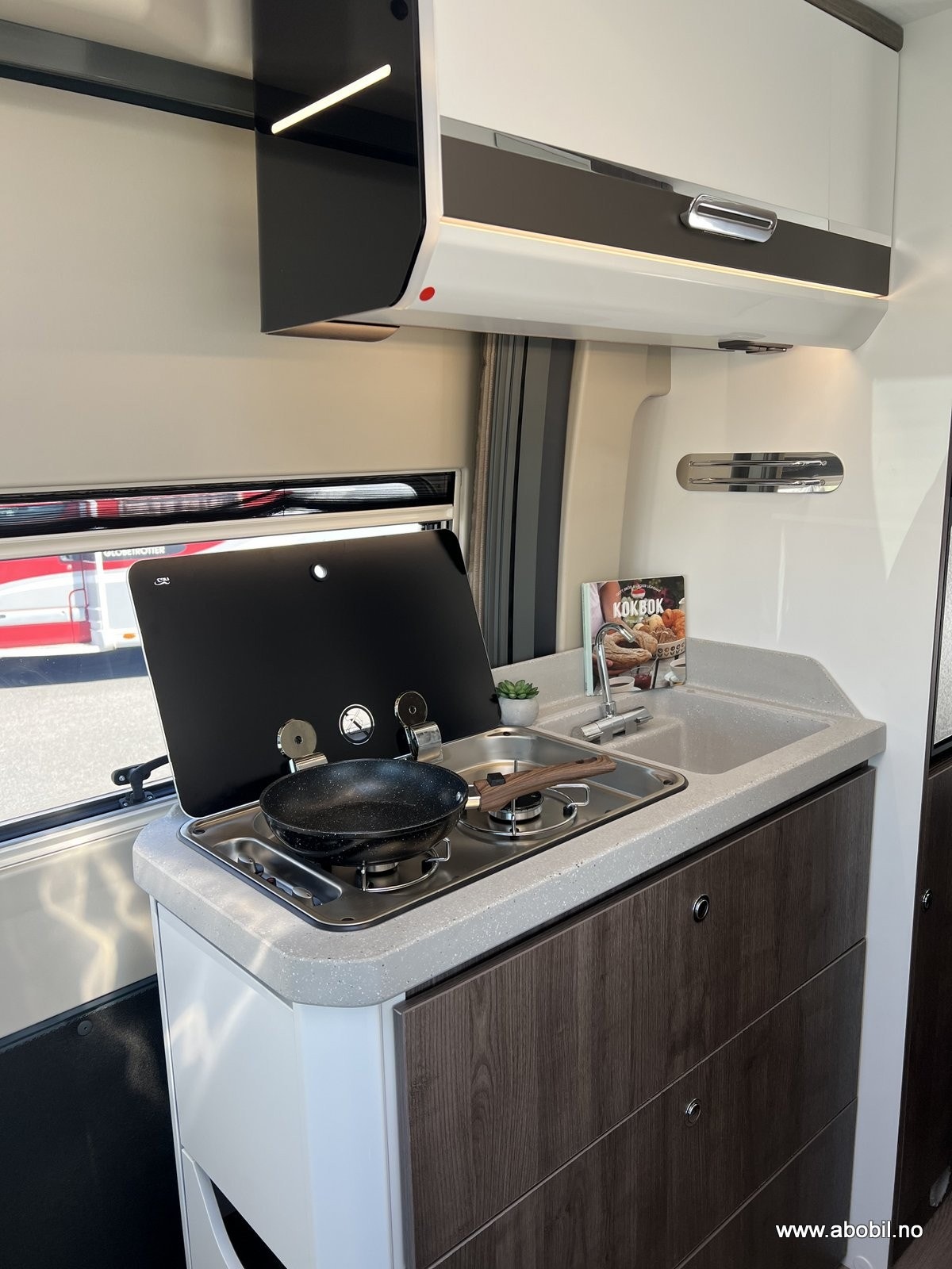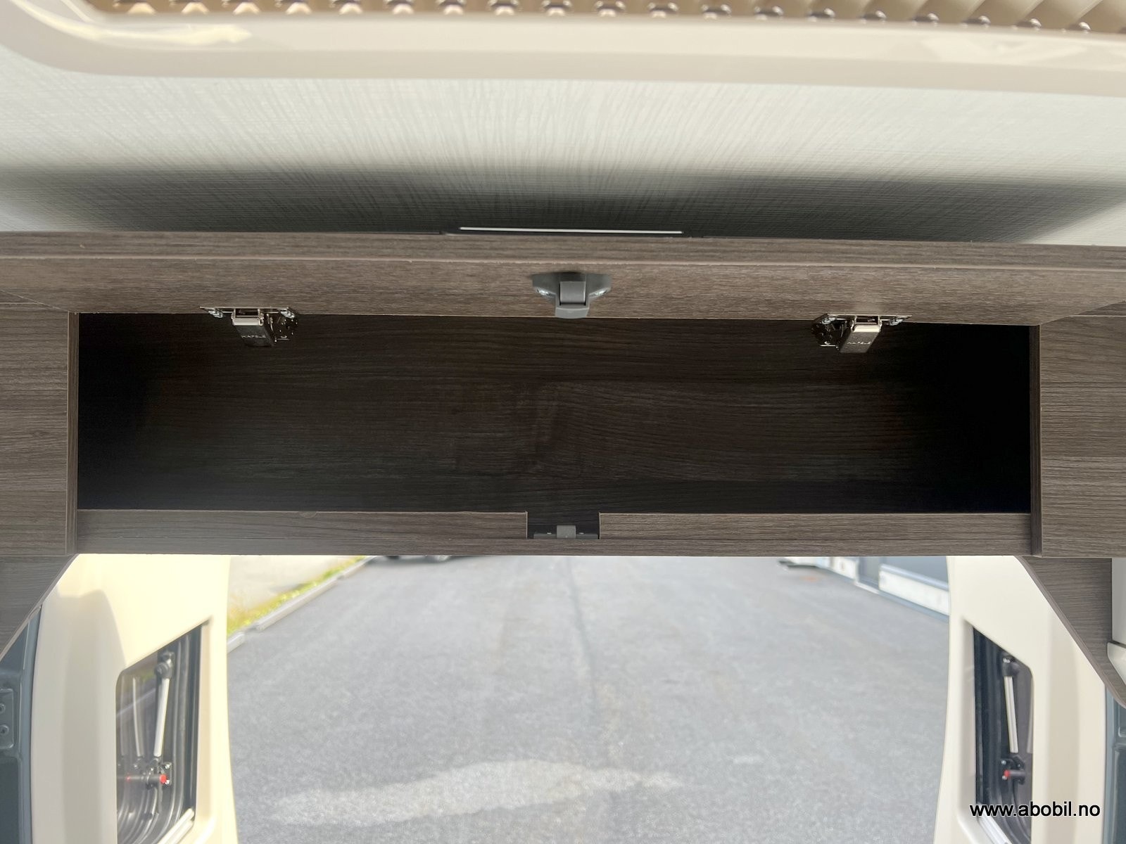 Førerdelen har også ryggekamera, skinnratt, Gardiner til formørkning, Regulerbare pilotstoler med armlene, varme i speil og regulerbart ratt. Denne bobilen oppleves nærmest som en flott personbil både i kjøreegenskaper og størrelse. Nydelig dagslys gjennom soltaket får du også!