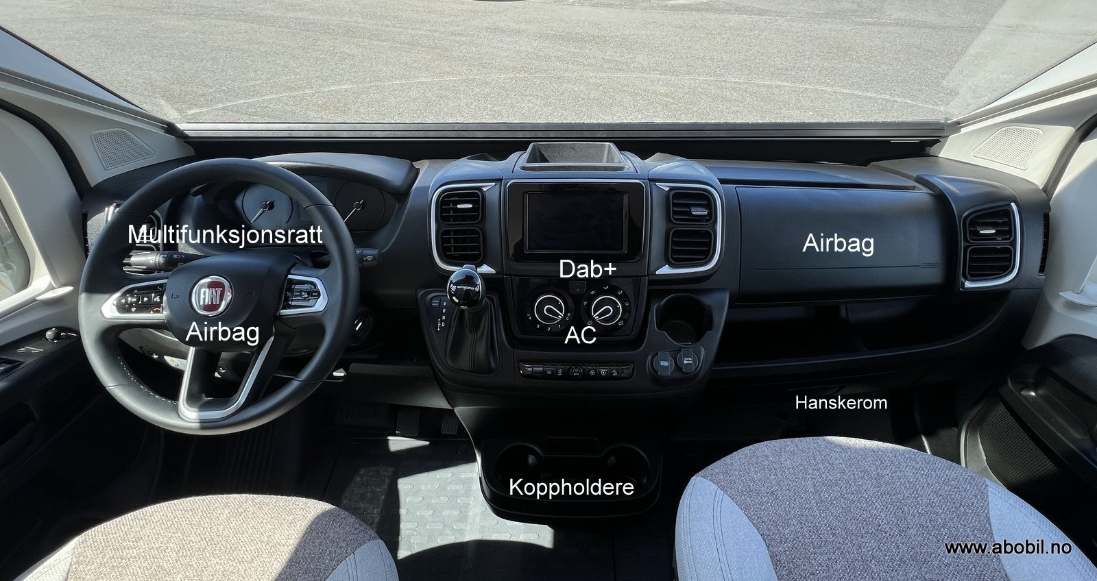 I førerdel har man Aircondition, koppholdere, USB, DAB radio med stor skjerm.