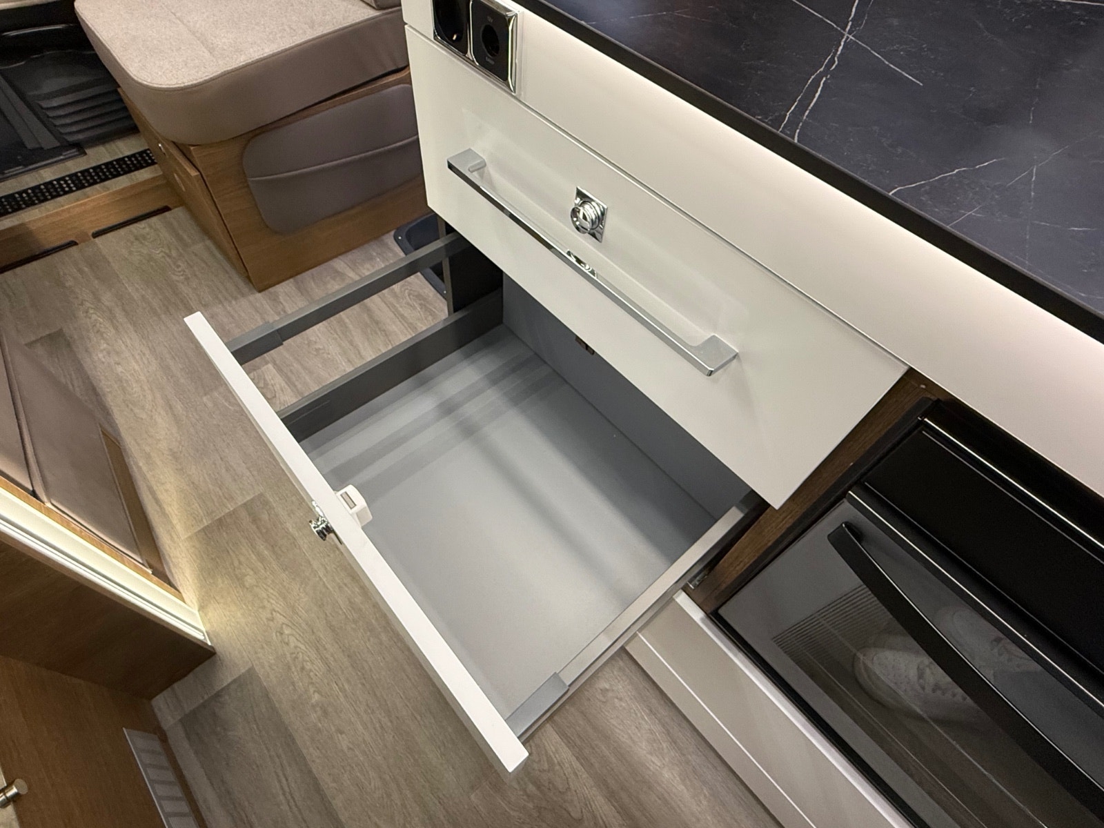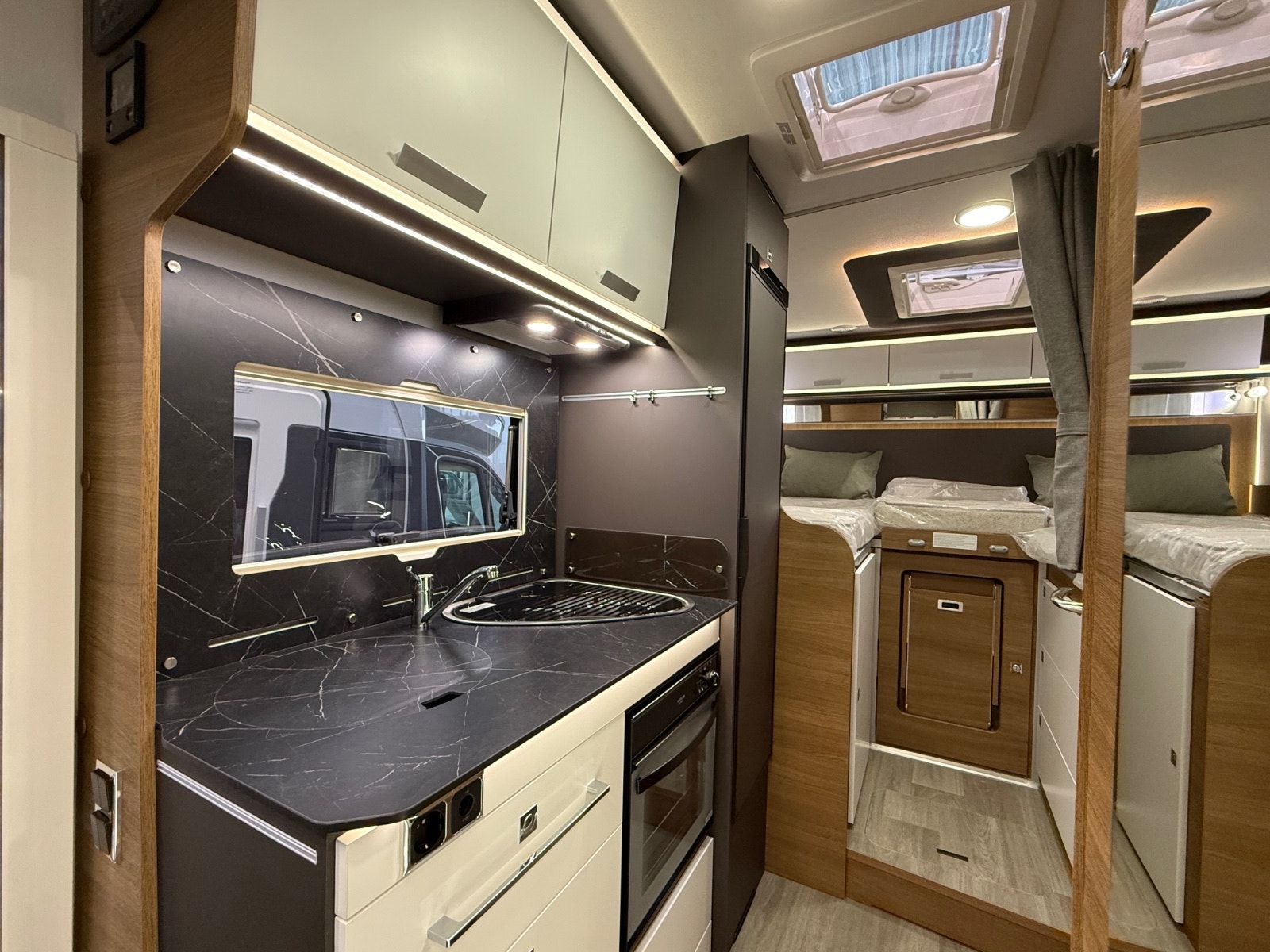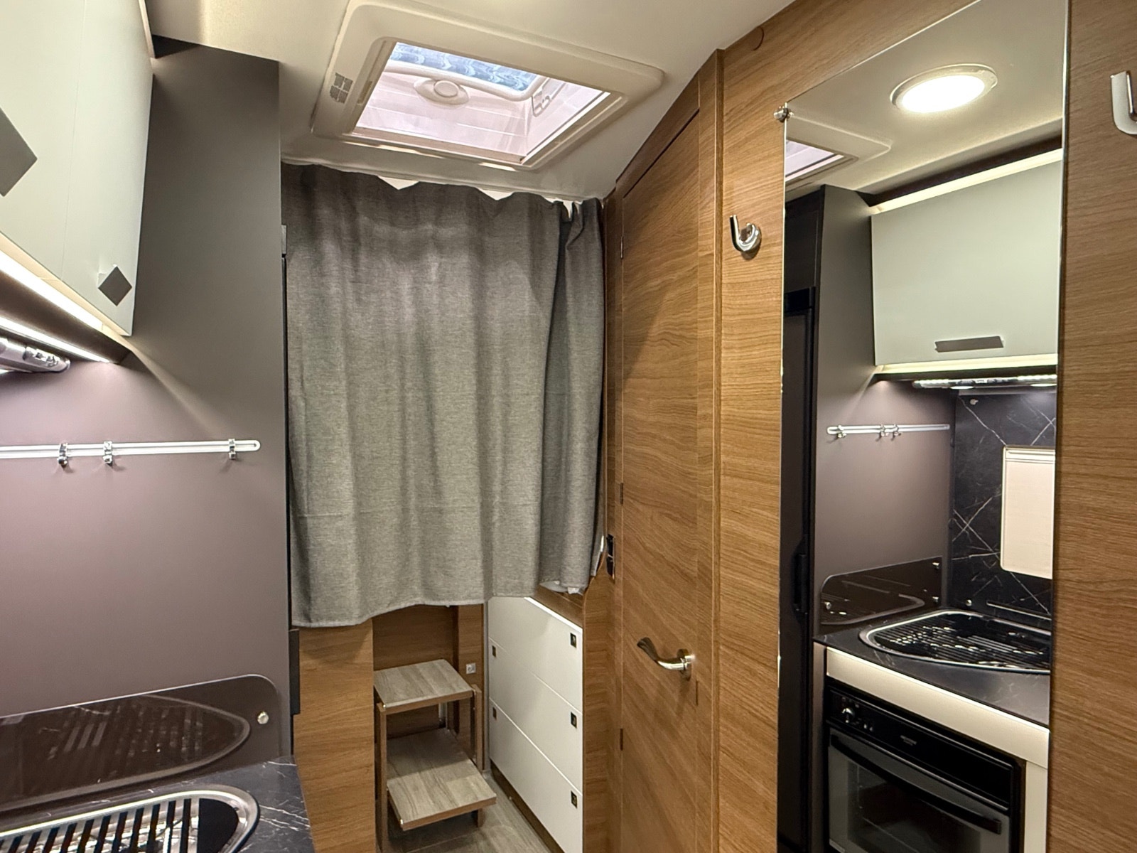 Denne bobilen er ikke bare praktisk, den har også et nydelig design og svært godt utstyrt med bla Litium batteri 180a og oppgradert varmesystem ALDE sentralvarme og gulvvarme!