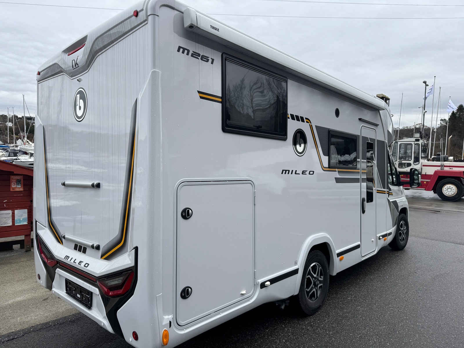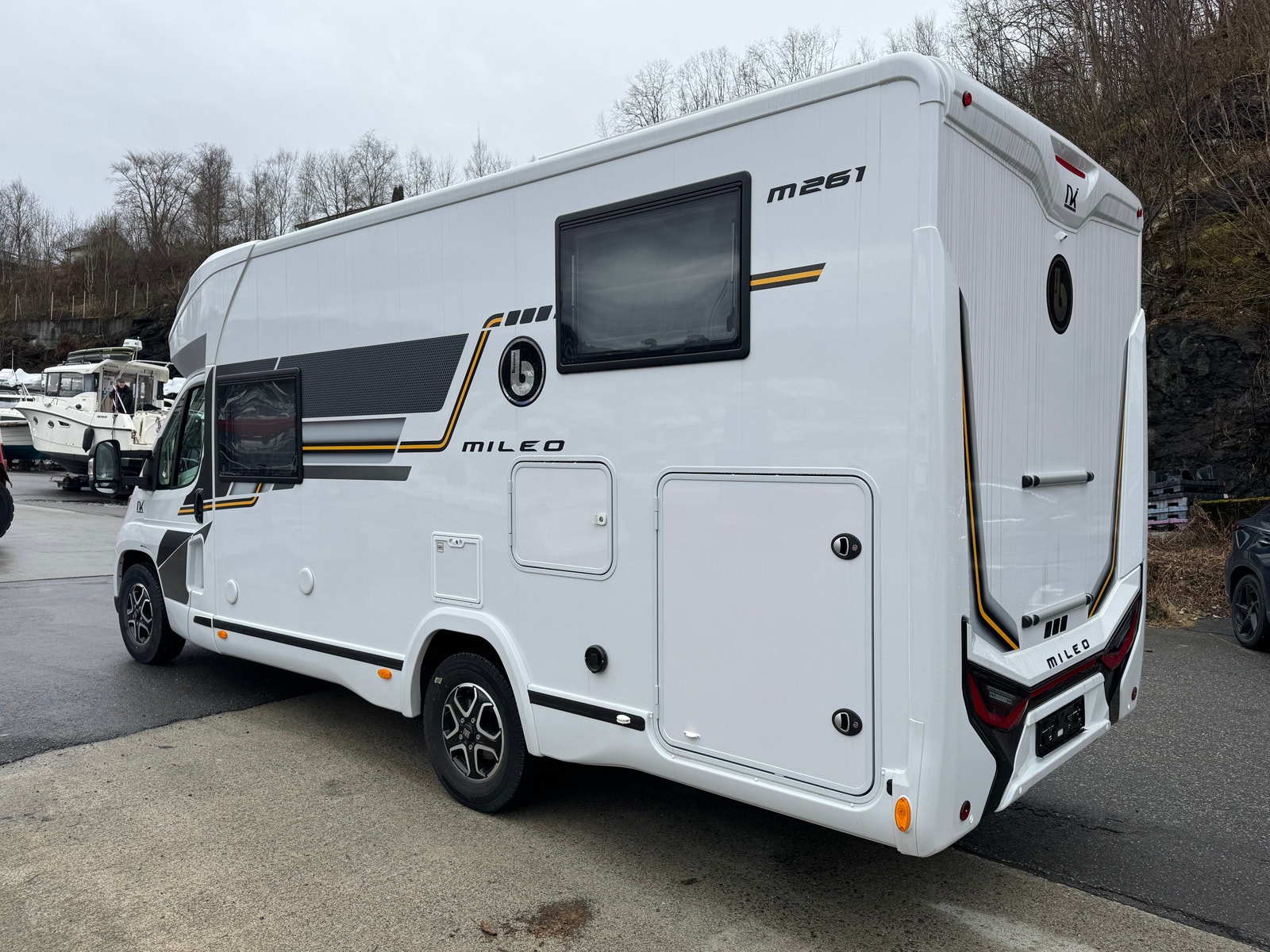 Nyheten med Mileo 261, 2026 modell er at den nå leveres med ALDE-vannbåren varme. En meget komfortabel bobil å bo i hele året.