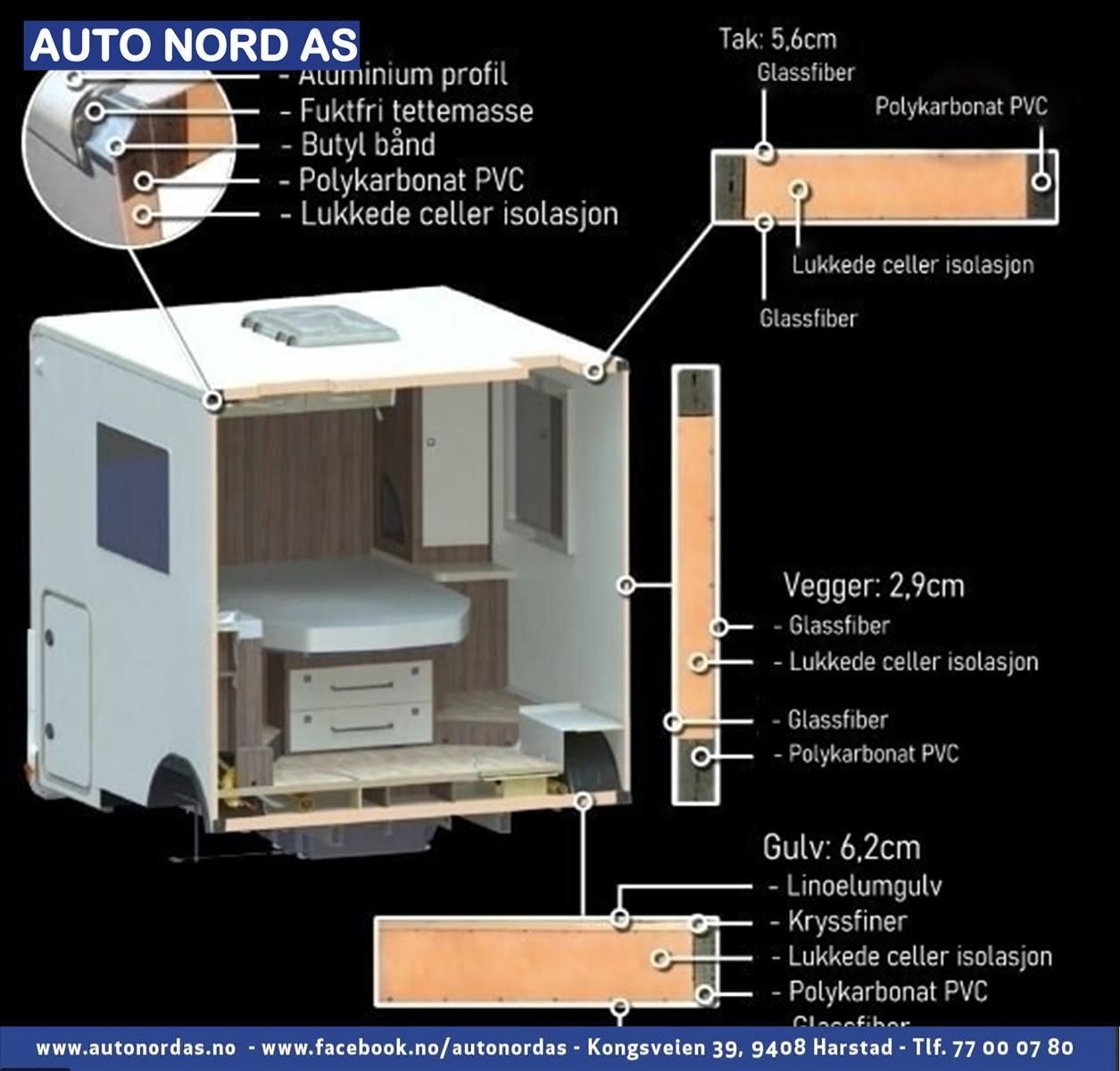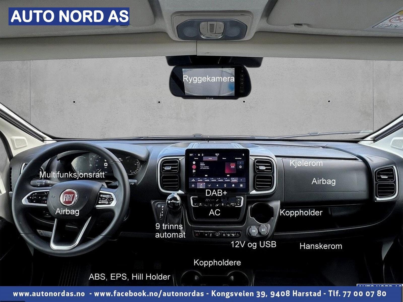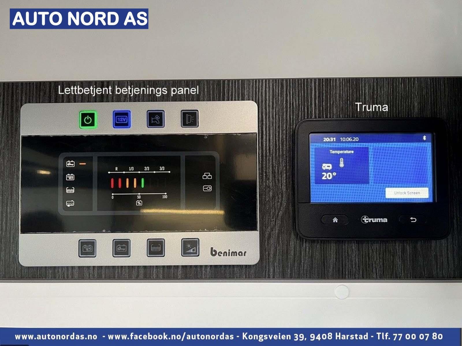 Solcellepanel Aircondition bildel 9 trinns automatgir 180hk, 16 alu-felger, Ryggekamera Komplett trefri konstruksjon Dab+ radioanlegg Største varmeanlegg Optimalt plassert varmesystem Markise og utelys.