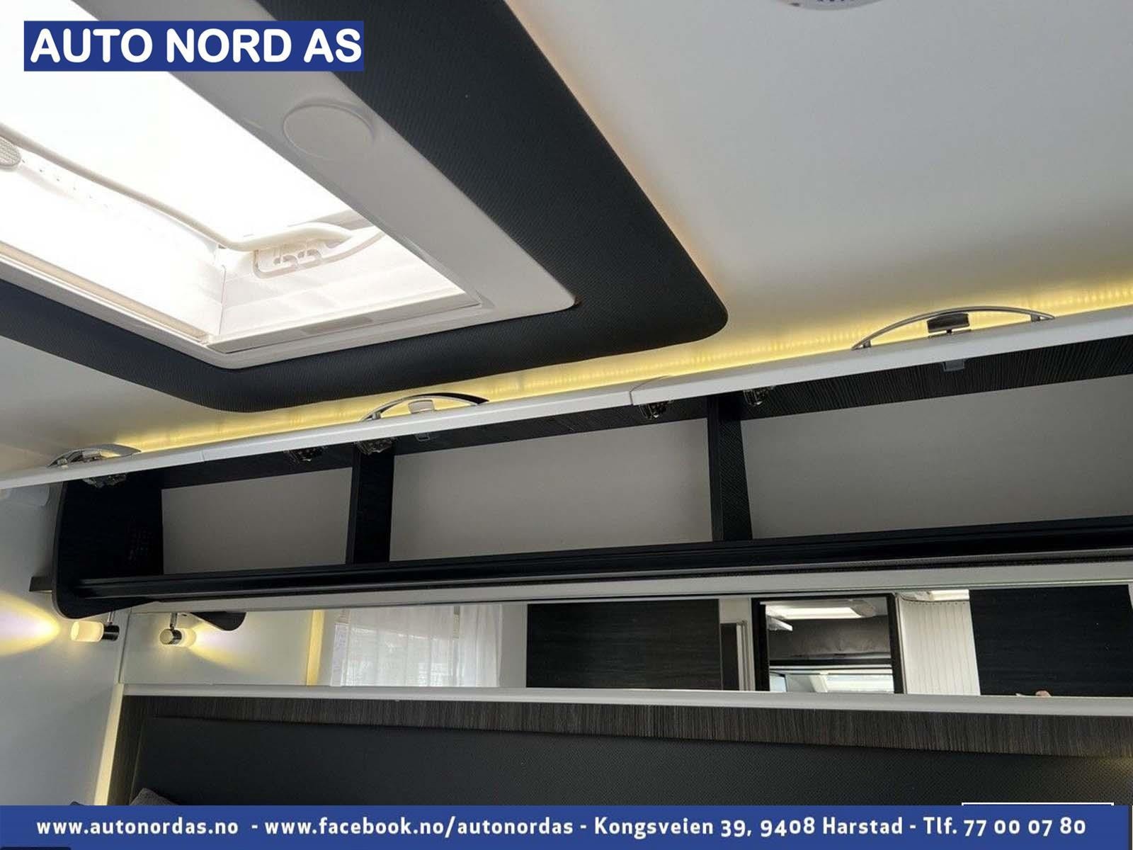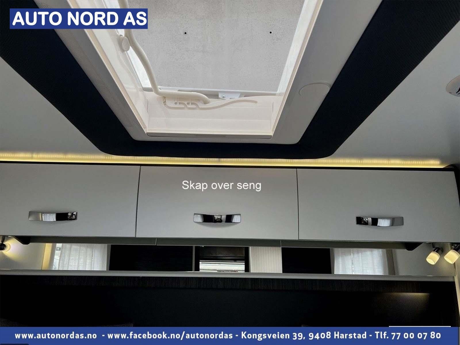 Alt belysning i bodelen er i energibesparende moderne LED løsning. Ellers i salongen/førerdel finner man store vinduer samt stort panorama takluke. Denne kan enkelt åpnes. Alle vinduer og takluker har selvsagt myggnetting og formørknings plissé/Rollo gardiner.