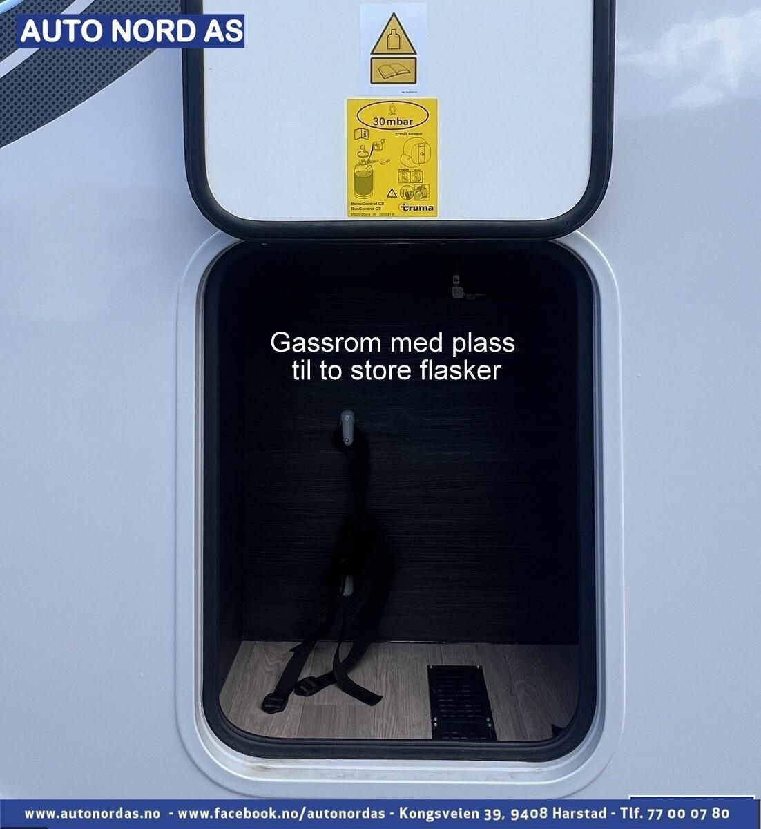 • Gassrom med plass til 2 store flasker