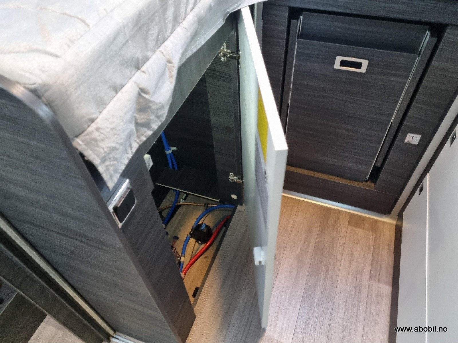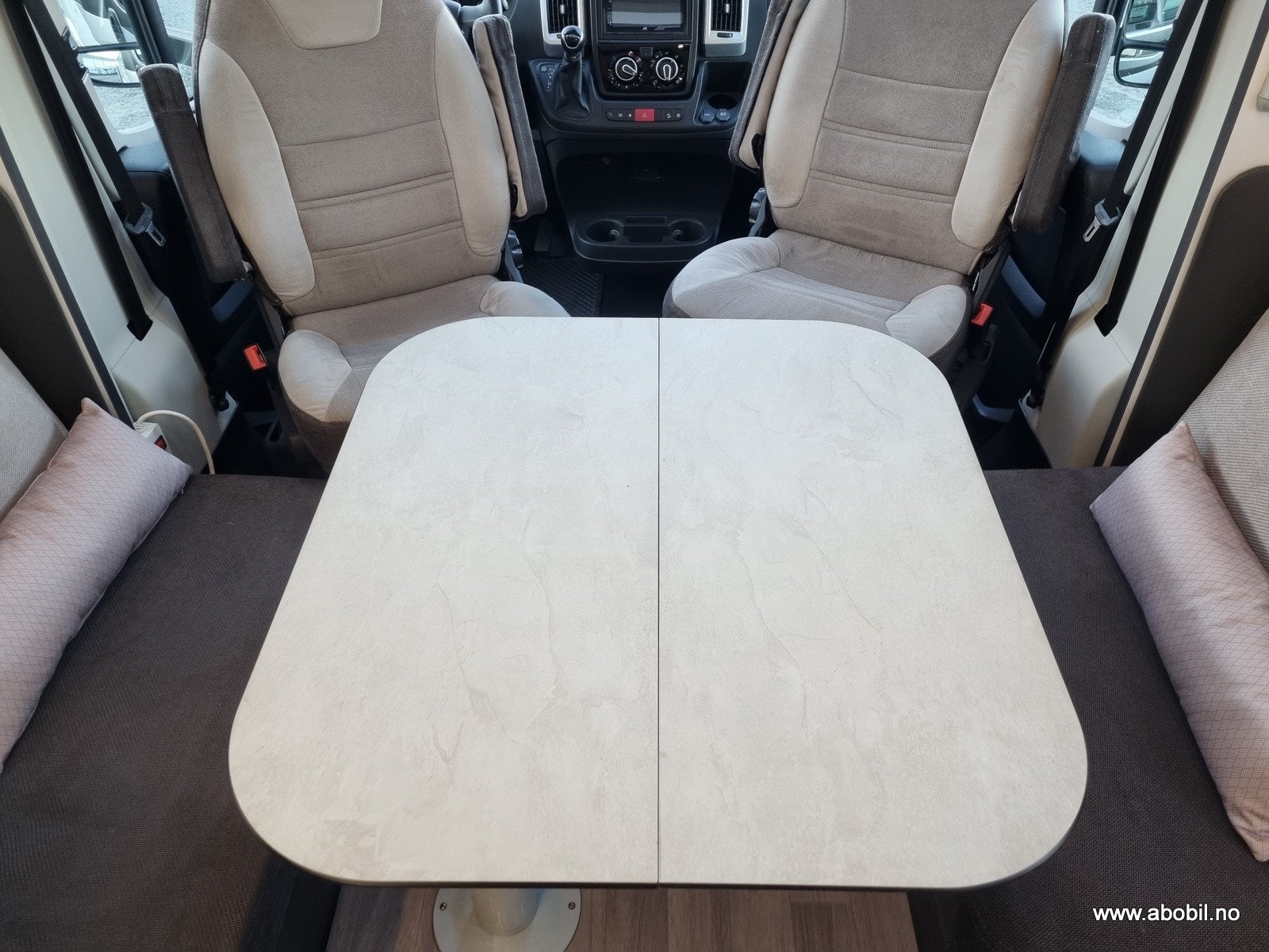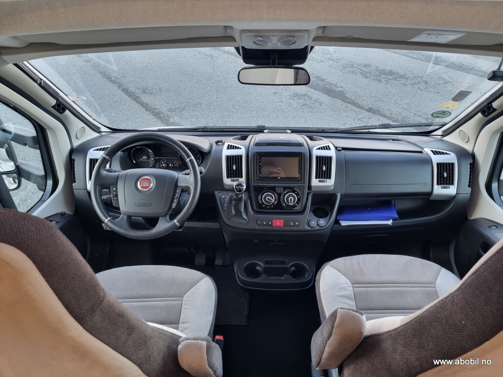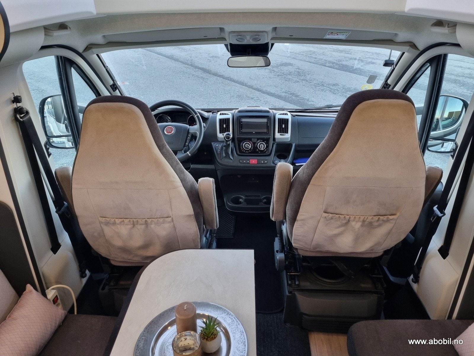 I førerdel finner du Aircondition, DAB-radio, ryggekamera, elektriske vinduer og speil, koppholdere, og en oversiktlig 9-trinns automatgirkasse koblet til en sprek Fiat 160HK motor. Stort panorama glasstak gir rikelig med naturlig lys. Rollo/formørkning i førerdel og Seitz rammevinduer sørger for komfort og skjerming.
