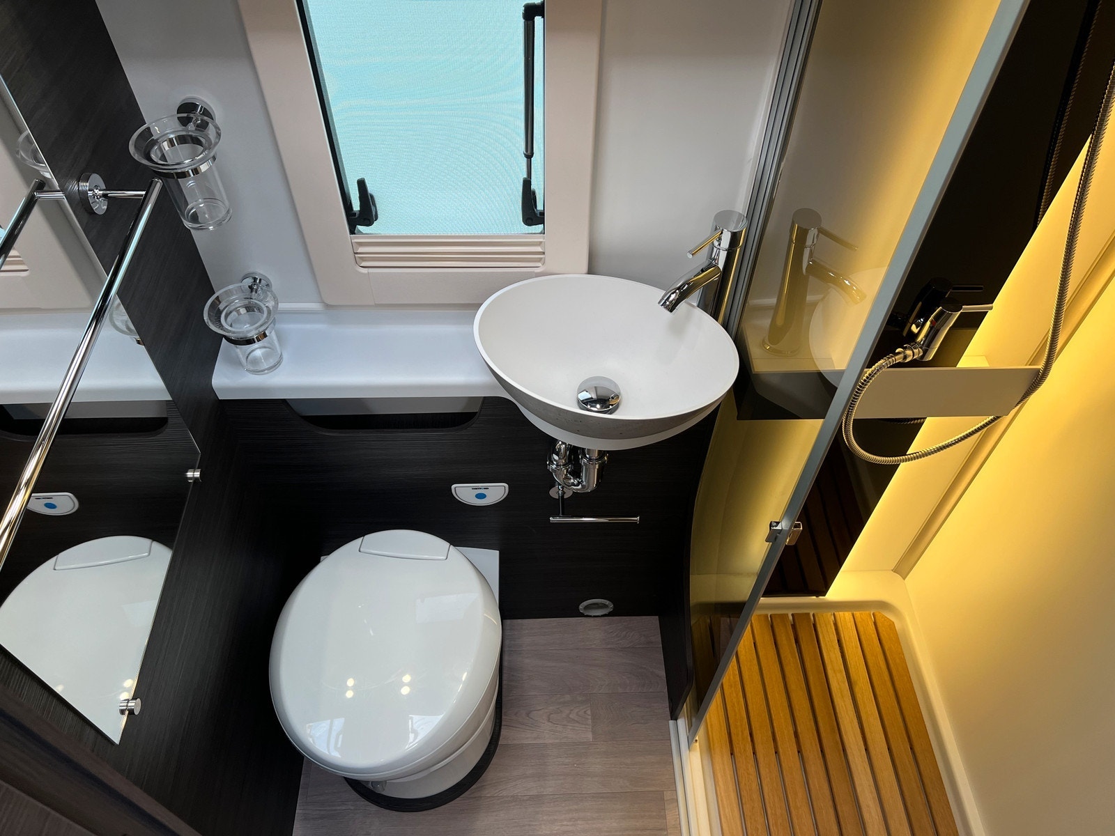 Baderom med takluke Separat dusj med dør