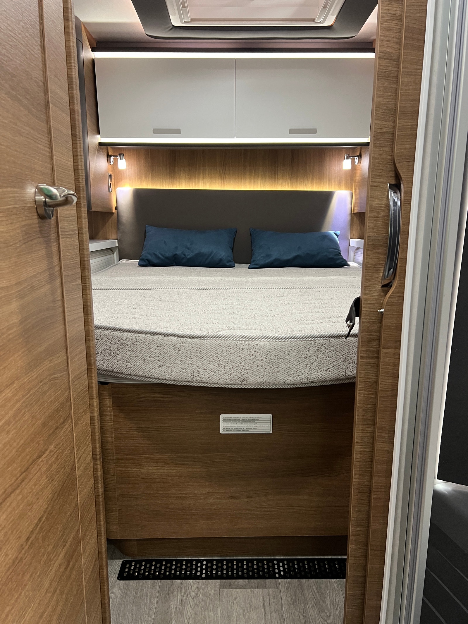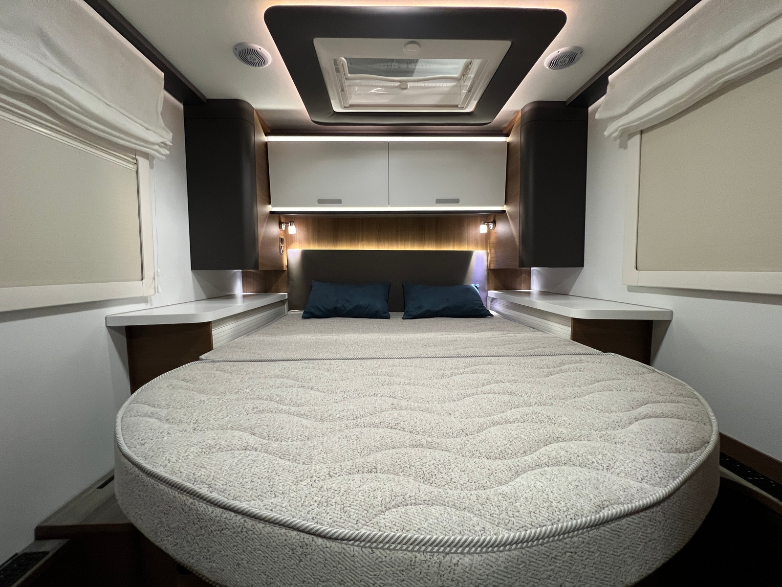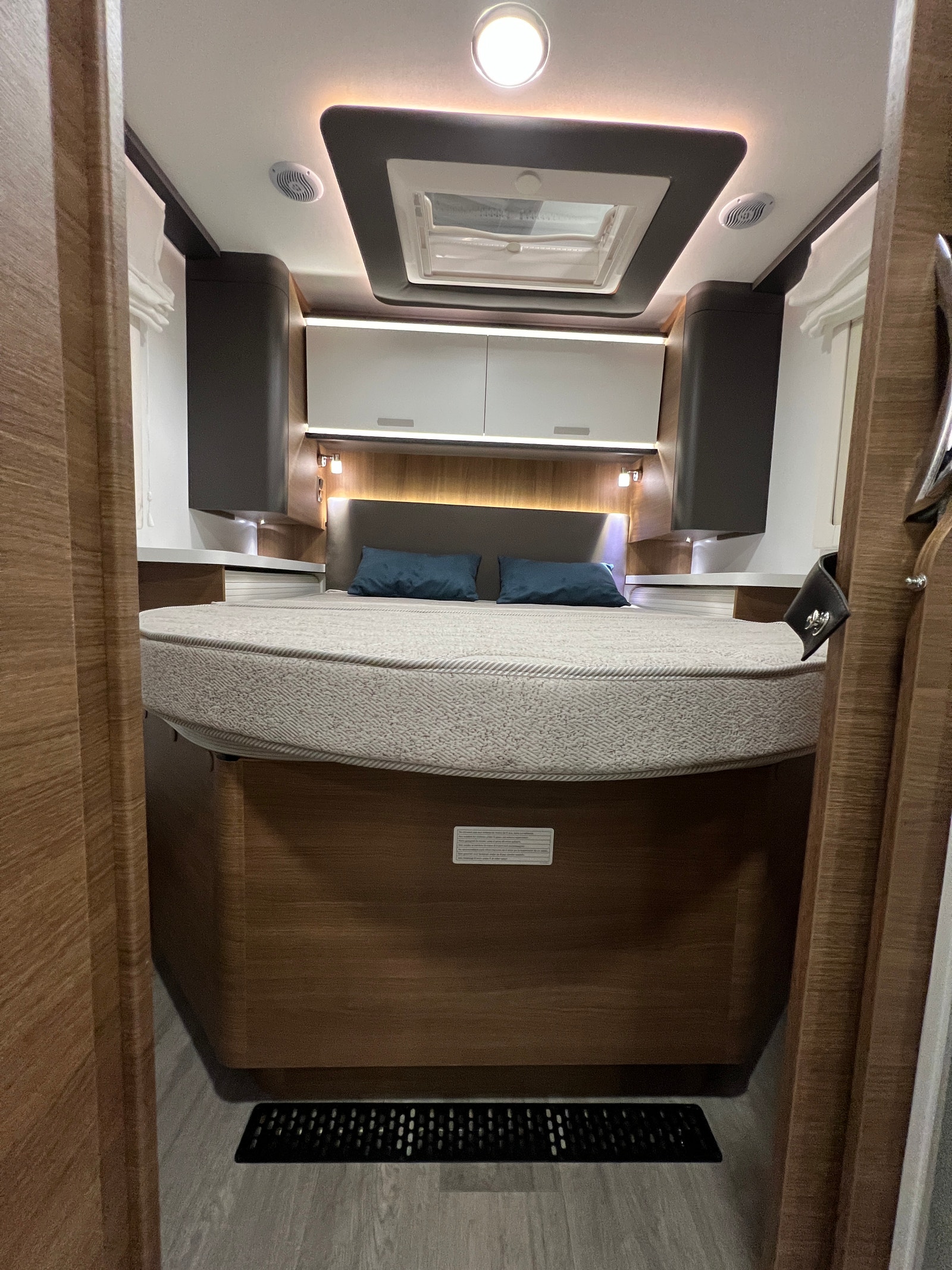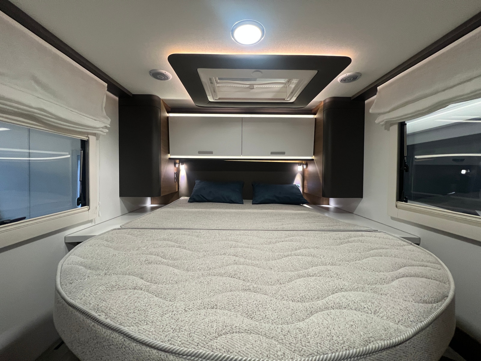 Bakerst i bilen har du en stor queenbed, det er også separert toalett og dusj med eget dusjkabinett. 🙂