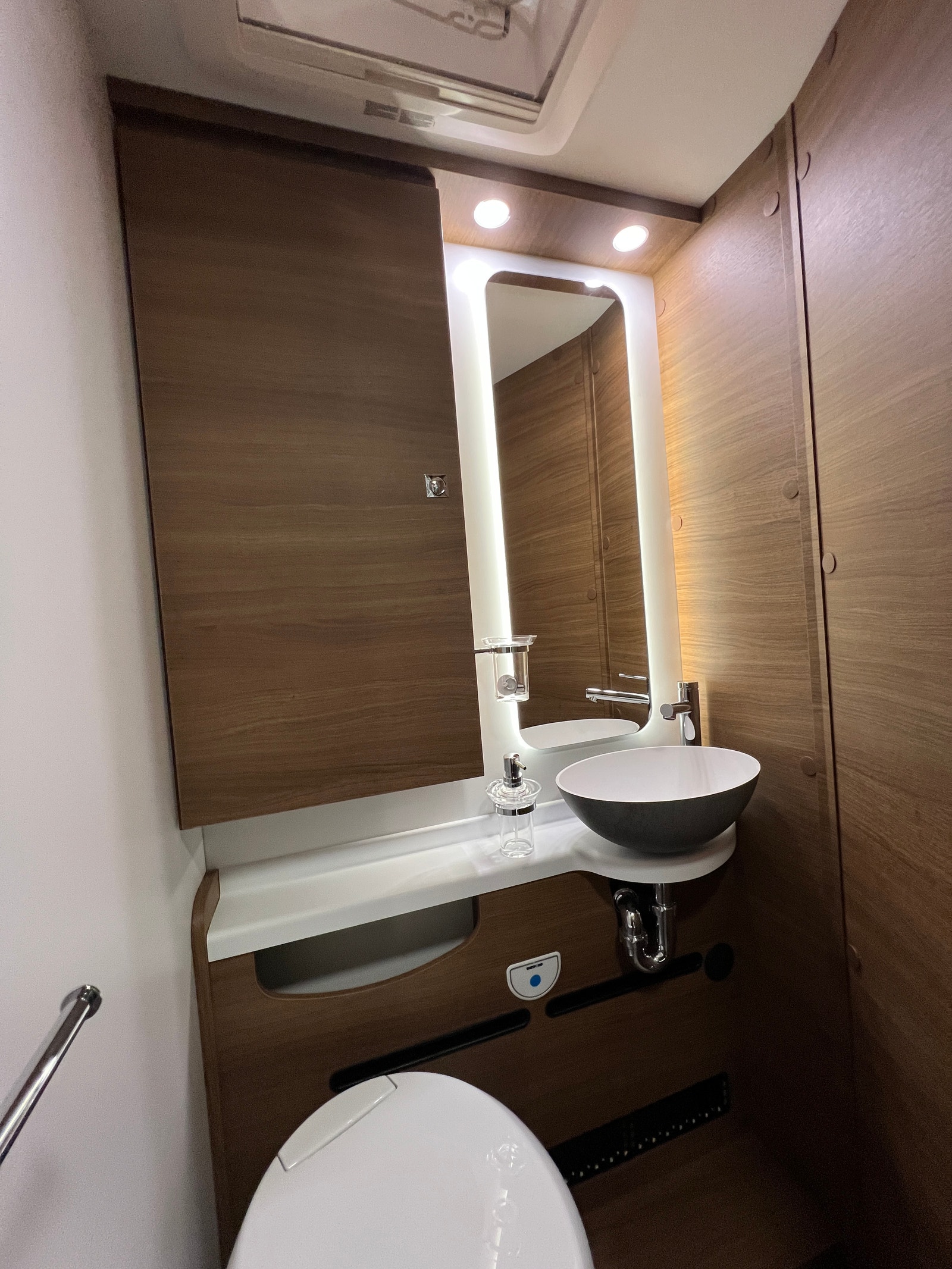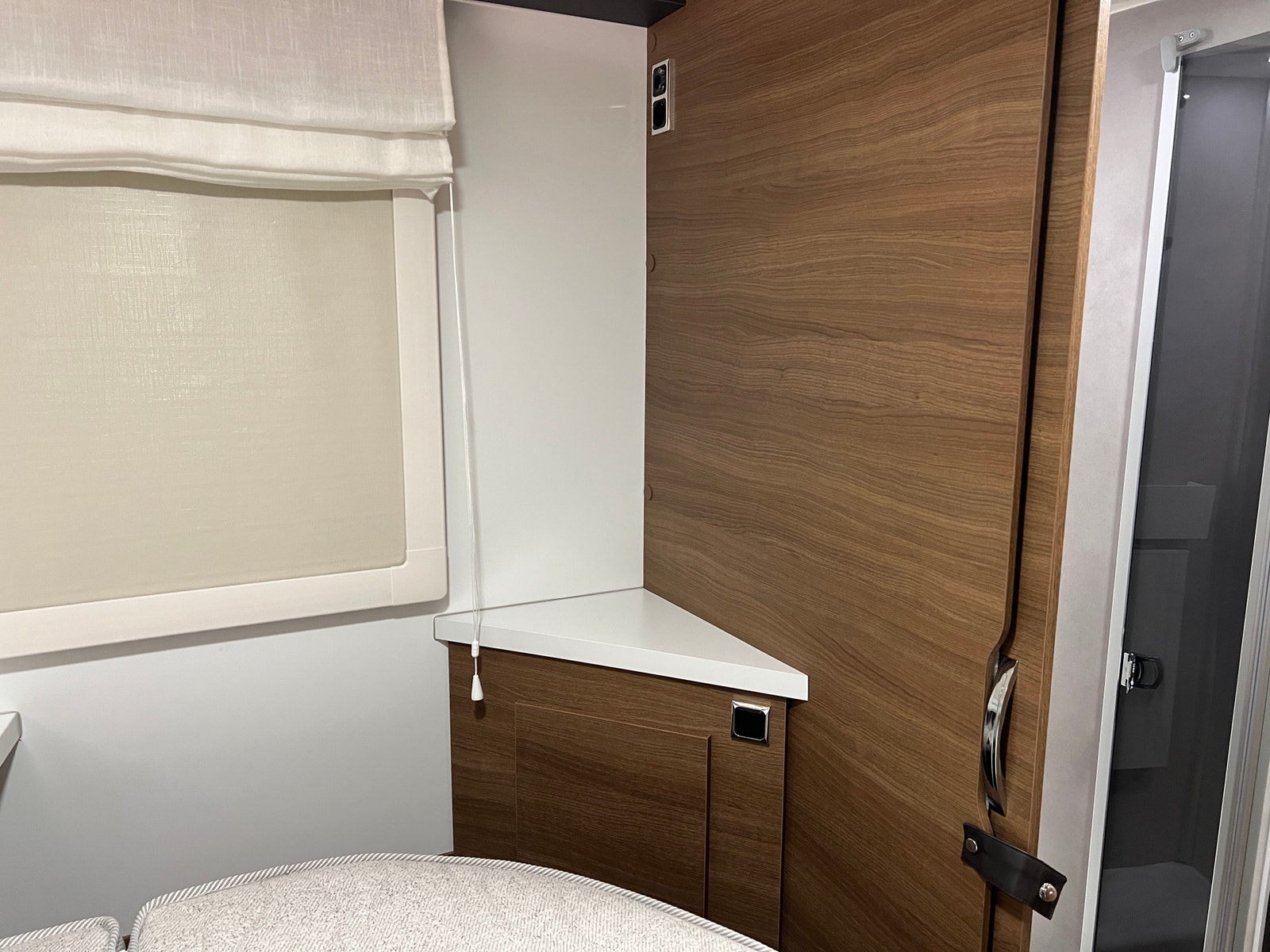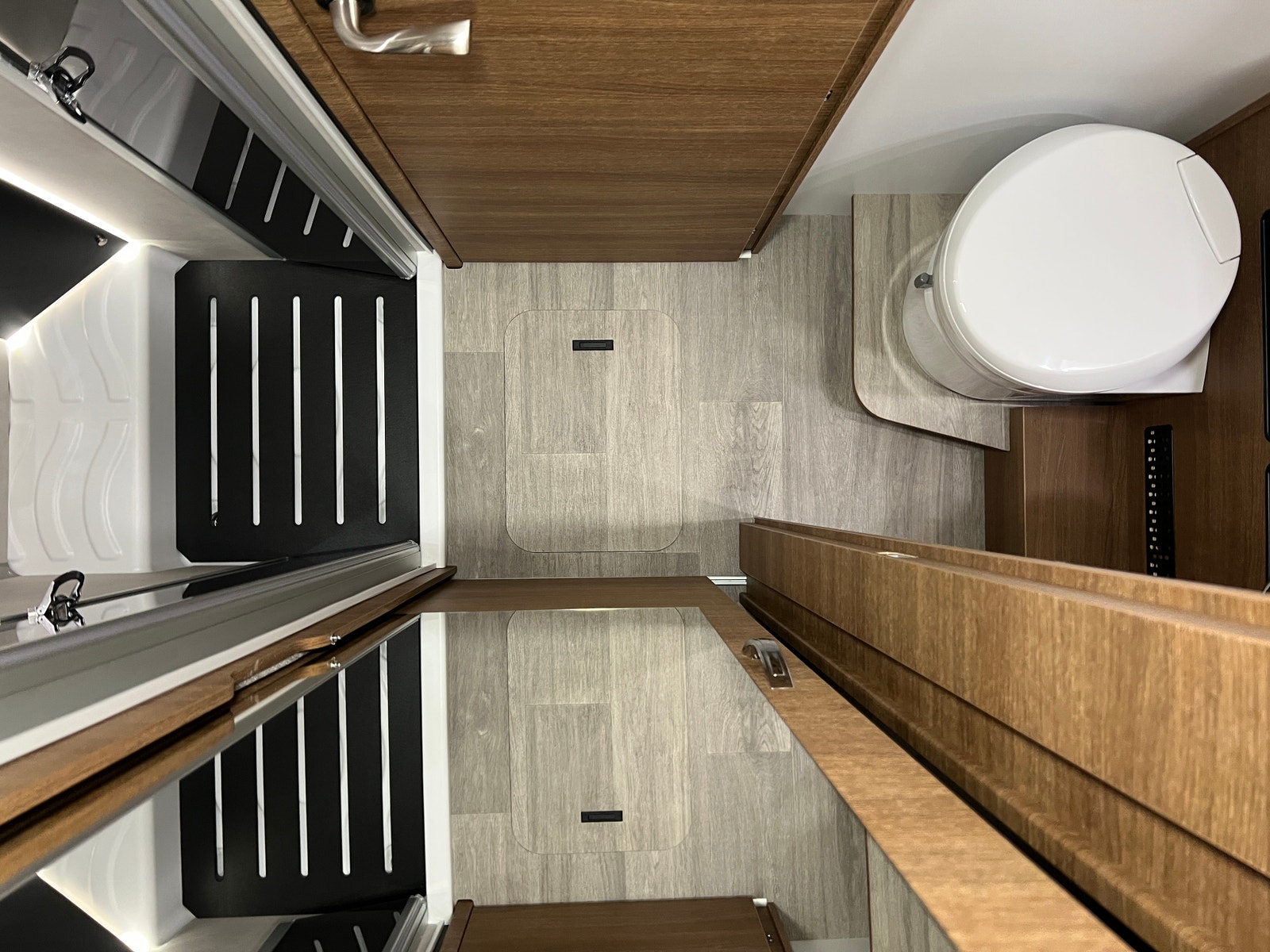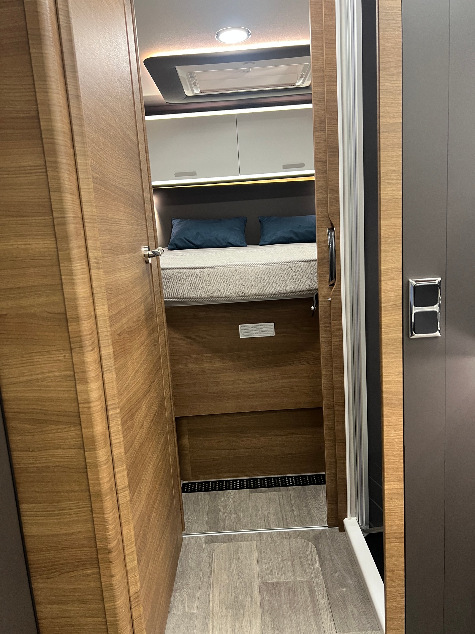 Bakerst i bilen har du en stor queenbed, det er også separert toalett og dusj med eget dusjkabinett. 🙂