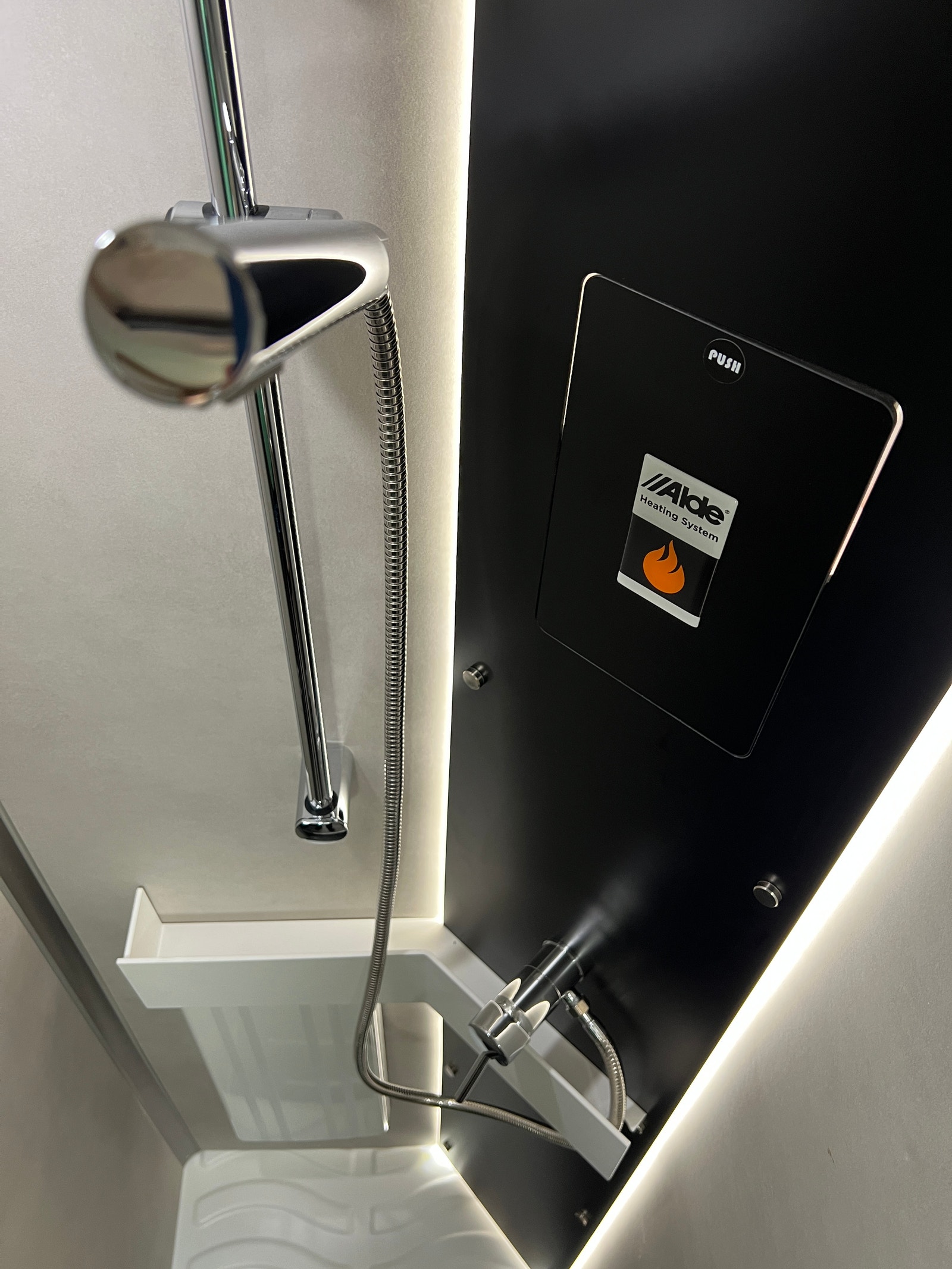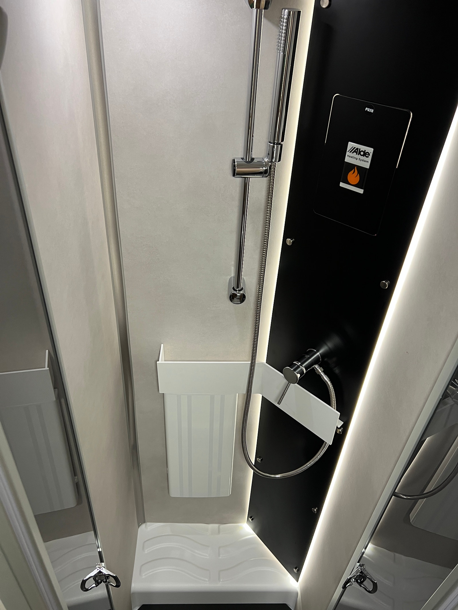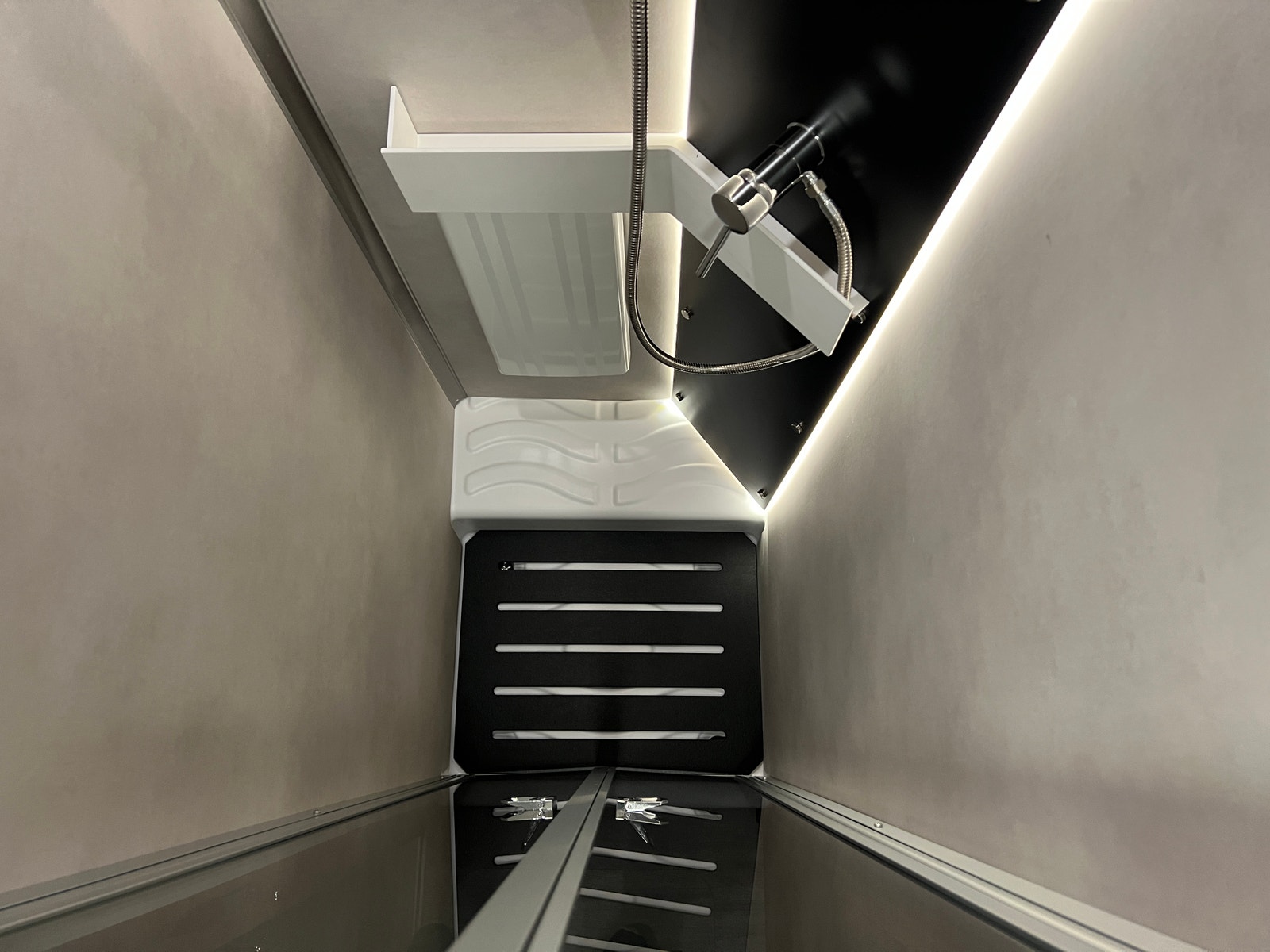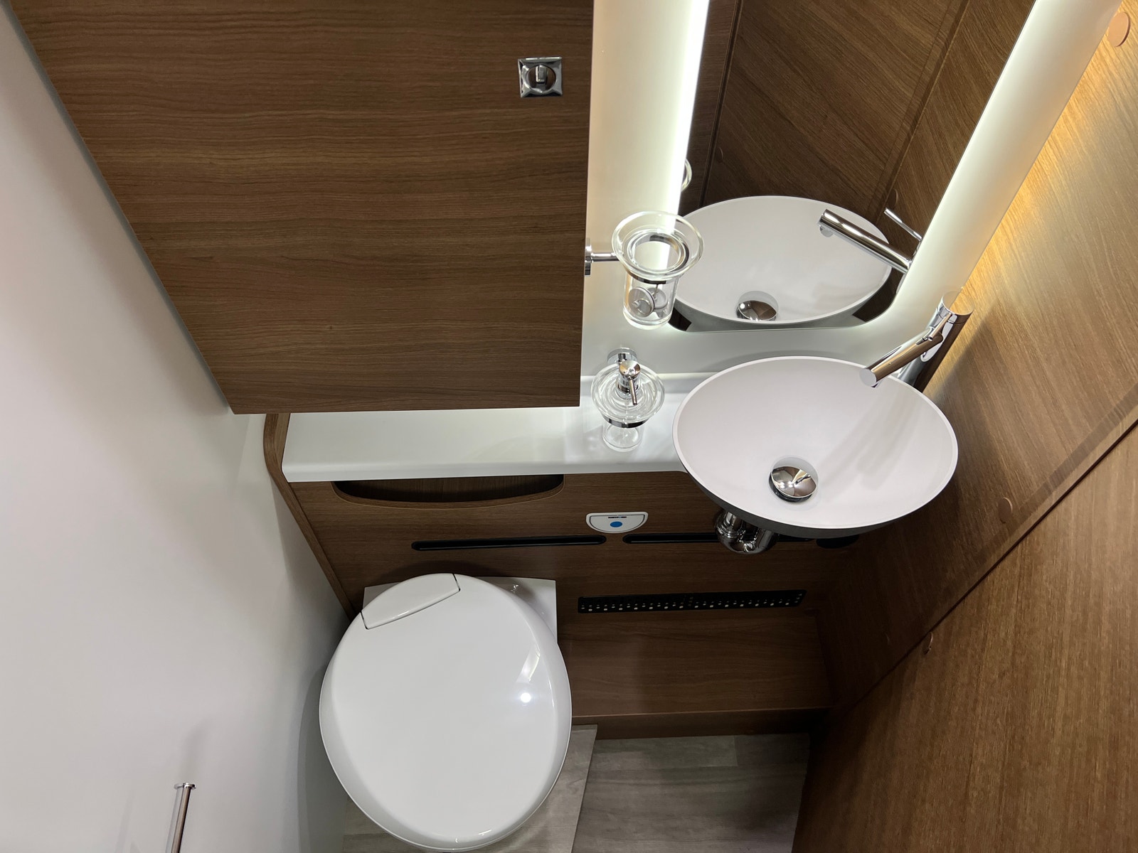 Bakerst i bilen har du en stor queenbed, det er også separert toalett og dusj med eget dusjkabinett. 🙂