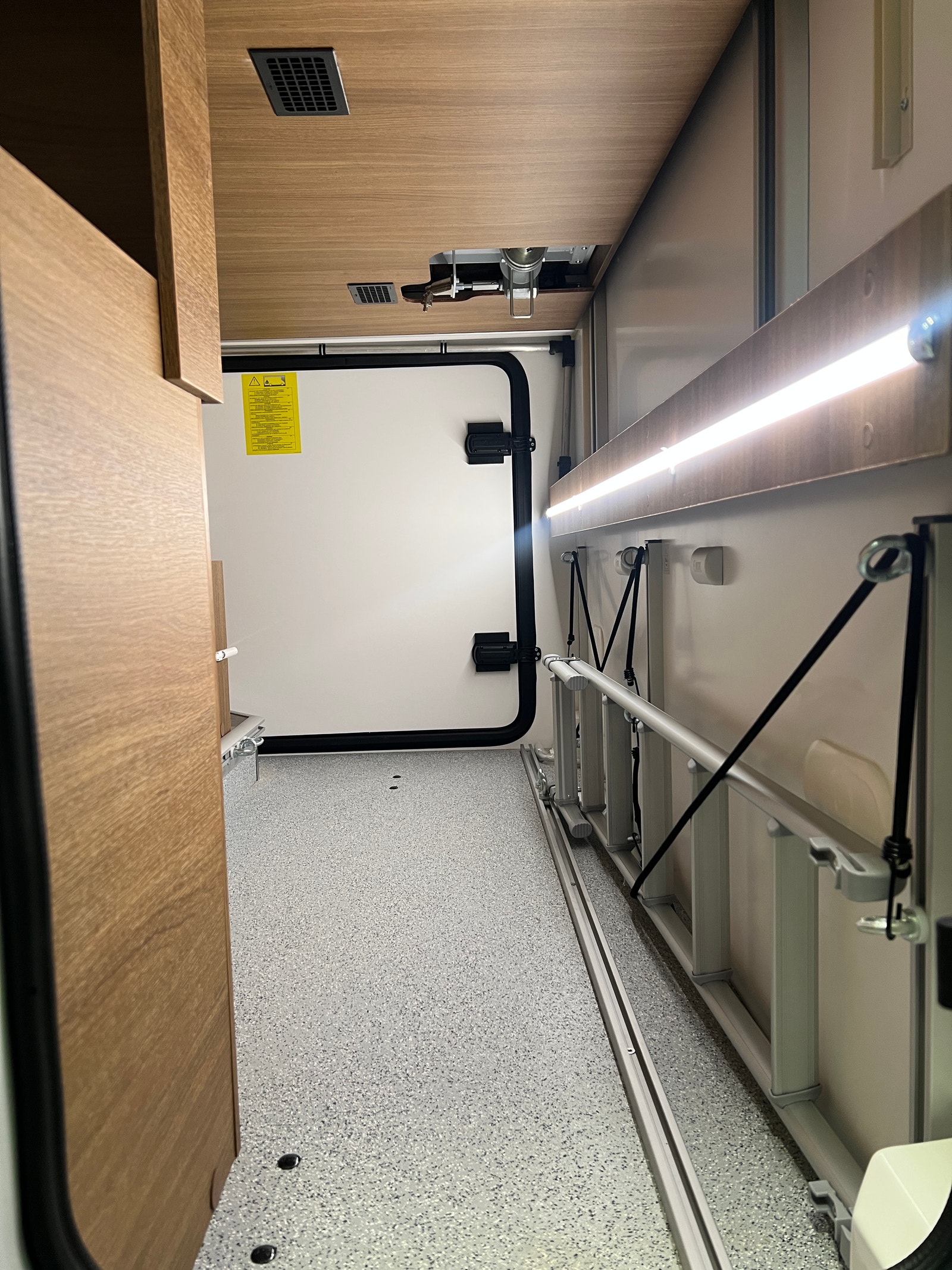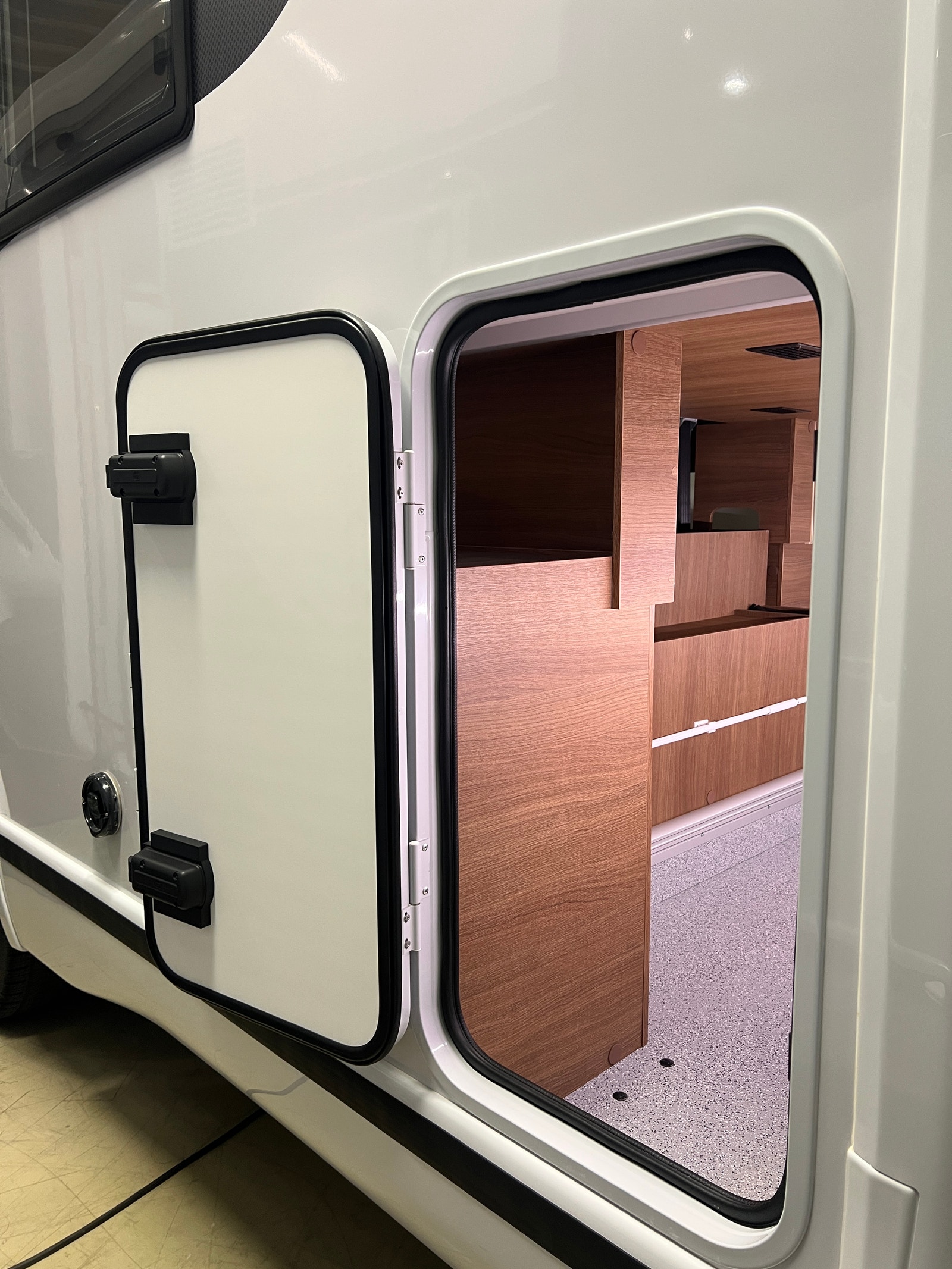 Bobilen har også en meget romslig garasje med luker på begge sider.