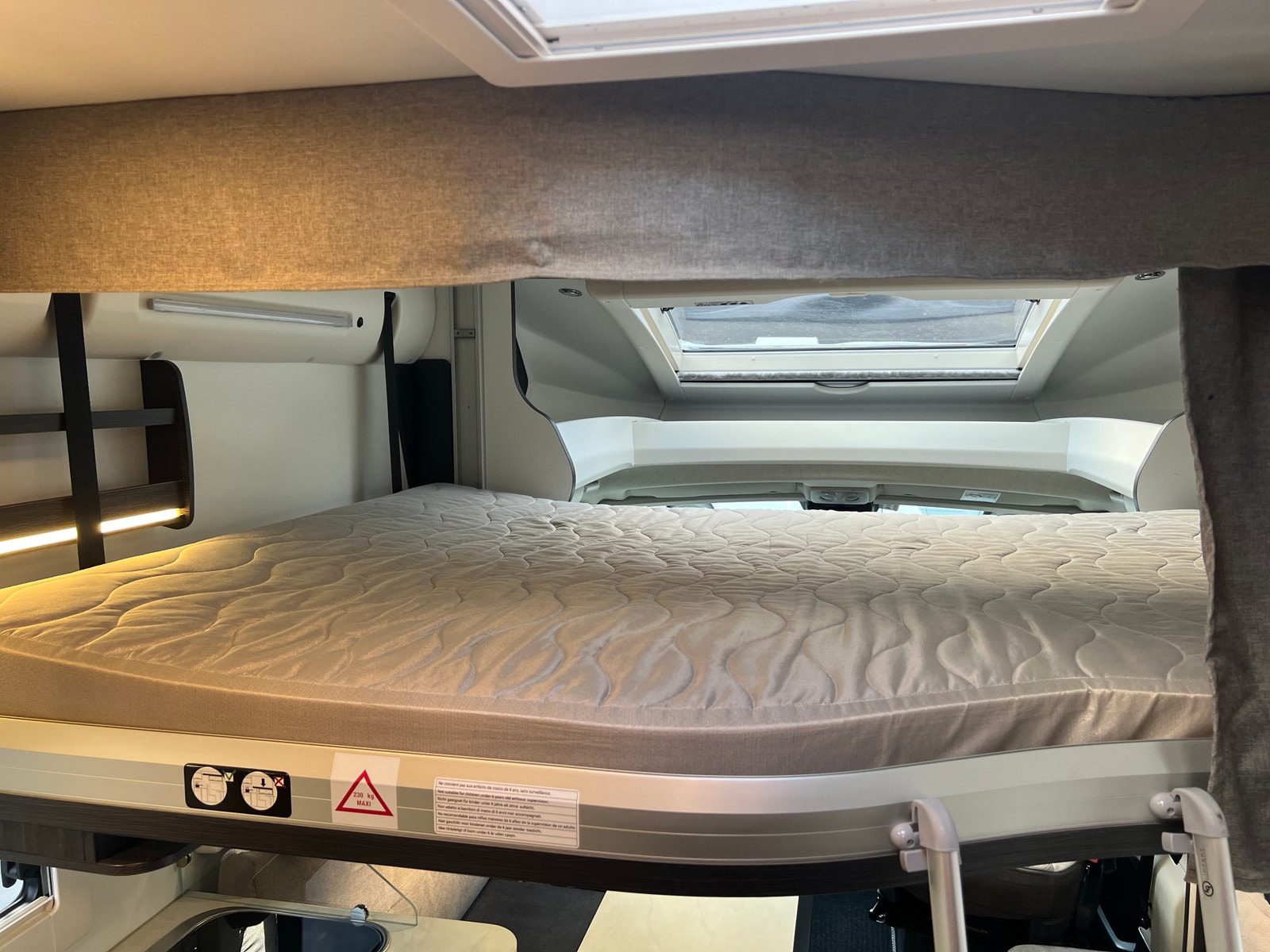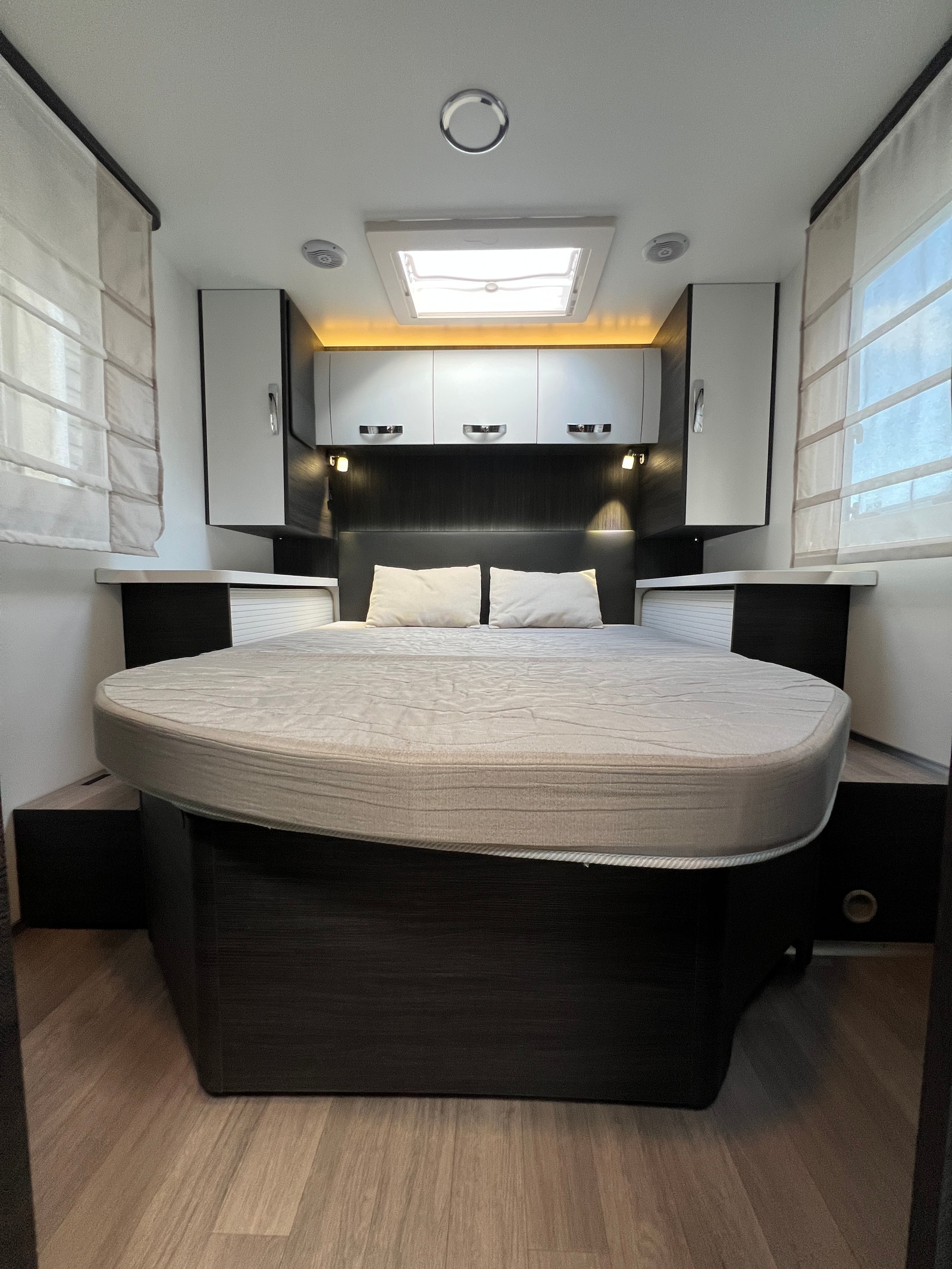 Bakerst i bilen har du en stor queenbed som kan justeres i høyden.