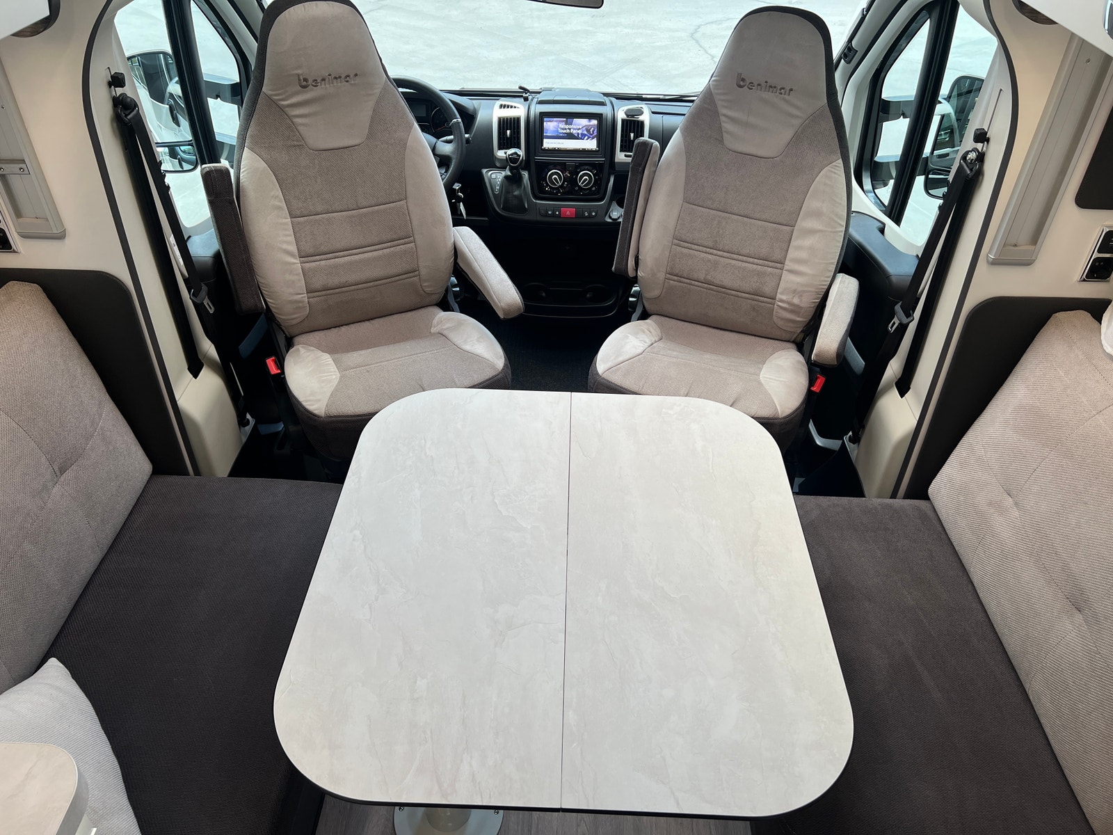 En meget populær planløsning med midstilt dobbelseng bak, den smarte face to face sittegruppe+ el.takseng fremme.