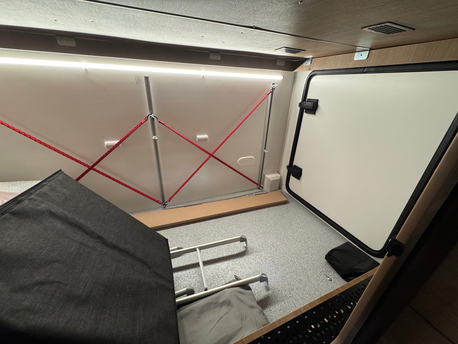 To enkle senger som lett kan gjøres om til en stor dobbelseng, (se bilde) godt med lagringsplass under og over seng + stor garasje. Plass til sykler om det skulle være et ønske.