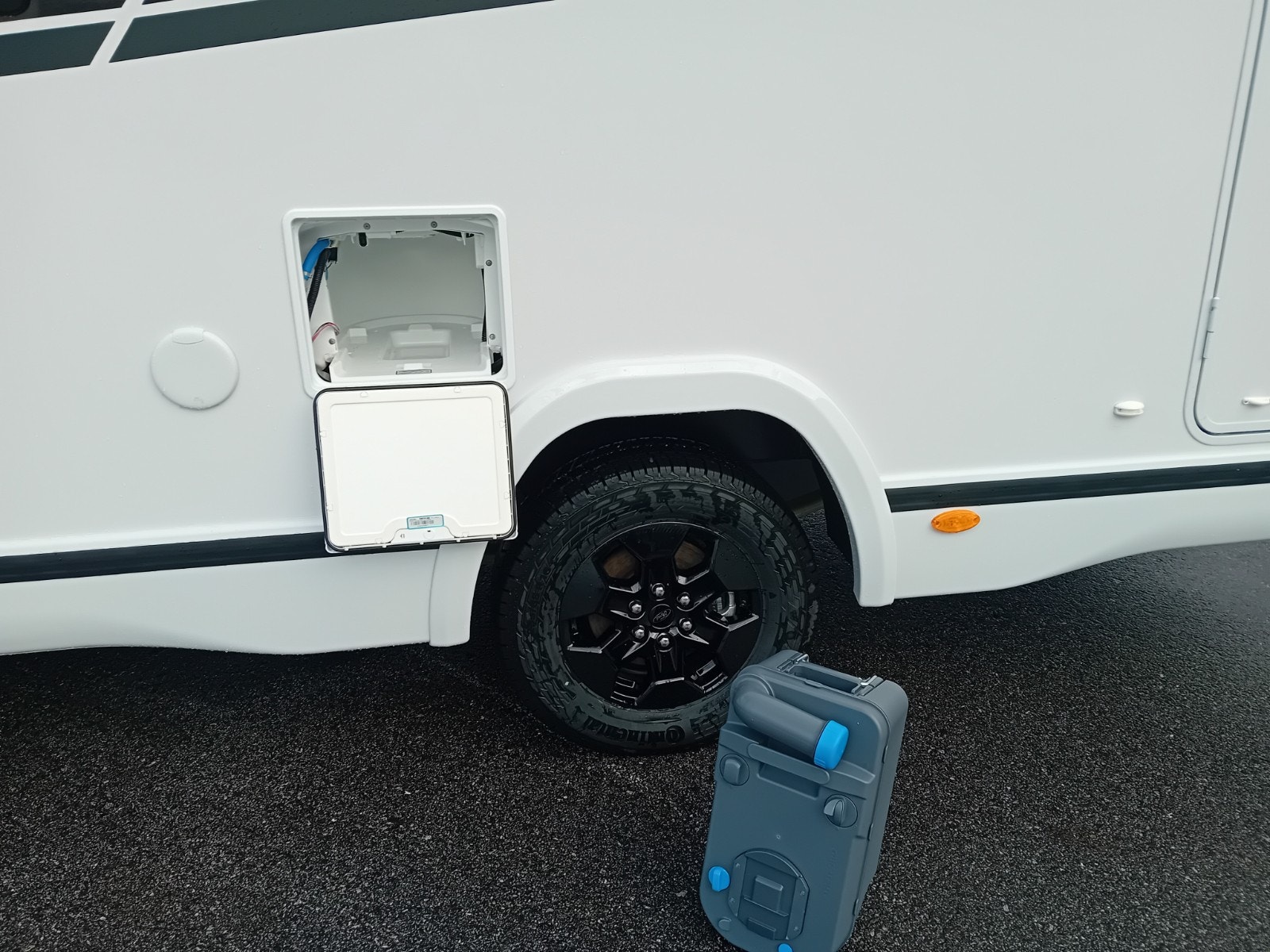 Vi tilbyr også gratis stellplatz for overnatting hos oss der du har mulighet til tømming av toalett og spillvannstank. Og i tillegg så tilbyr vi gratis 230V strøm på vårt område. Gass automat er også på plass for bytte / kjøp av gassflasker.