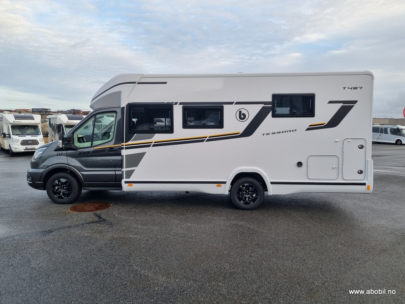 Vi har fått påfyll av den populære Benimar Tessoro 497 med lyst, lunt og tidløst interiør! Denne bobilen kommer på Ford chassis, 2,0L 165HK, 8-trinns automatgir.