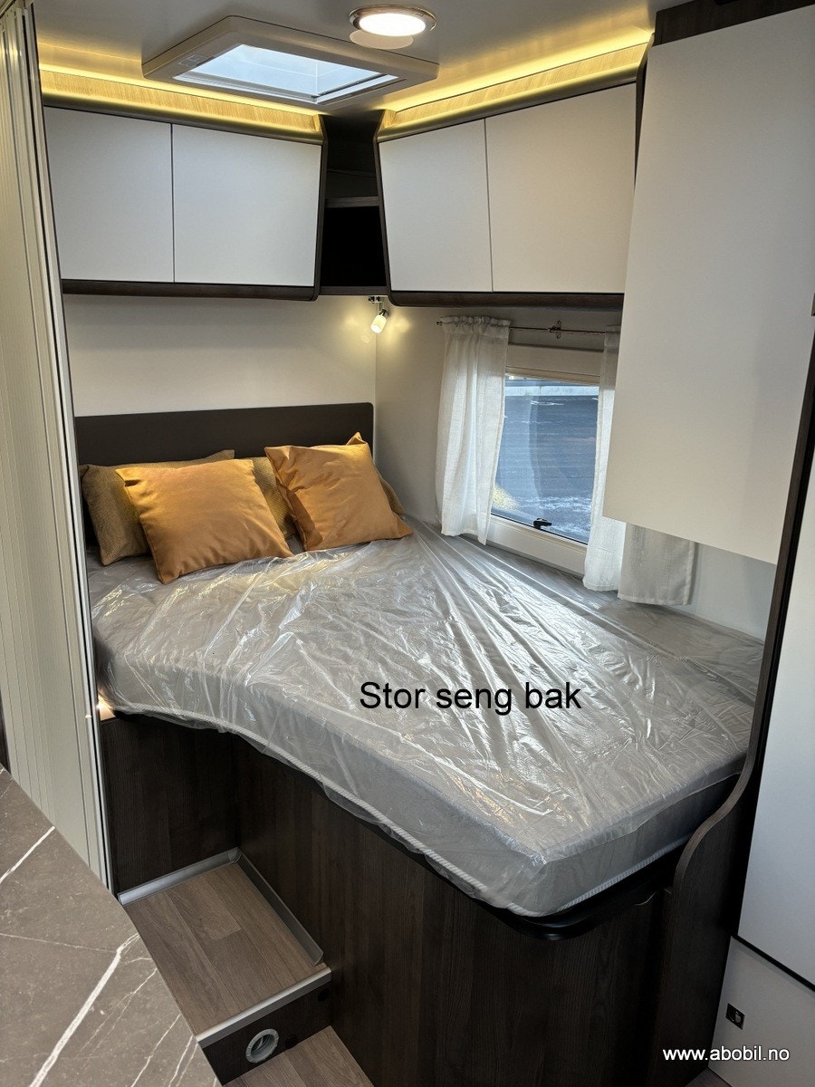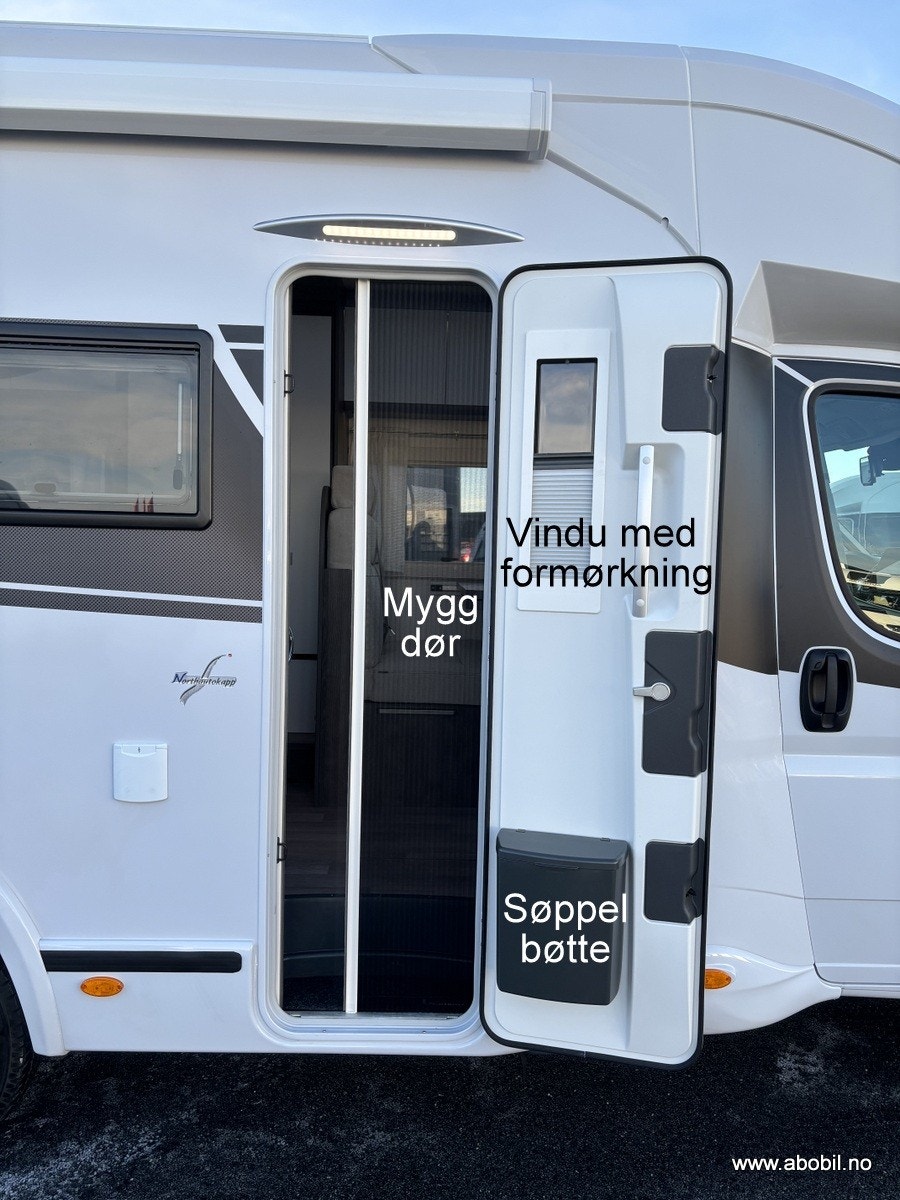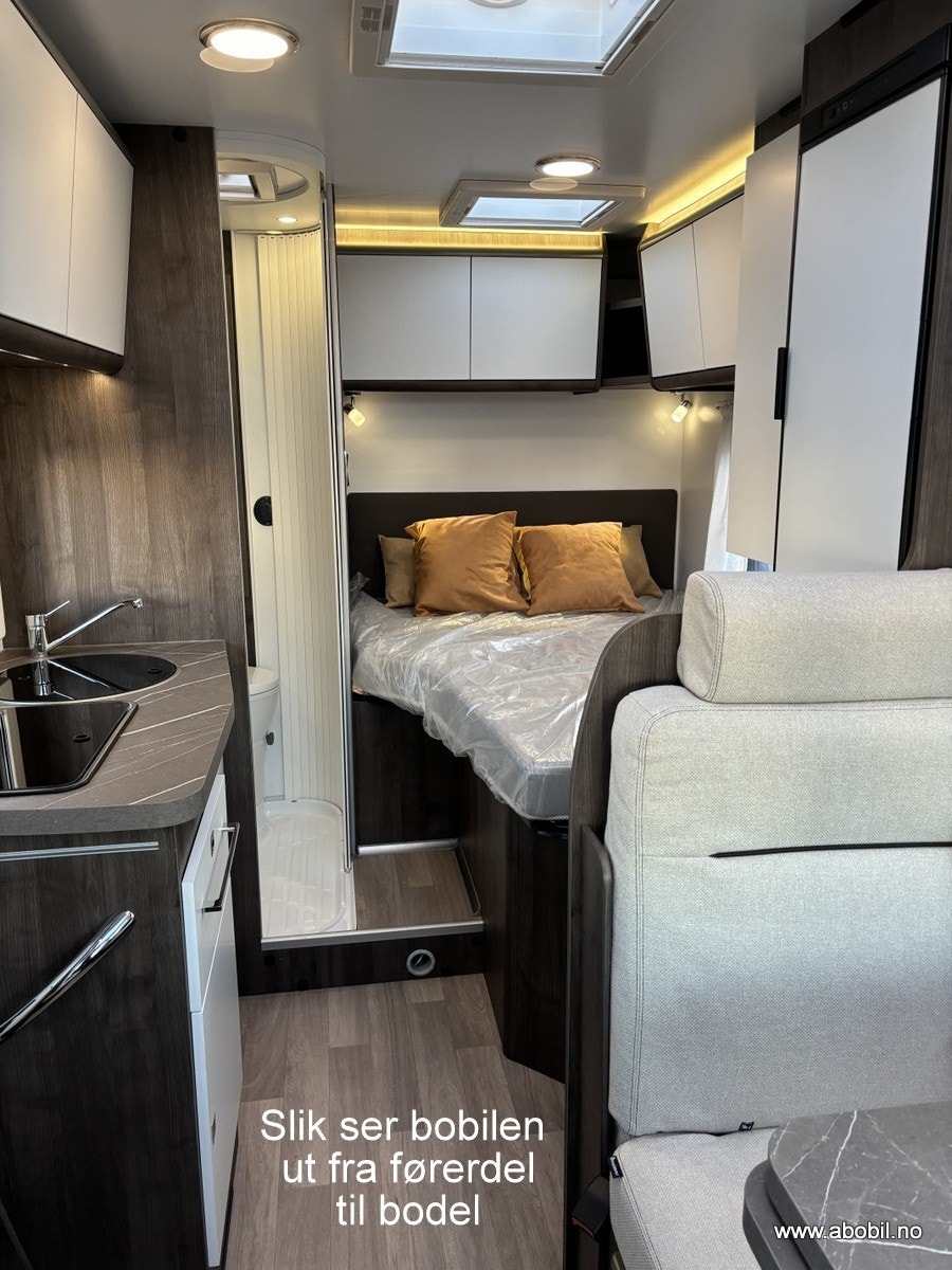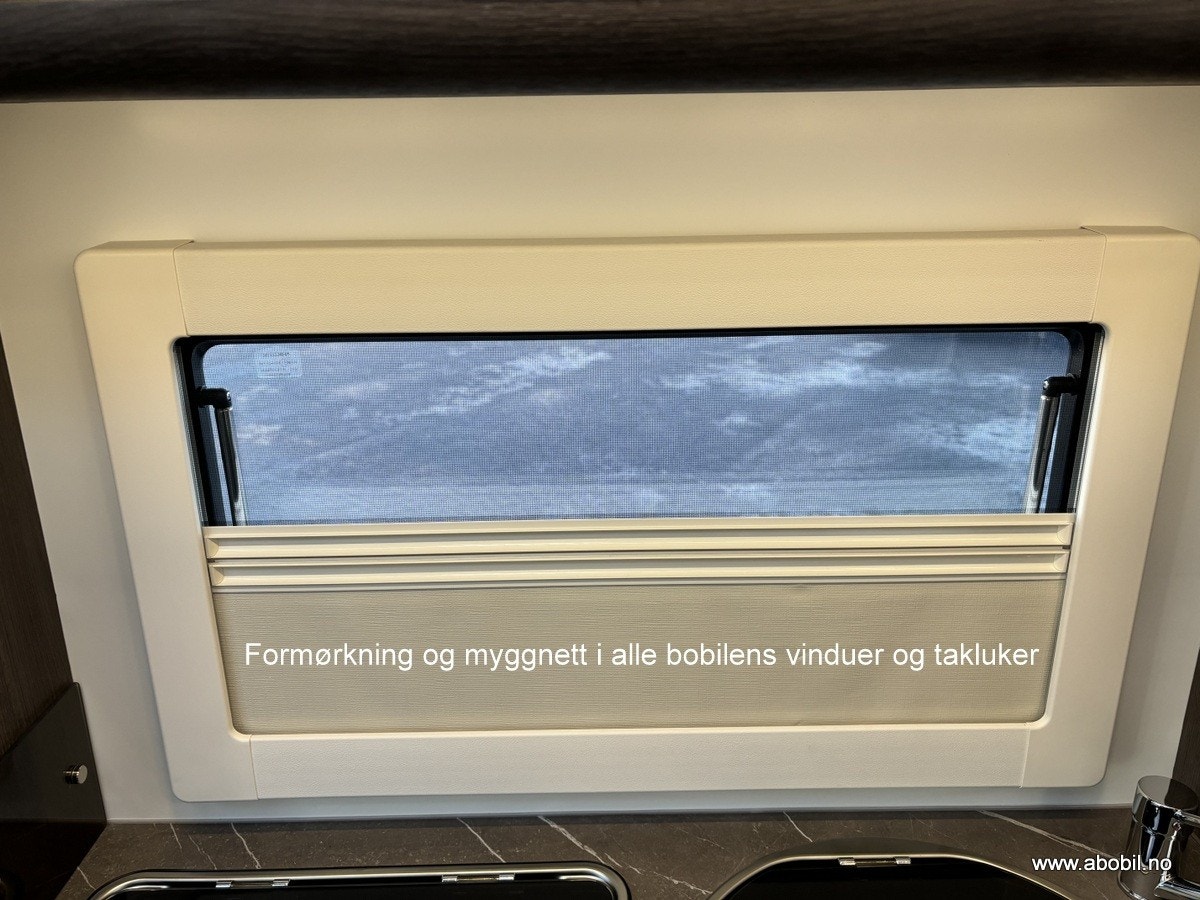Bobilen har 140 HK og 9 trinn automatisk girkasse. TREFRI KONSTRUKSJON (Råtner med andre ord ikke) I tillegg 100% forsterket polyester bildel overgang. PANORMA takluke (med myggnett og formørkning) som gir et fantastisk flott lys og romfølelse. Bodelsdøren har to låser, vindu med formørking og myggnett som dekker hele døråpningen.