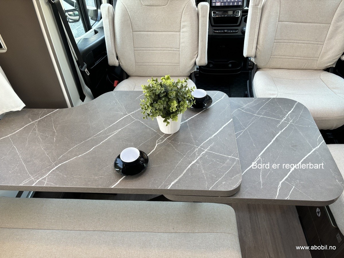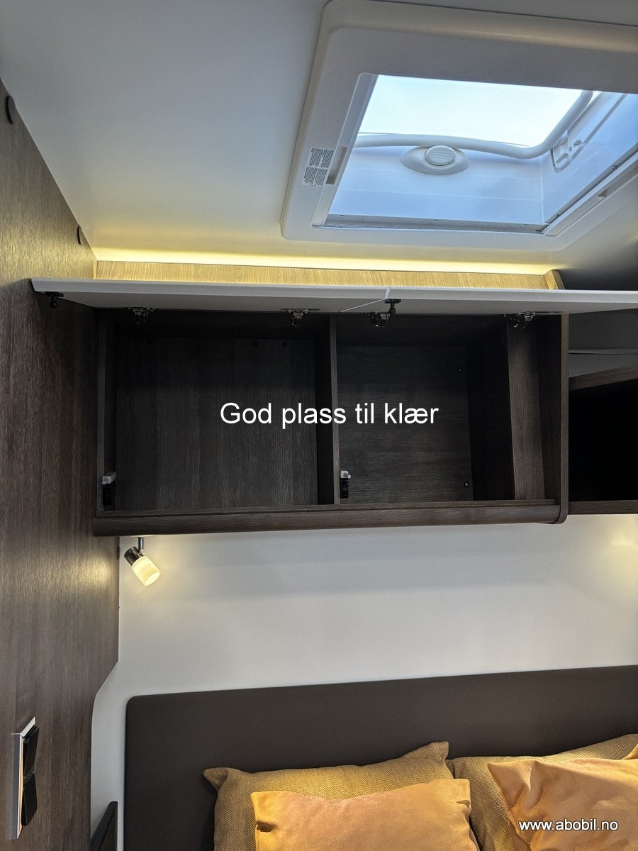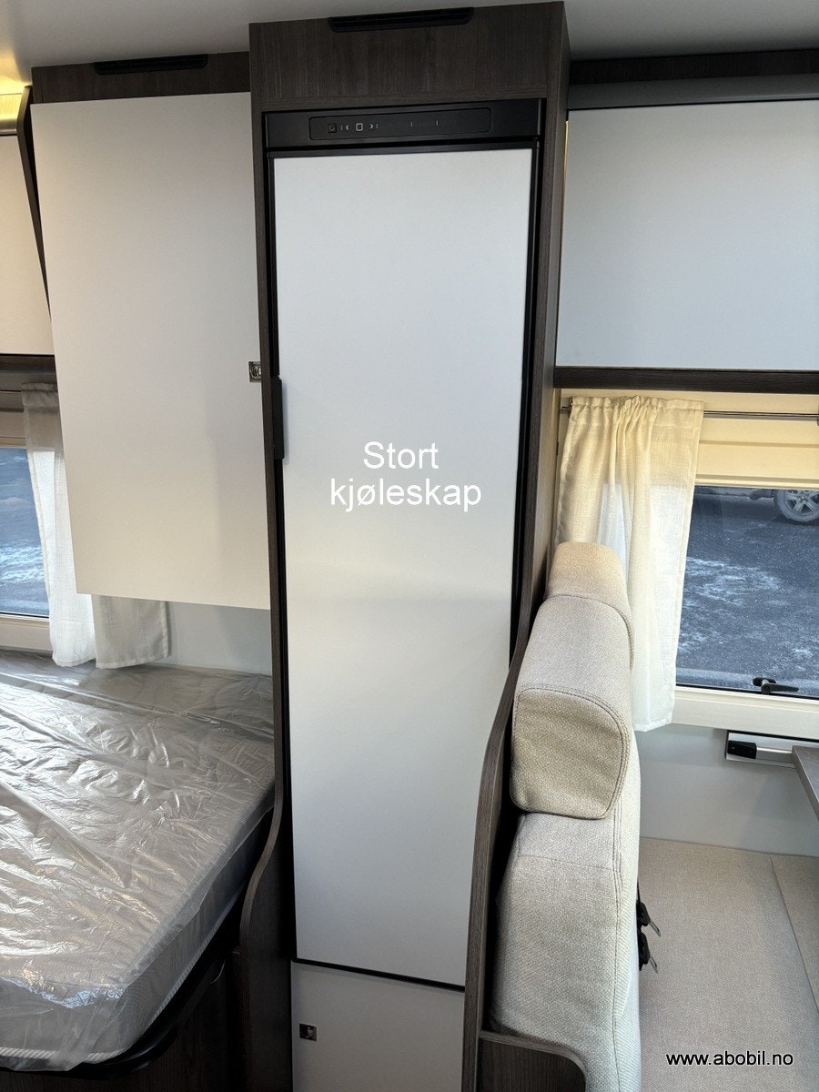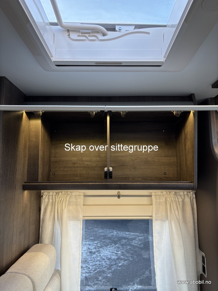 Bobilen har 140 HK og 9 trinn automatisk girkasse. TREFRI KONSTRUKSJON (Råtner med andre ord ikke) I tillegg 100% forsterket polyester bildel overgang. PANORMA takluke (med myggnett og formørkning) som gir et fantastisk flott lys og romfølelse. Bodelsdøren har to låser, vindu med formørking og myggnett som dekker hele døråpningen.