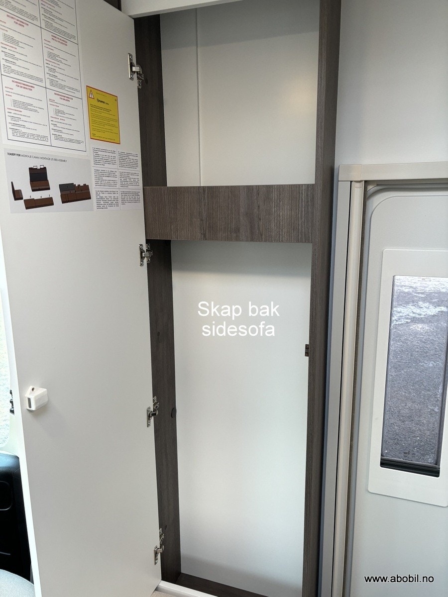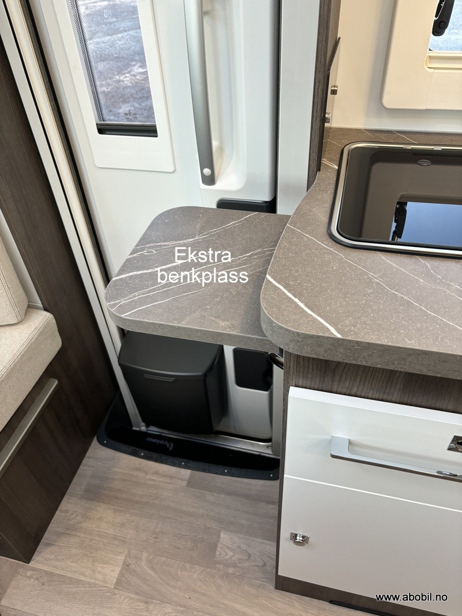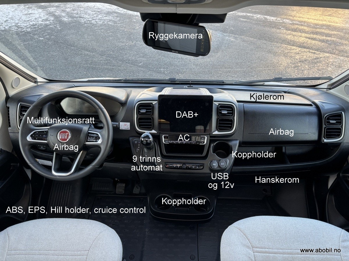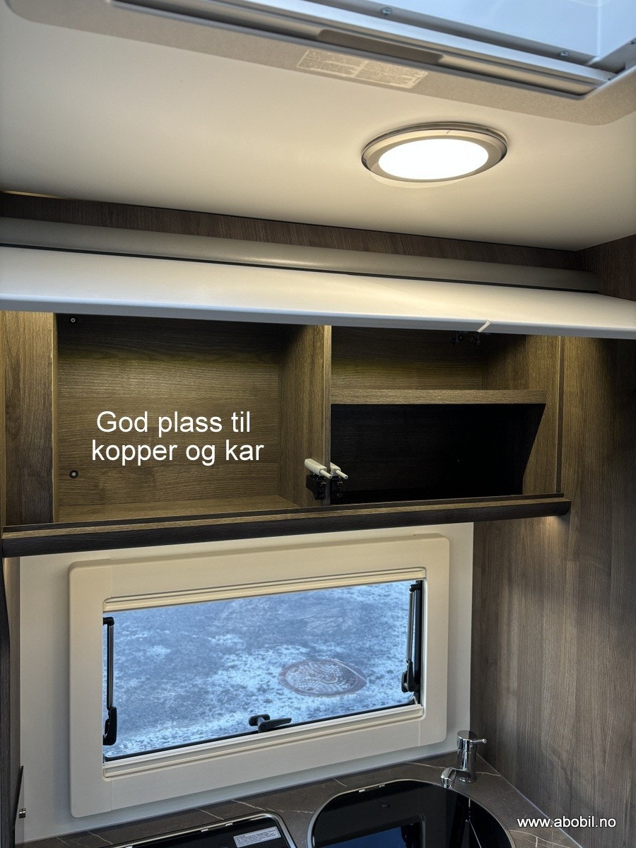 Bobilen har 140 HK og 9 trinn automatisk girkasse. TREFRI KONSTRUKSJON (Råtner med andre ord ikke) I tillegg 100% forsterket polyester bildel overgang. PANORMA takluke (med myggnett og formørkning) som gir et fantastisk flott lys og romfølelse. Bodelsdøren har to låser, vindu med formørking og myggnett som dekker hele døråpningen.