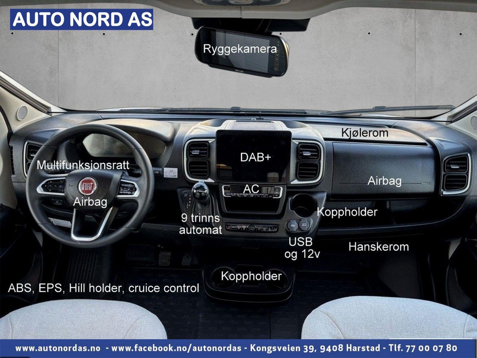 Bobilen har 140 HK og 9 trinn automatisk girkasse. TREFRI KONSTRUKSJON (Råtner med andre ord ikke) I tillegg 100% forsterket polyester overgang bildel. PANORMA takluke (med myggnett og formørkning) som gir et fantastisk flott lys og romfølelse. Bodelsdøren har to låser, vindu med formørking og myggnett som dekker hele døråpningen.