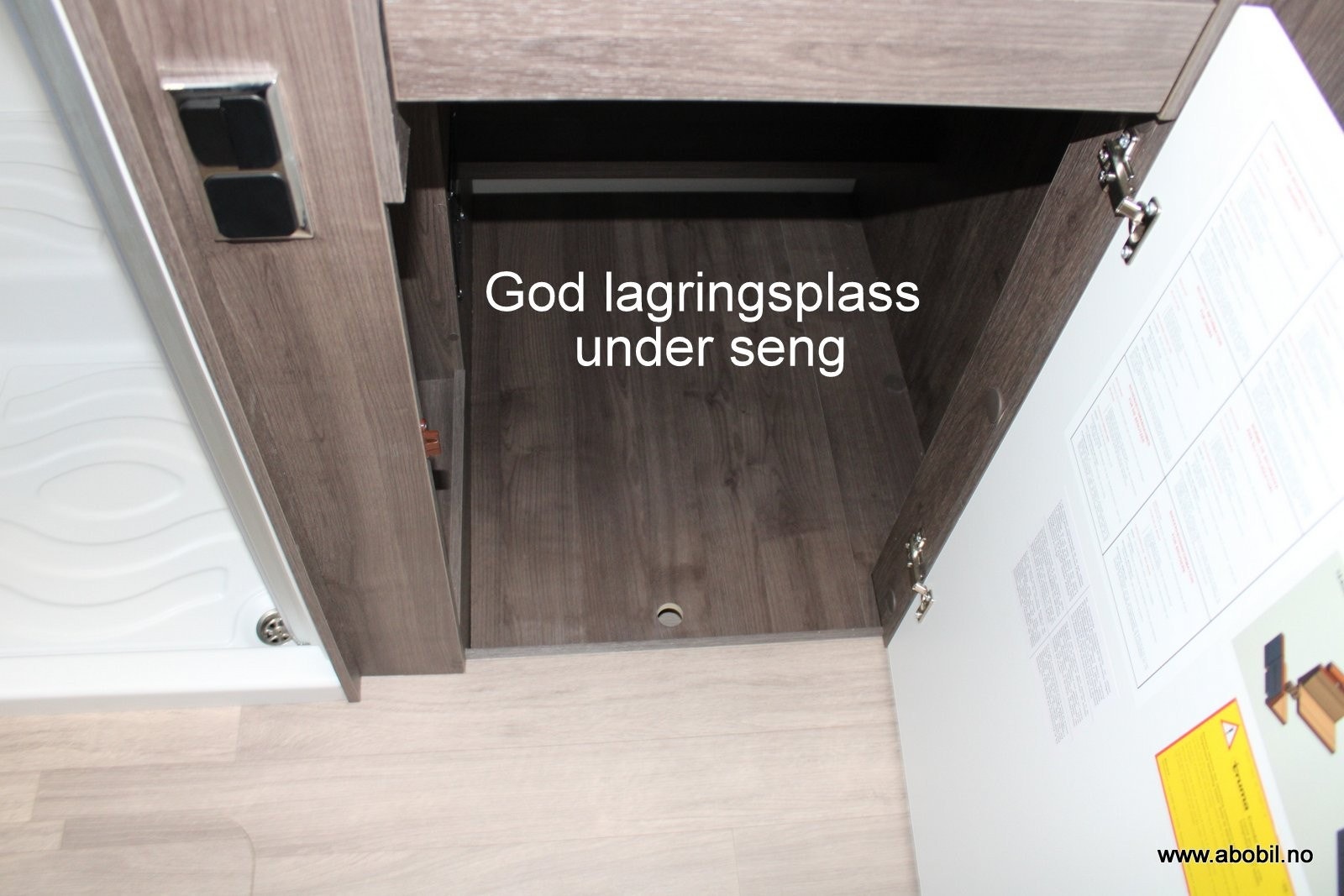 God oppbevaring over selve sengen samt leselys og garasjetilgang under sengen som gir rask og enkel tilgang til garasjen fra soverommet.