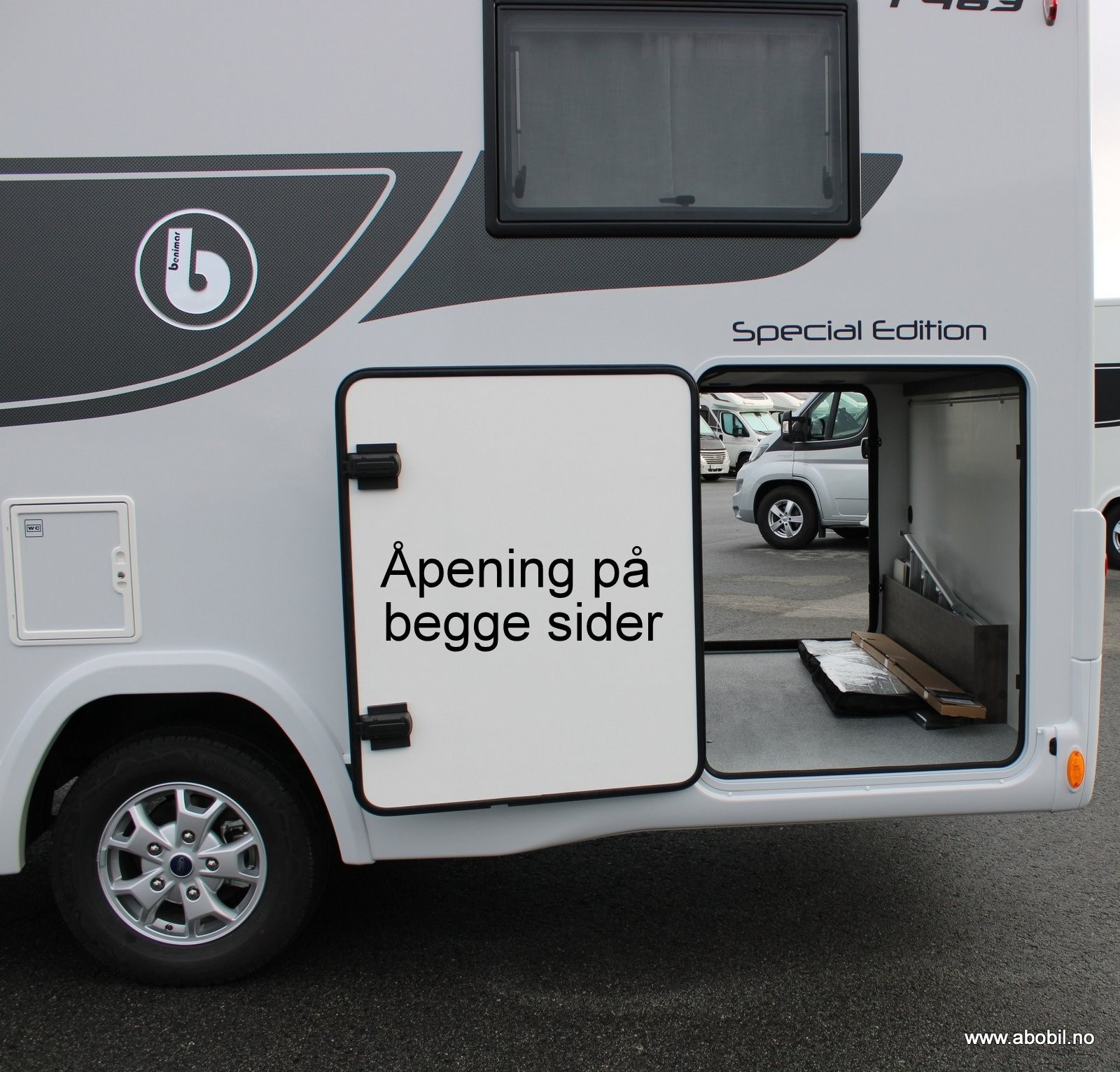 Benimar Tessoro 463 har stor garasje med tilgang på begge sider via store luker.