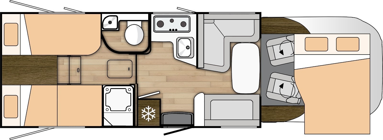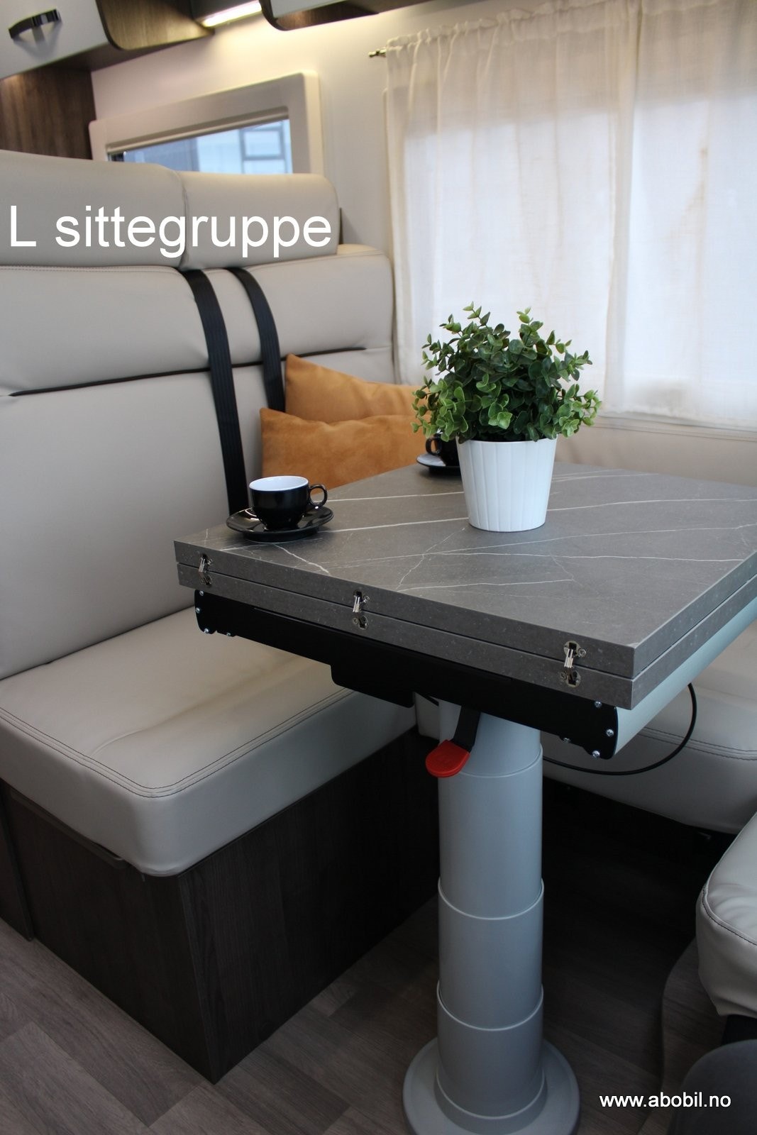 Senkesengen har plass til 2 voksne personer og tåler hele 230 kg. Senkesengen er selvsagt elektrisk og er klar for bruk etter 10 sekunder. Salongen består av 2 komfortable pilotstoler, en sidesofa og en hjørnesofa. Dette gir masse plass for hele familien!