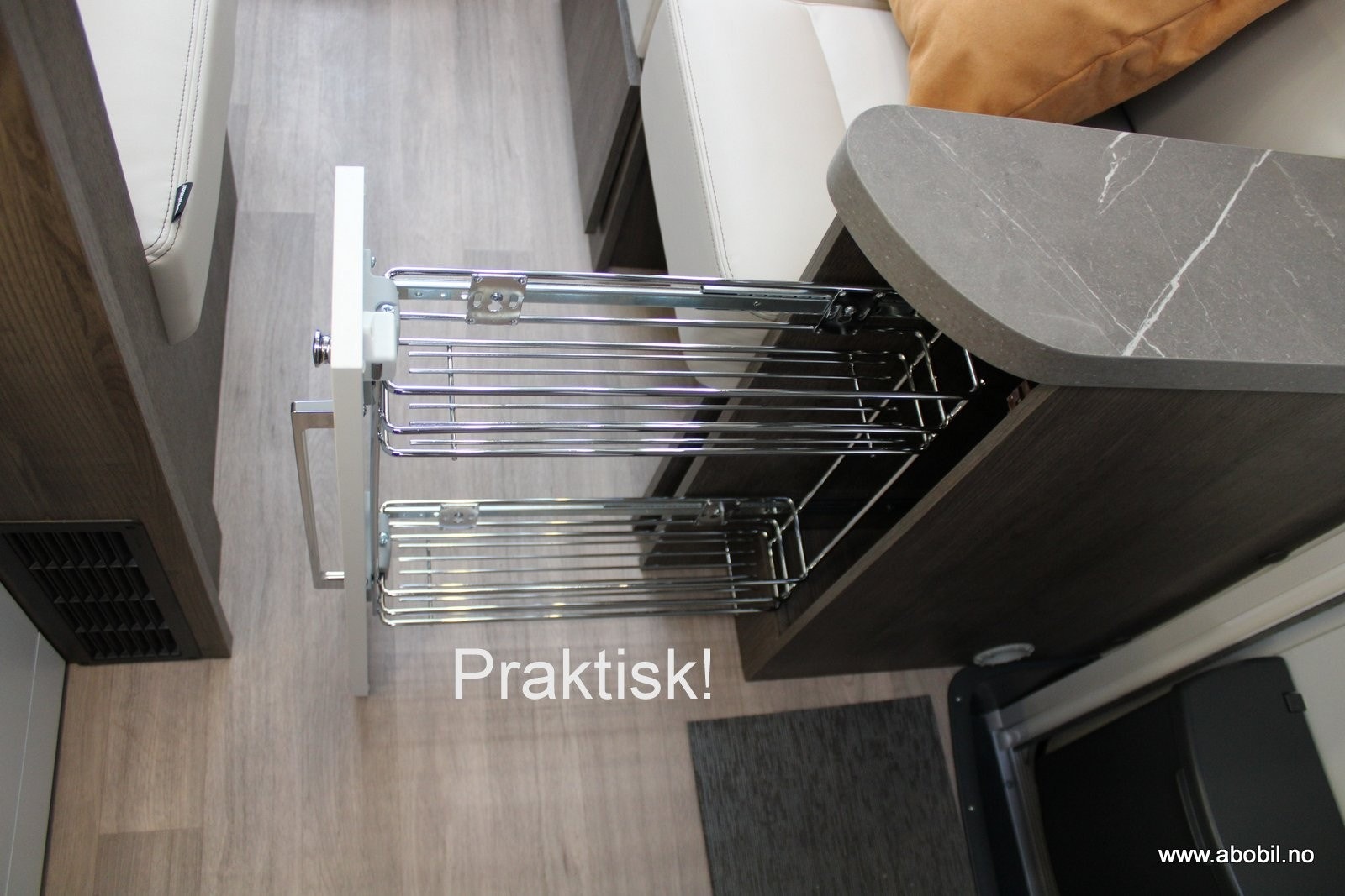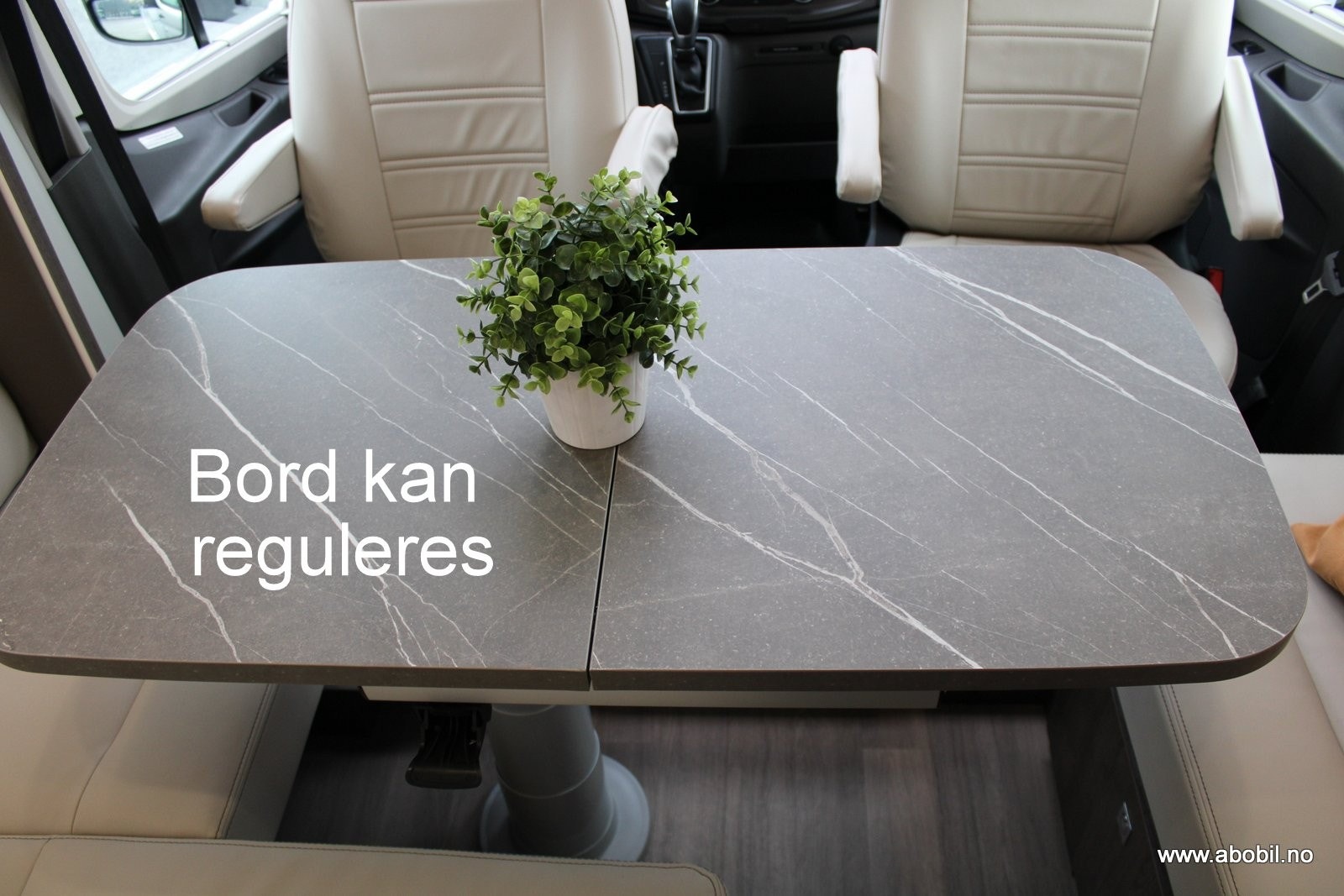 Førerdelen har også Ryggekamera, multifunksjonsratt i skinn, formørkning i alle vinduer, Regulerbare pilotstoler med armlene, cruisekontroll, varme i speil, varme i frontrute og det er også 4 veis regulerbart ratt. Denne bobilen oppleves nærmest som en flott personbil.