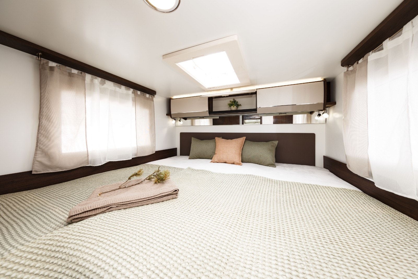 Det er store vinduer på hver side av sengen og takluke som alle kan åpnes for god utlufting.